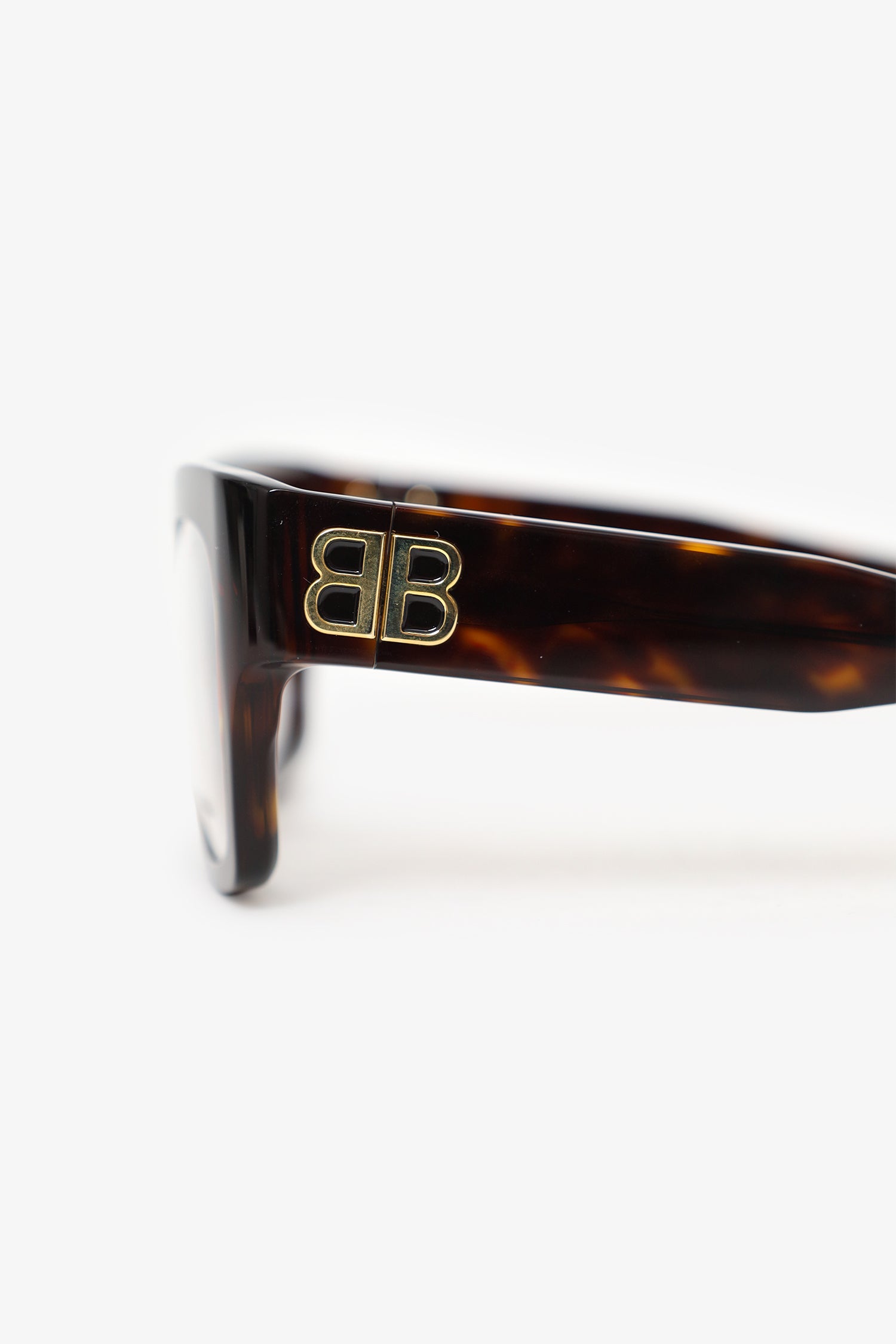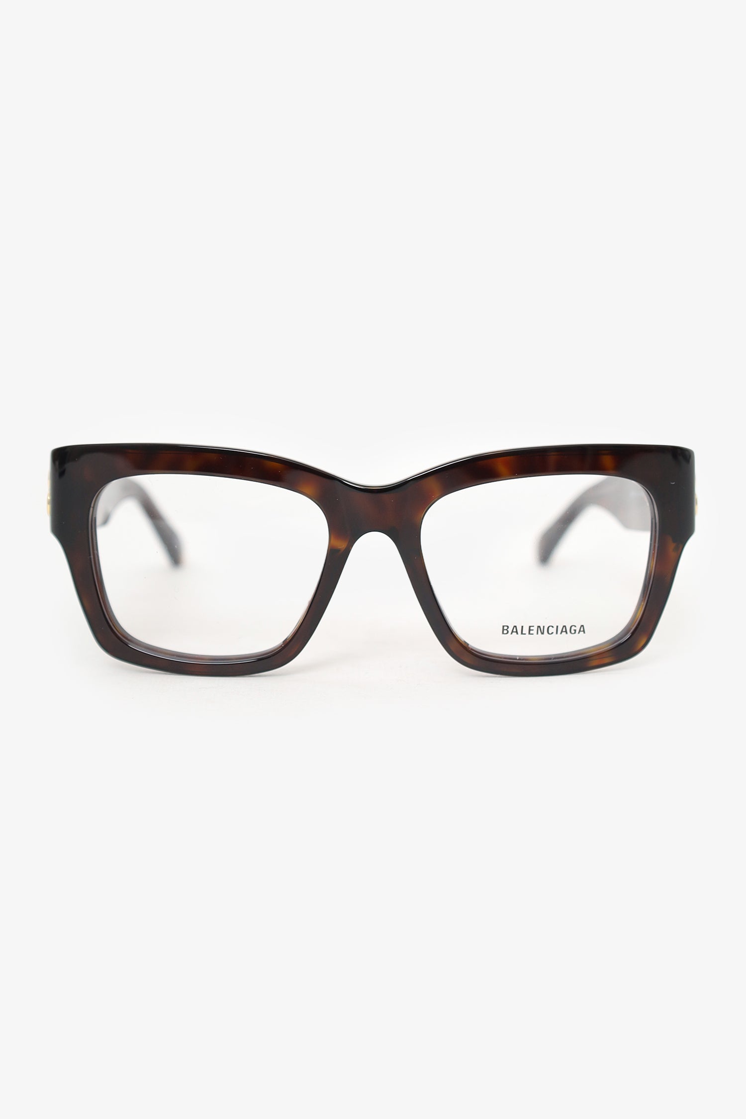 Refresh availabilityBalenciaga Dark Brown Tortoiseshell Non Prescription Eyeglasses. Built-in nose pads. Gold-tone hardware.
