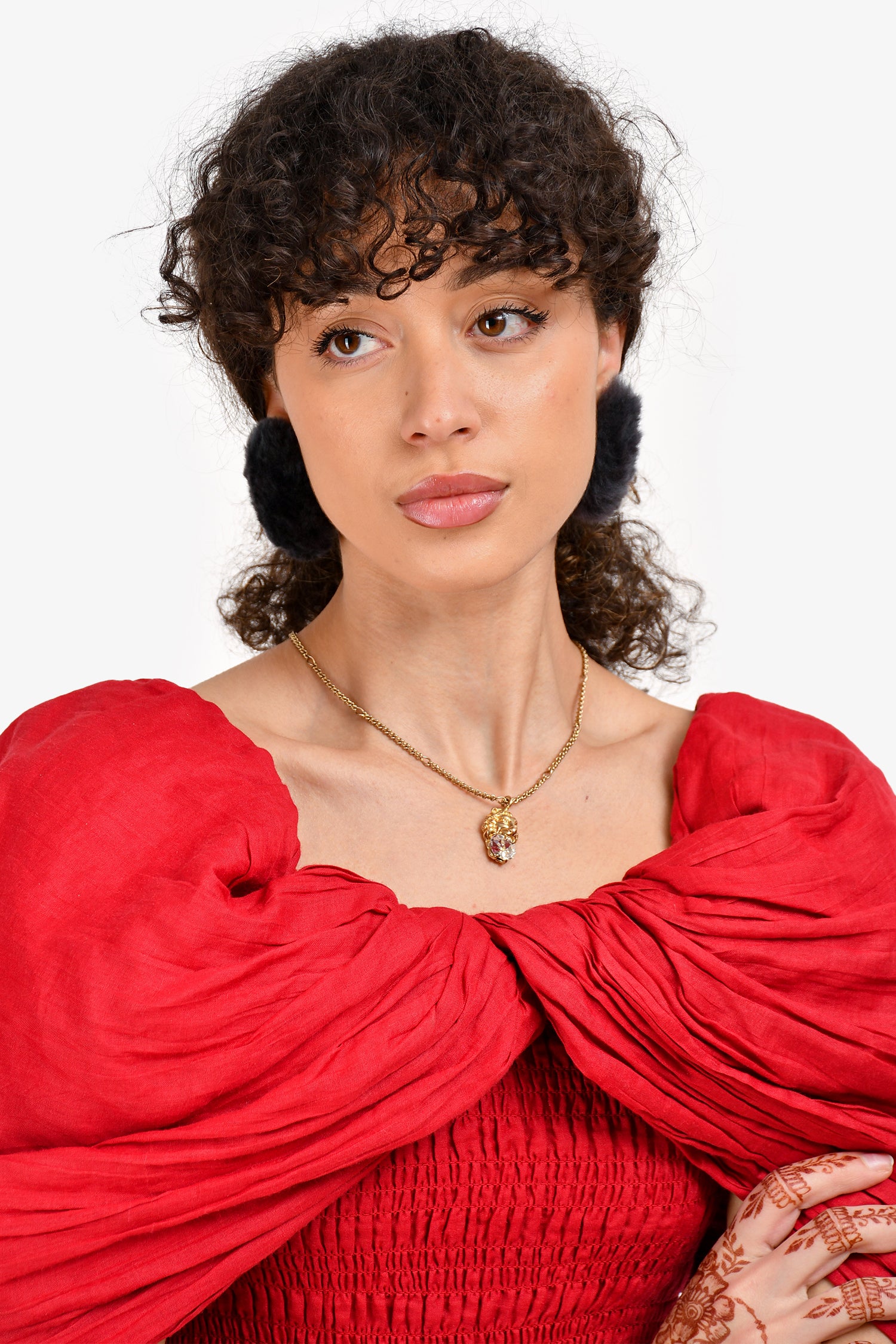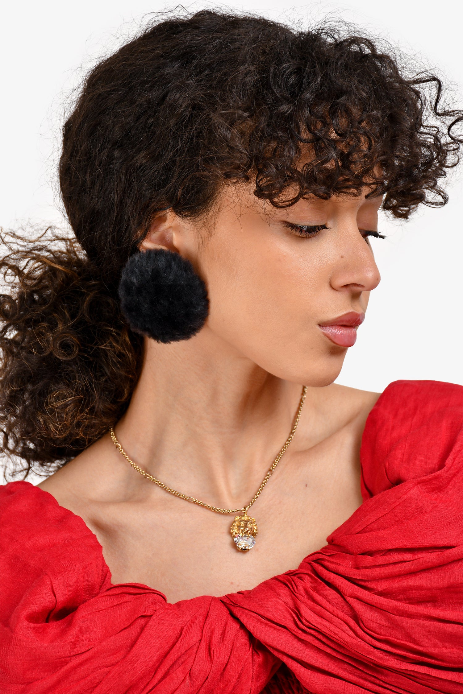 Refresh availabilityBalenciaga Grey Faux Fur Oversized Round Stud Earrings. Clip-on backings. Gold-tone hardware.