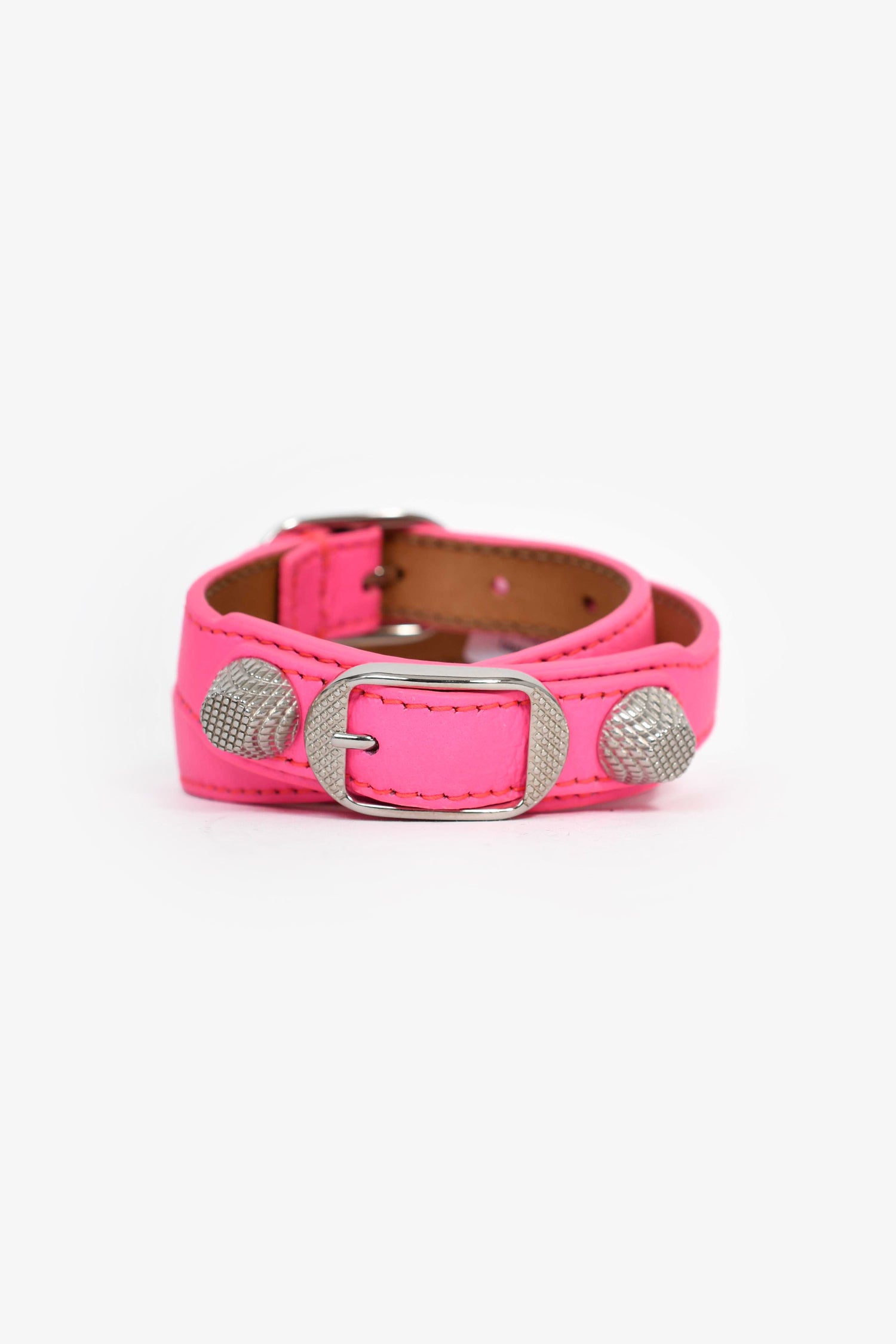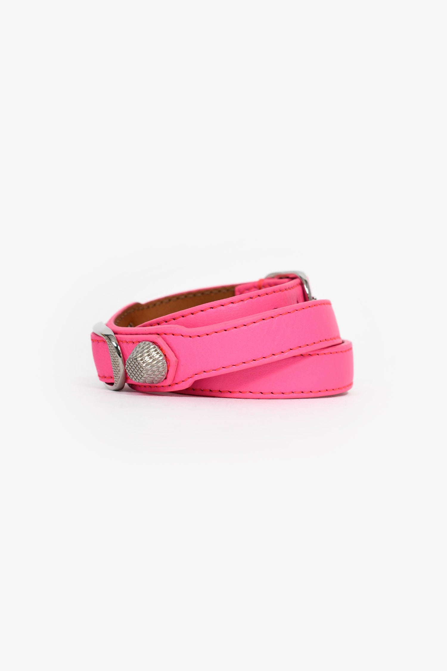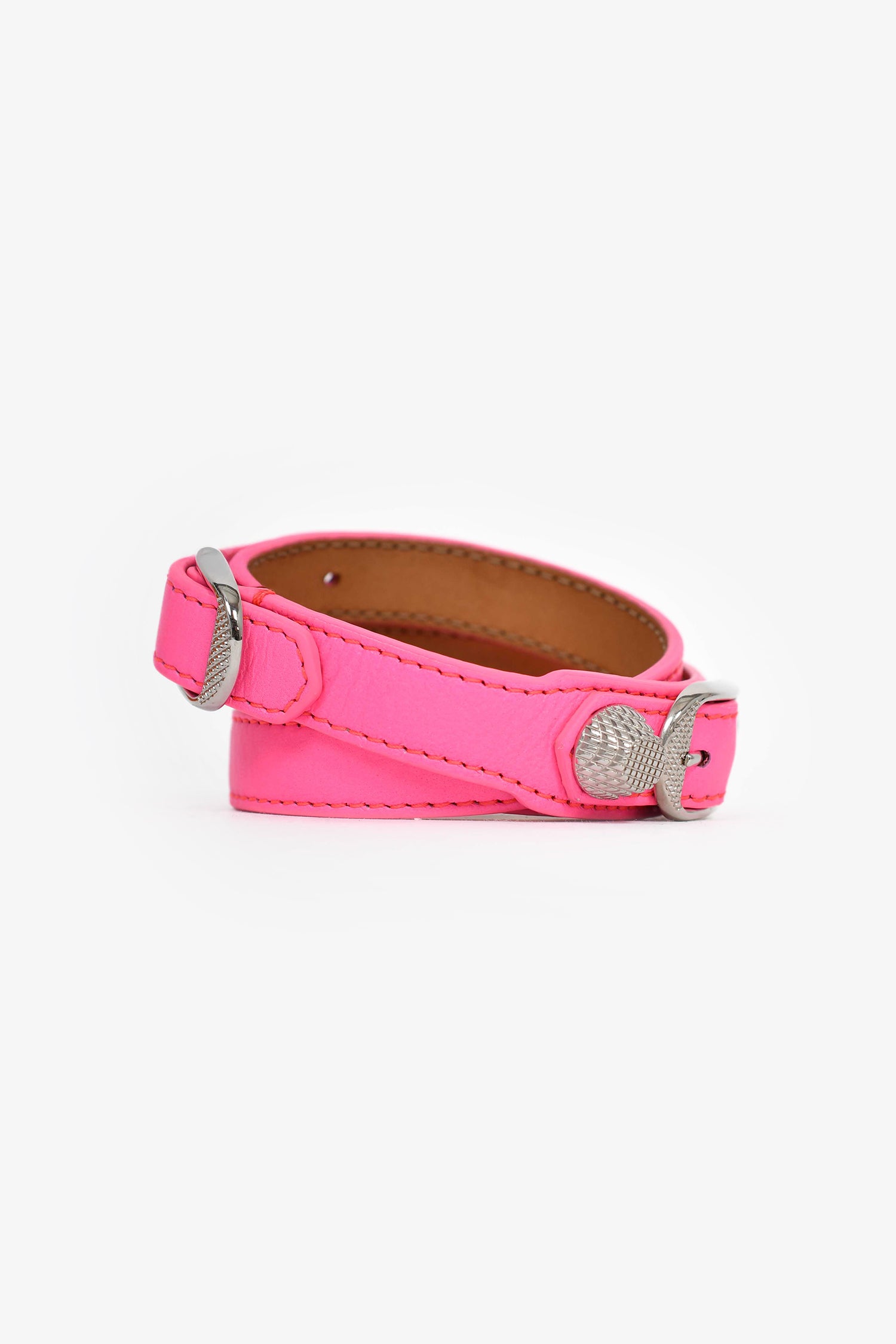 Refresh availabilityBalenciaga Neon Pink Leather Grommet Wrap Bracelet. Buckle closure. Silver-tone hardware.