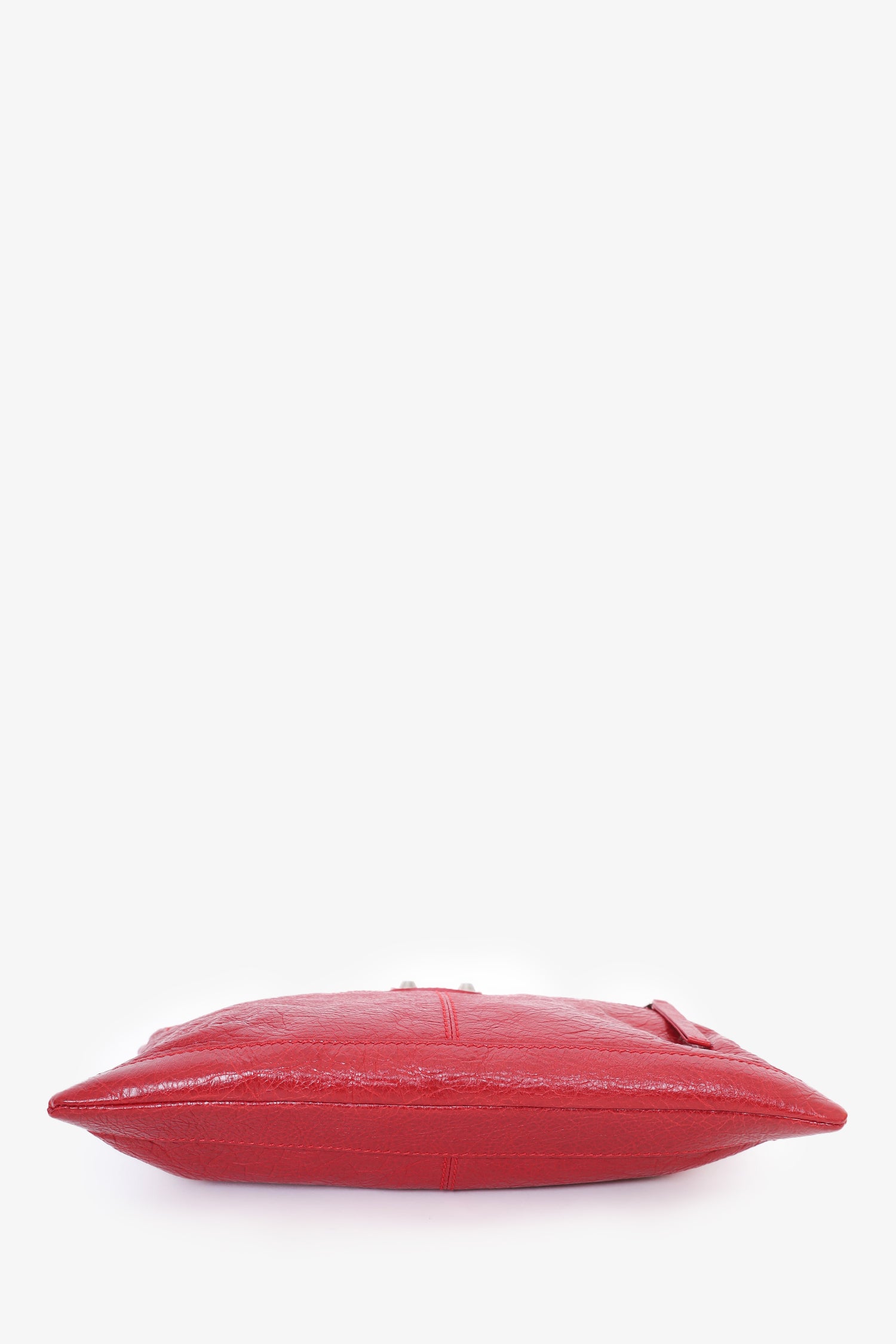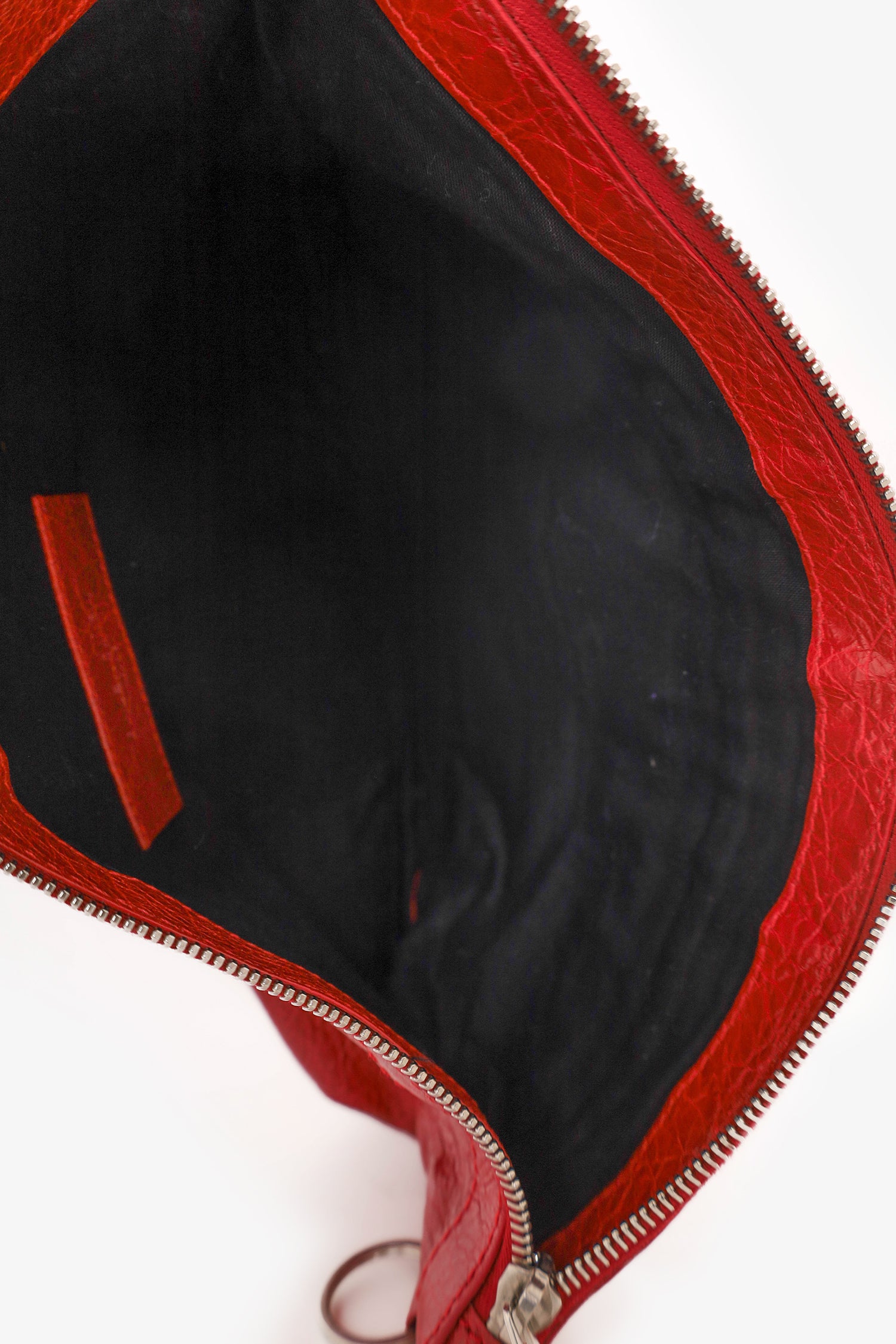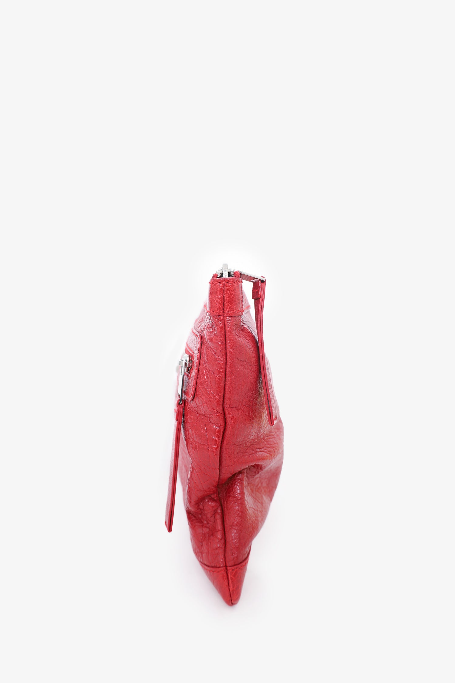 Balenciaga Red Leather Motocross Clip Zip Clutch
