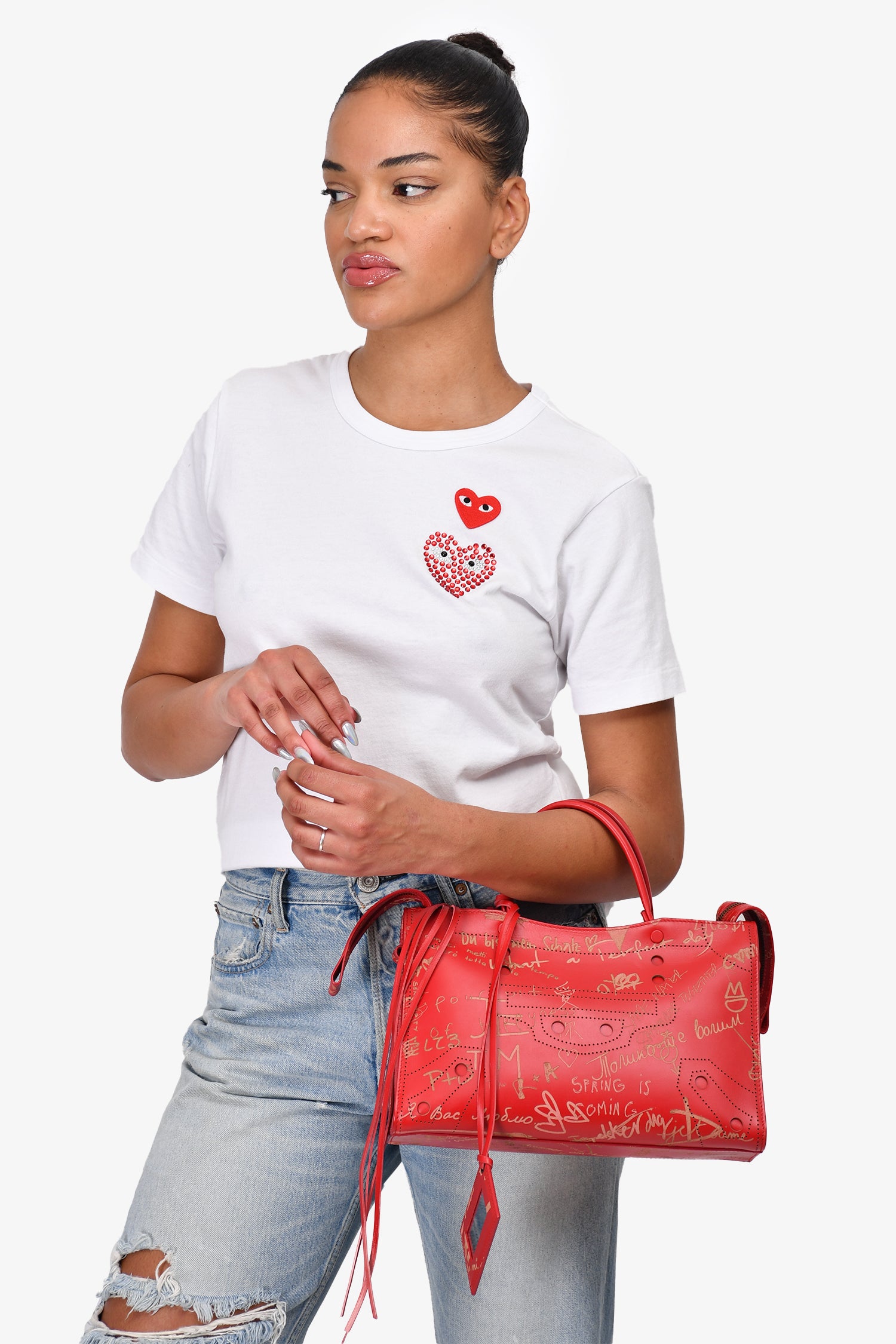 Balenciaga Red Leather Valentine's Day Blackout City Bag With Strap