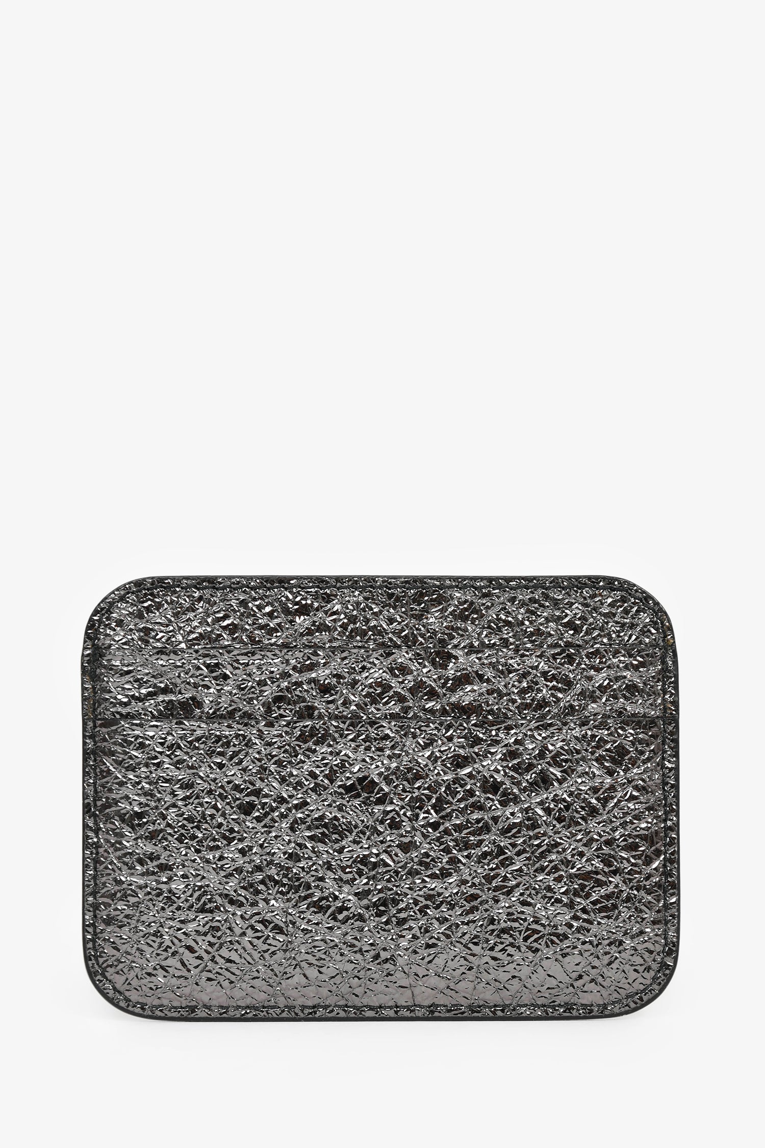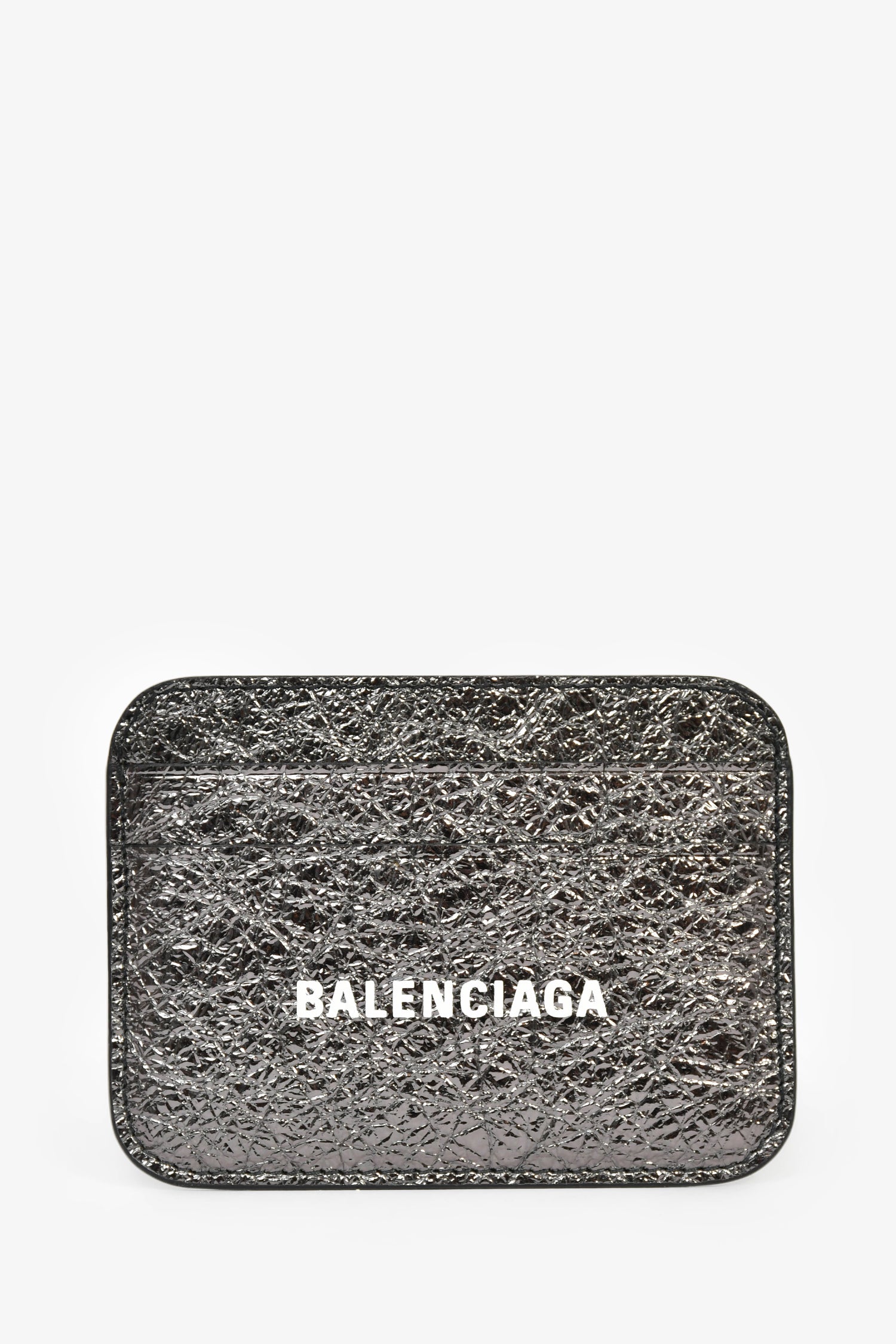 Refresh availabilityBalenciaga Silver Metallic Patent Card Holder. 5 card slots. Tonal stitching.