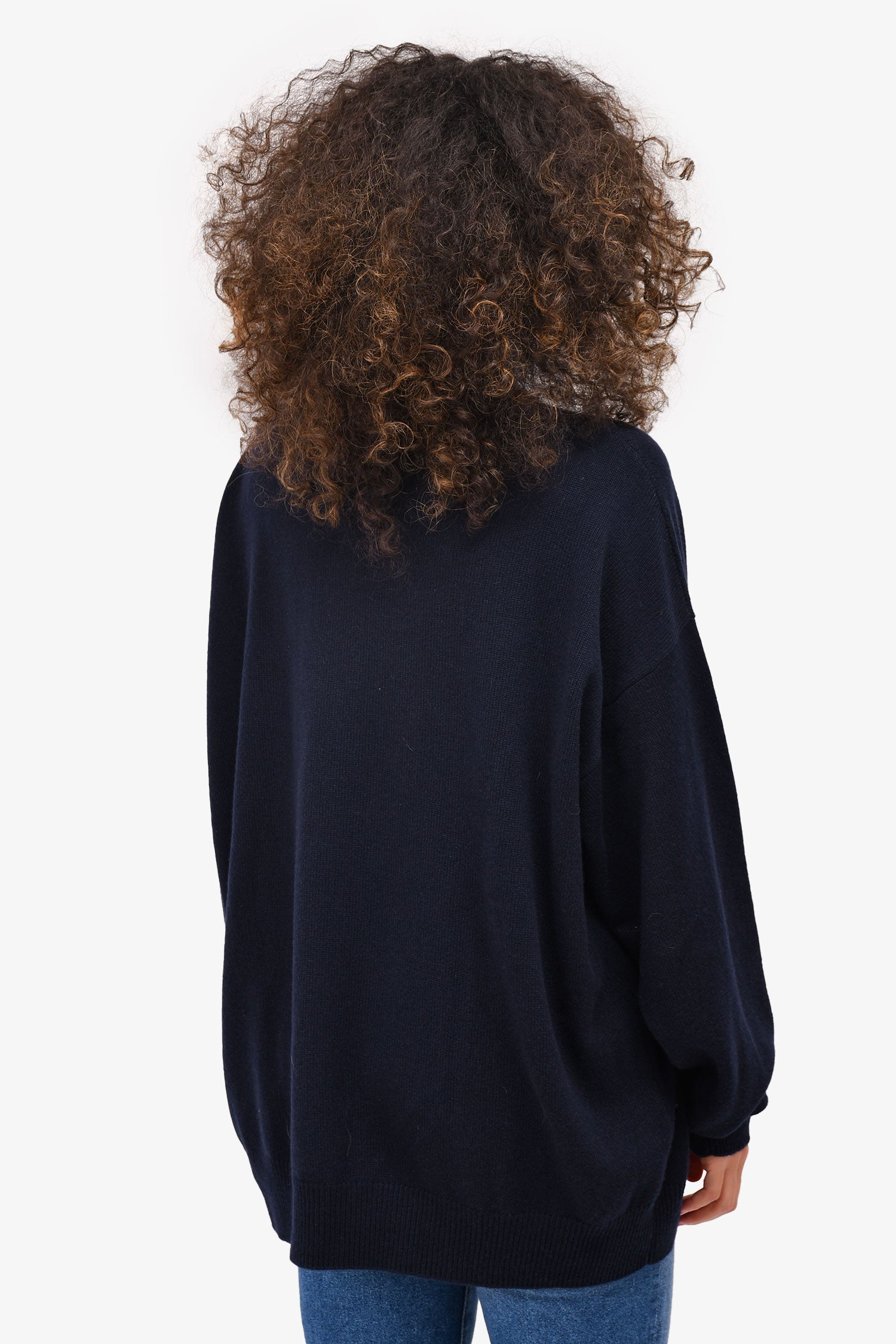Balenciaga Unisex Wardrobe Navy Cashmere Logo Oversized Sweater Size M
