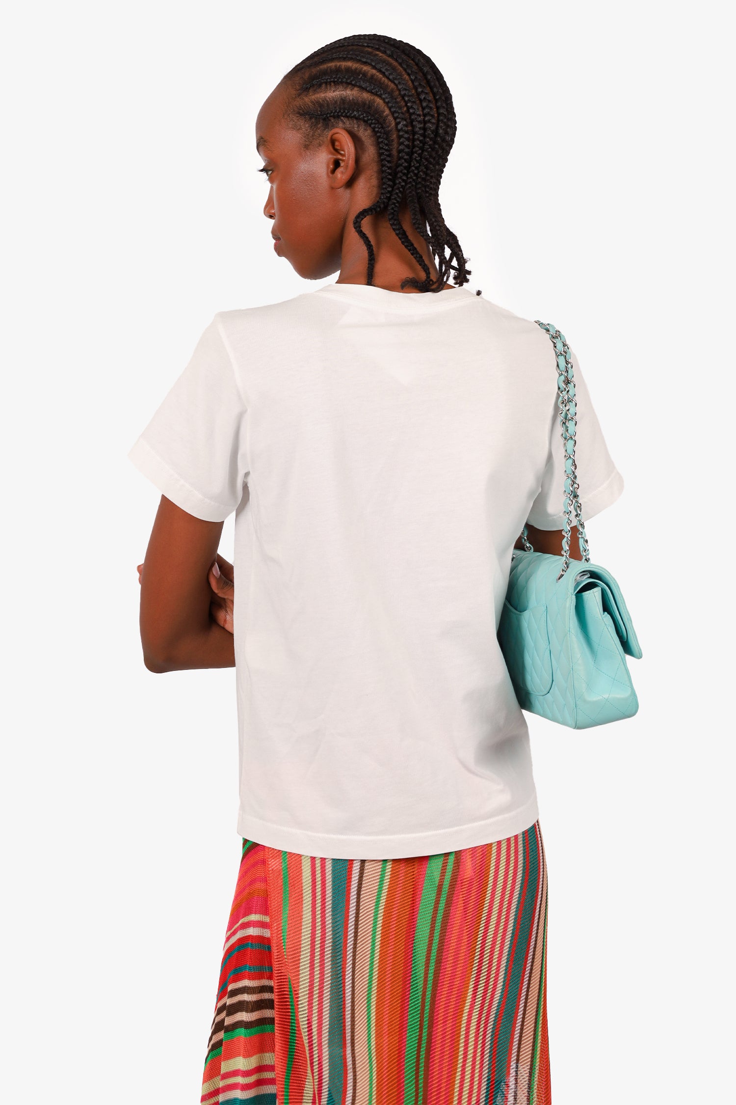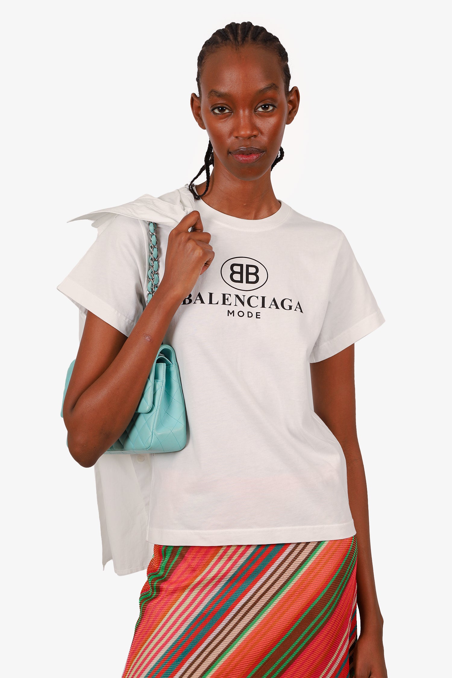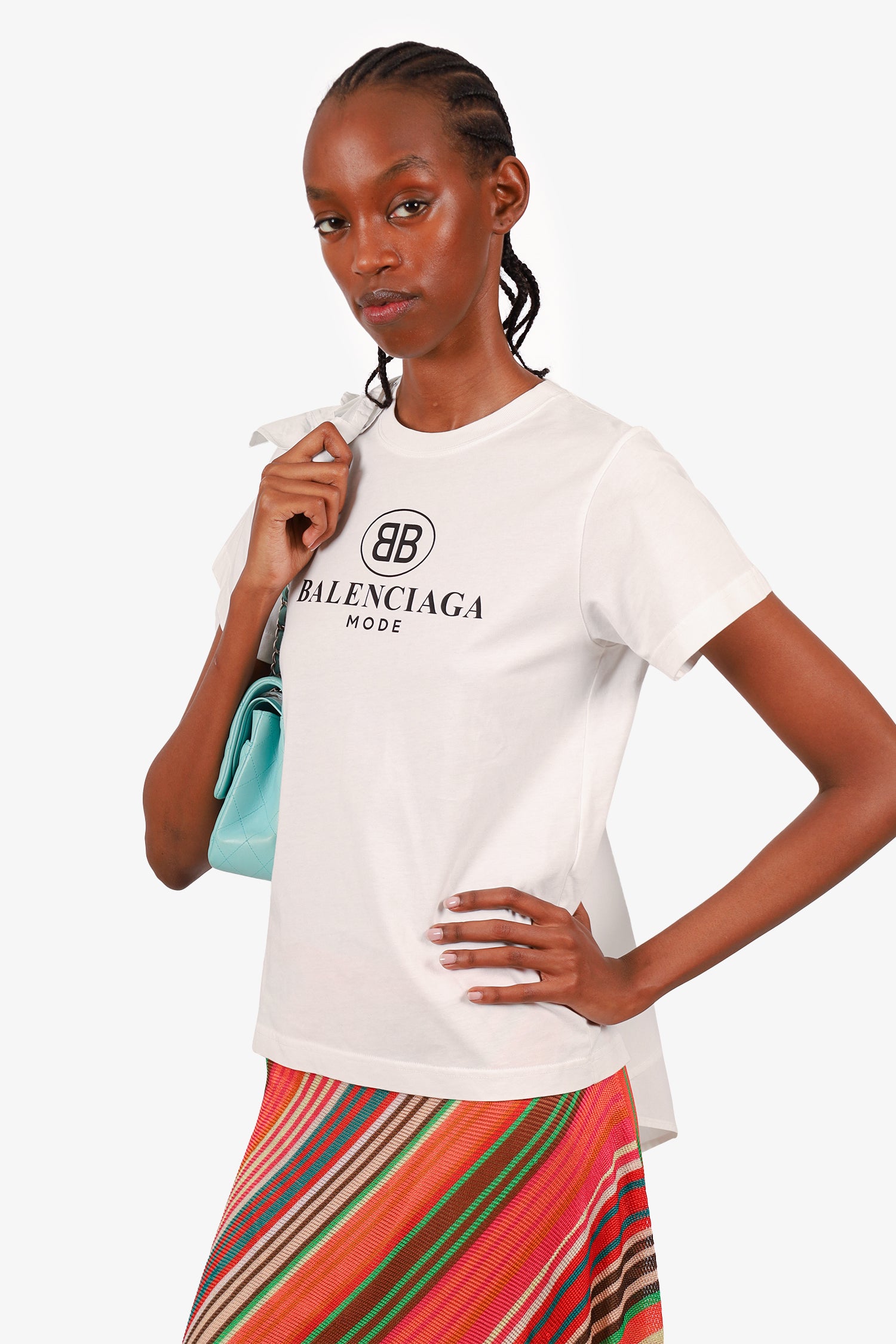 Refresh availabilityBalenciaga White/Black Logo T-Shirt. Round neckline. Pull-on. Short-sleeve. Tonal stitching.