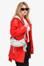Condition: This item is in fair pre-loved condition with wear throughout the front, strap, and pull tabs. Tarnish marks on the hardware. Glue marks are present. Wear to the corners.