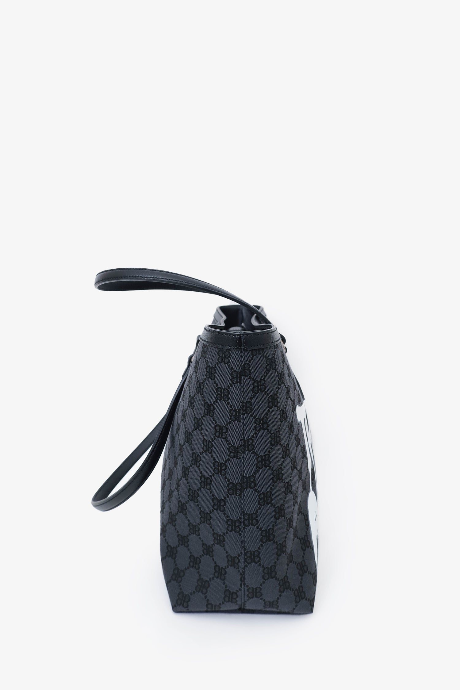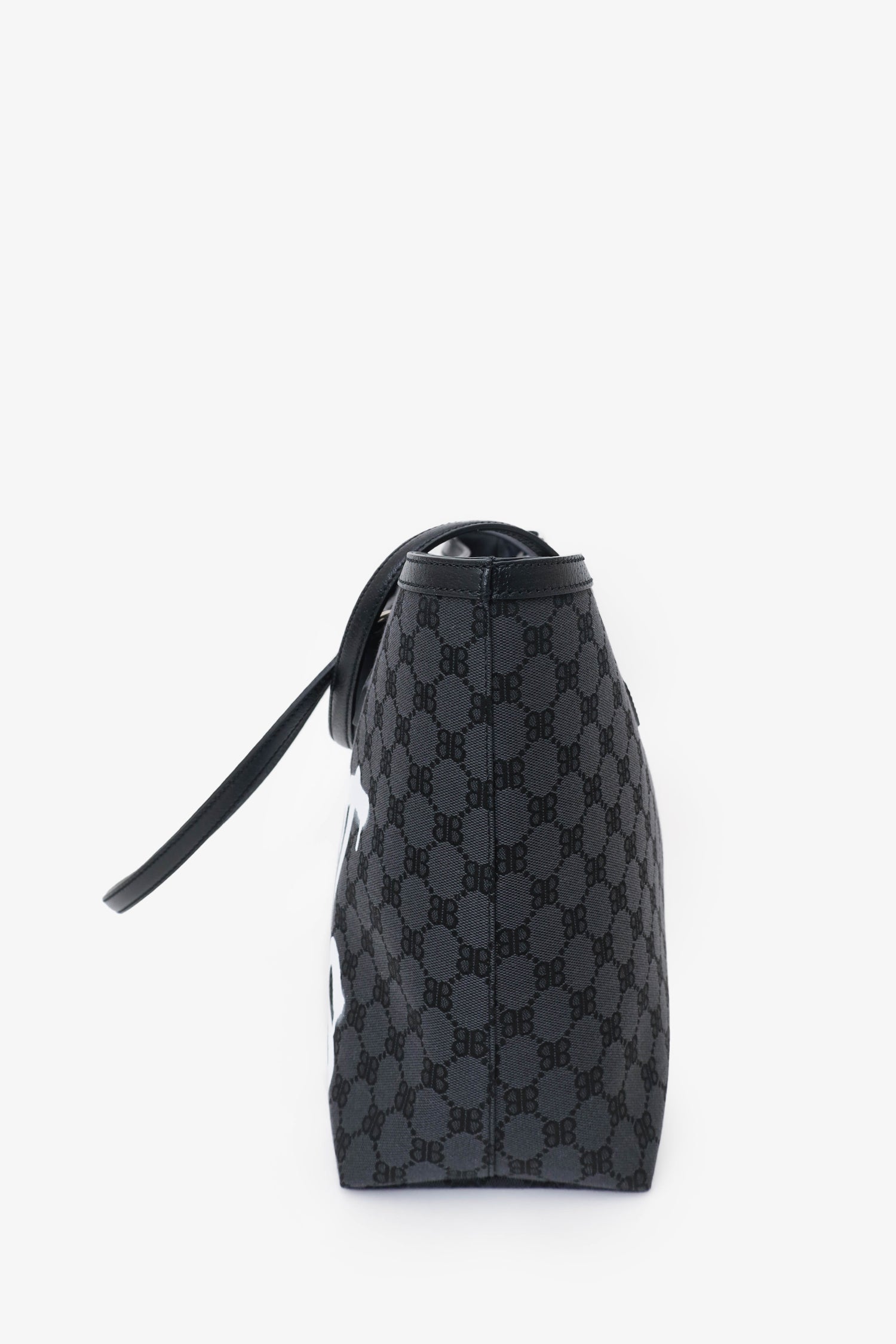 Balenciaga x Gucci Black BB Monogram Web Graffiti Medium Ophidia Shopping Tote