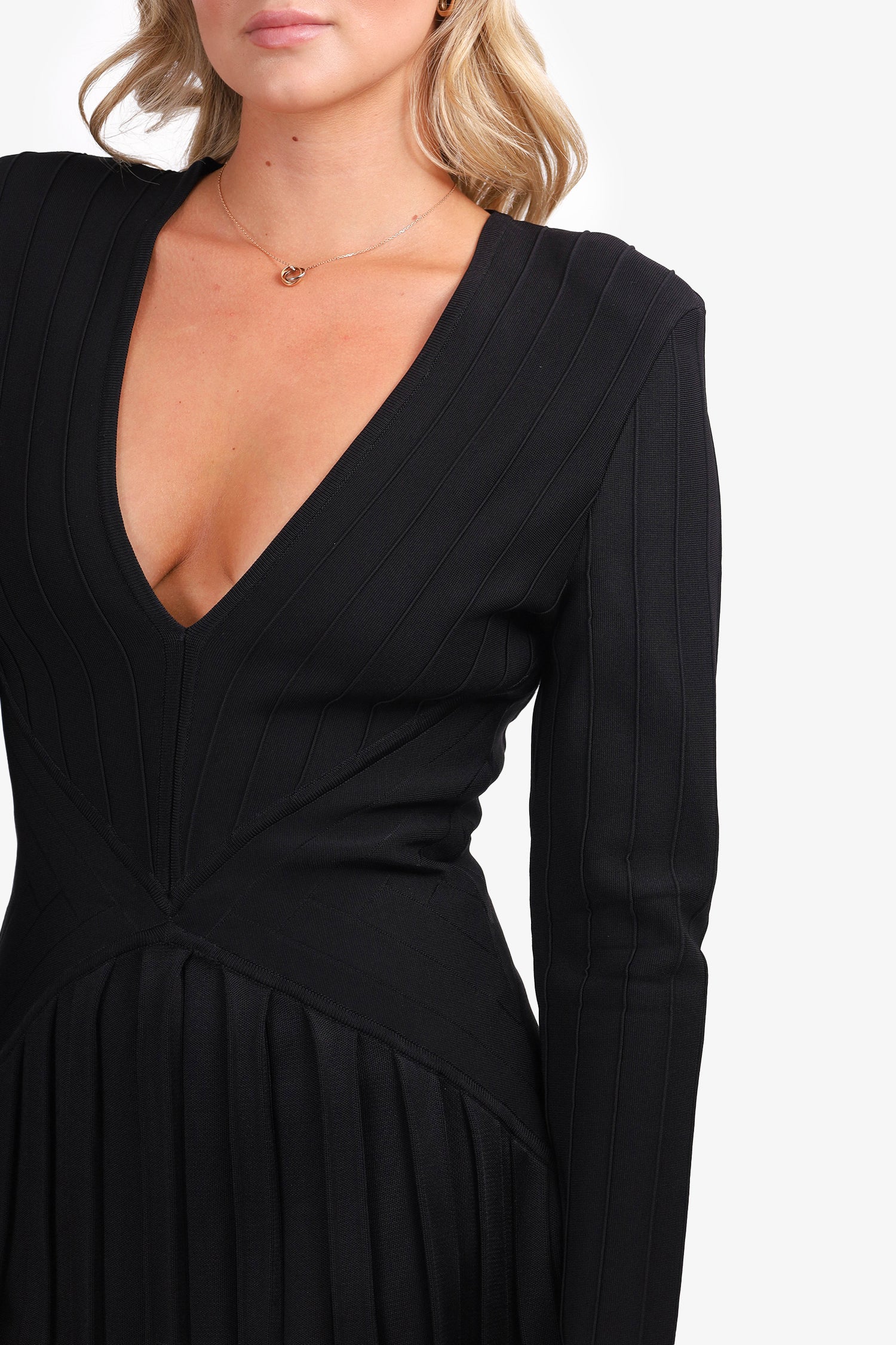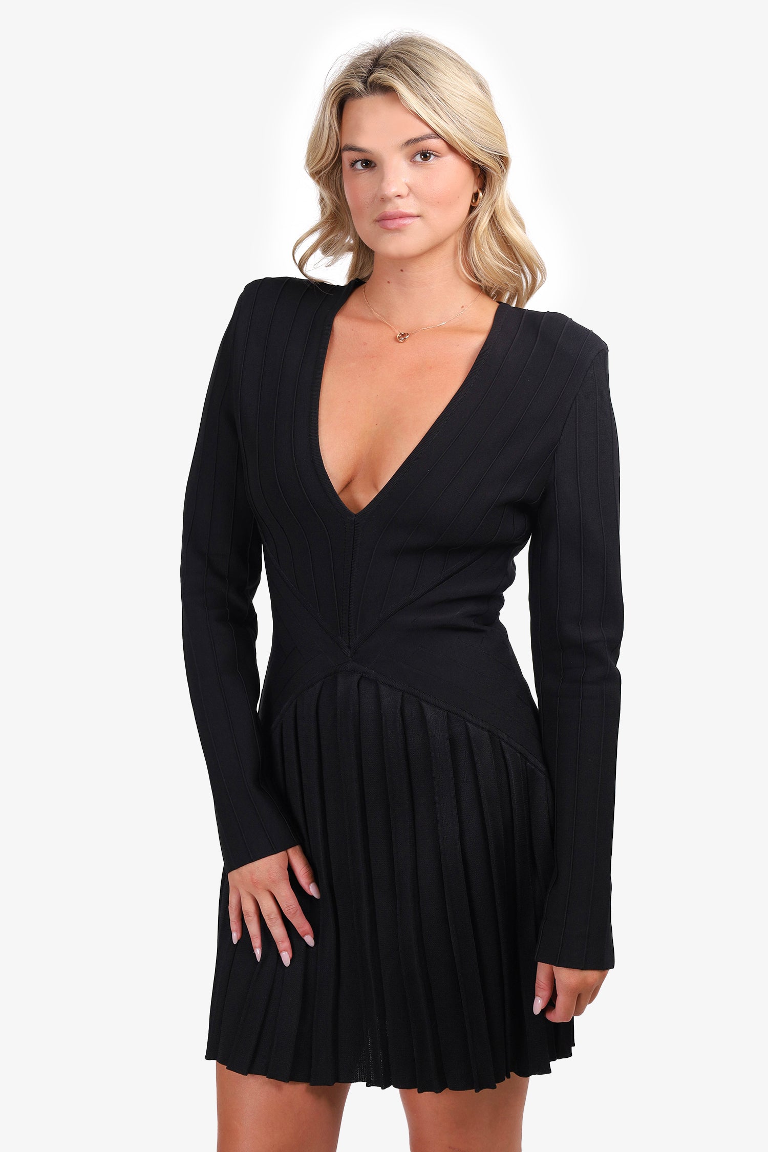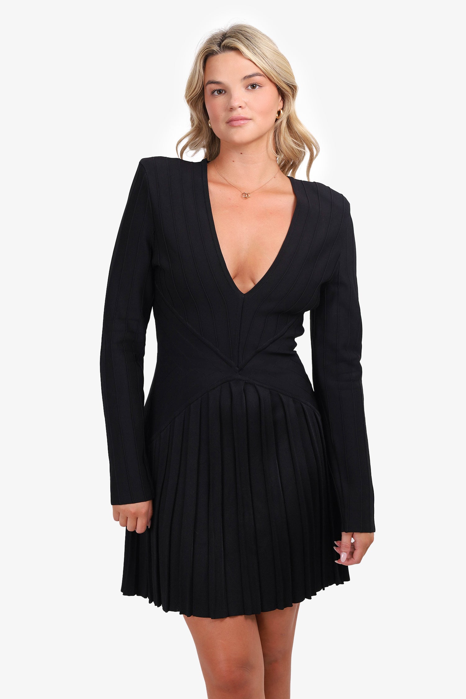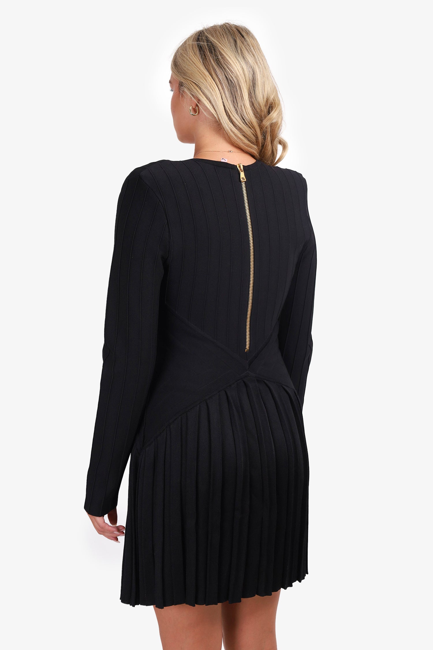 Refresh availabilityBalmain Black Pleated Shoulder-Pad Dress. V-neckline. Rear zip closure. Unlined. Tonal stitching. Gold-tone hardware.