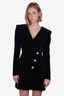 Balmain Black Velvet Gold Button Blazer Dress Size 38