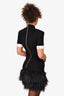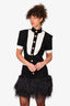 Balmain Black/White Tweed Buttoned Feather Trimmed Dress Size 36