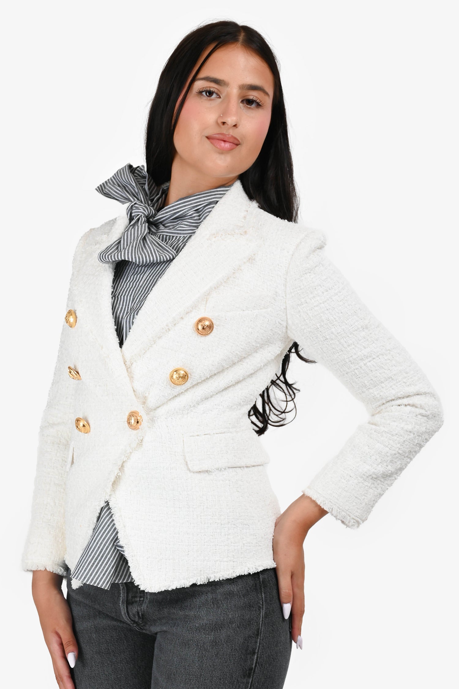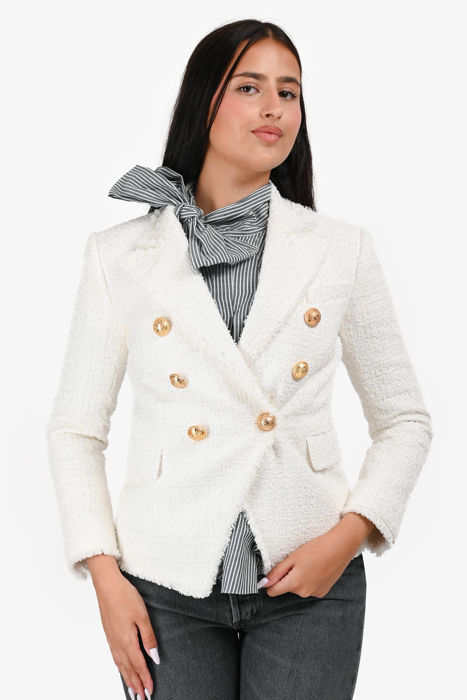 Balmain White Cotton Blend Tweed Double Breasted Blazer Size 38