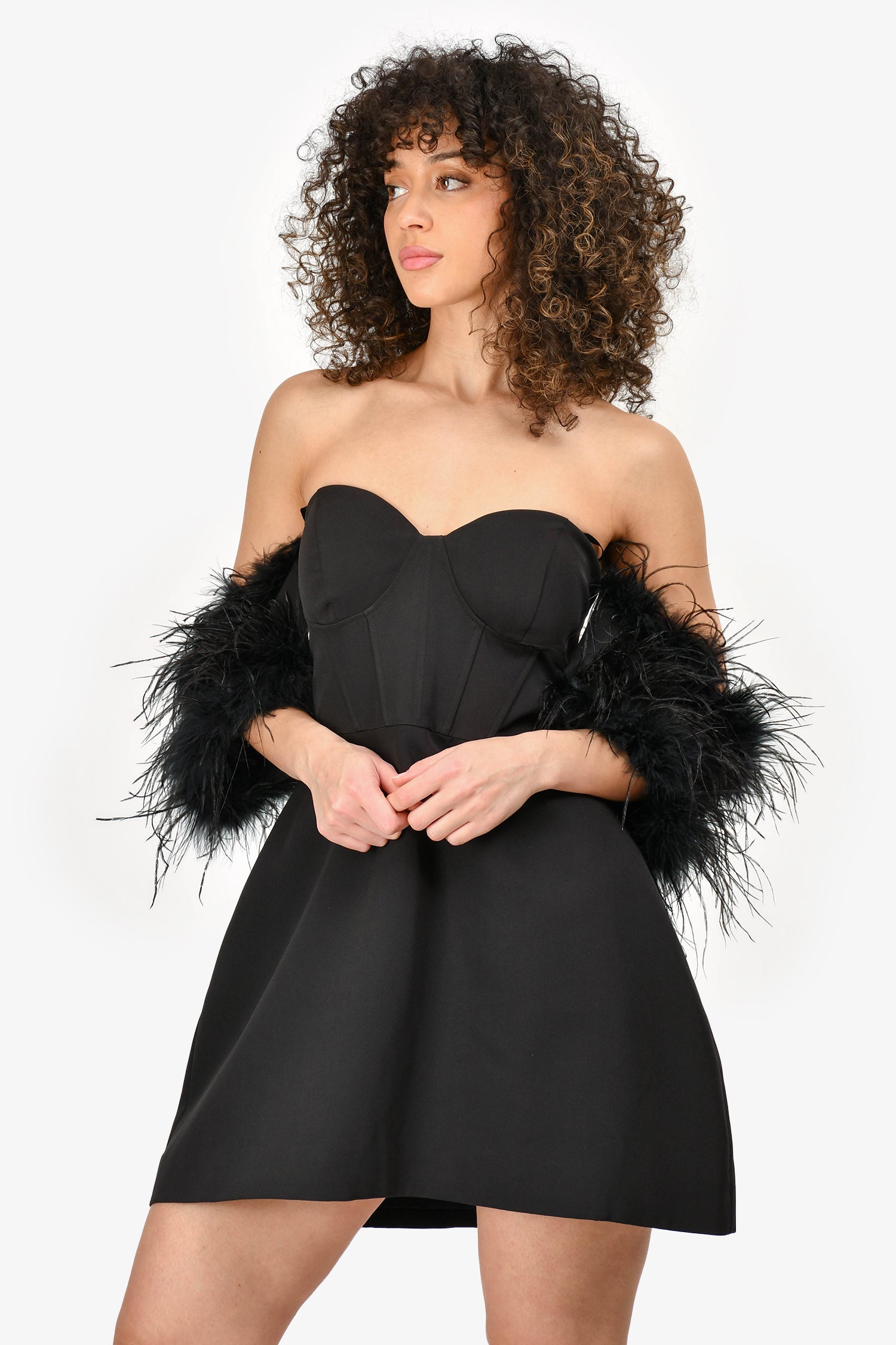 Barianno Black Feather 'Alessia' Mini Dress Size M