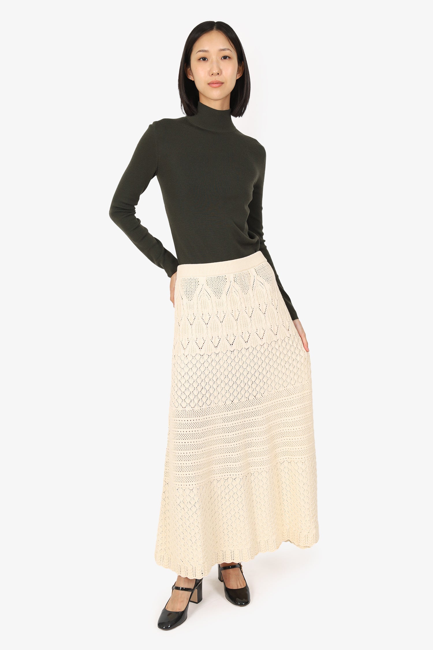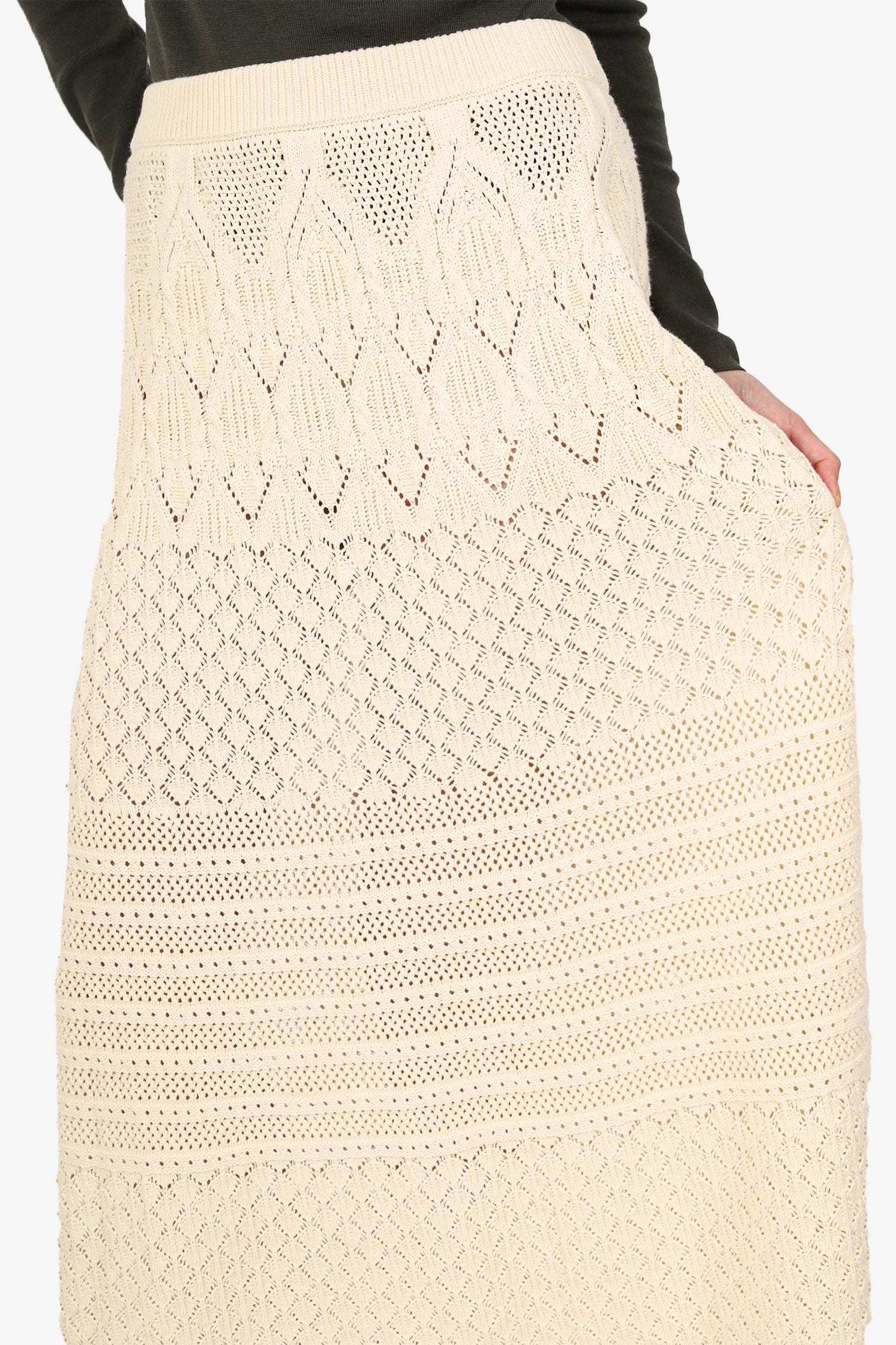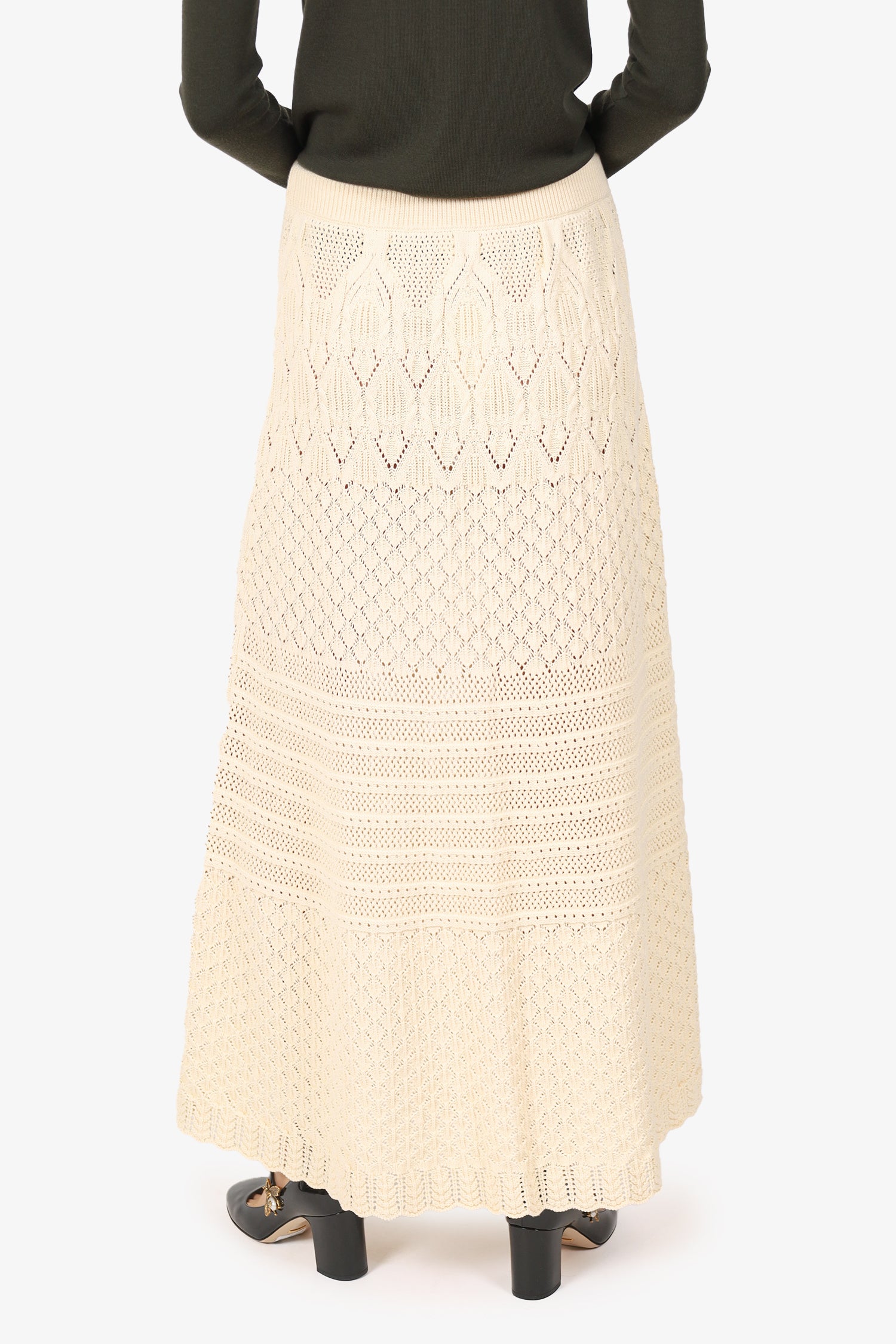 Refresh availabilityBa&Sh White Crochet Knit Maxi Skirt. Slip-on. Elasticated waistband. Tonal stitching.