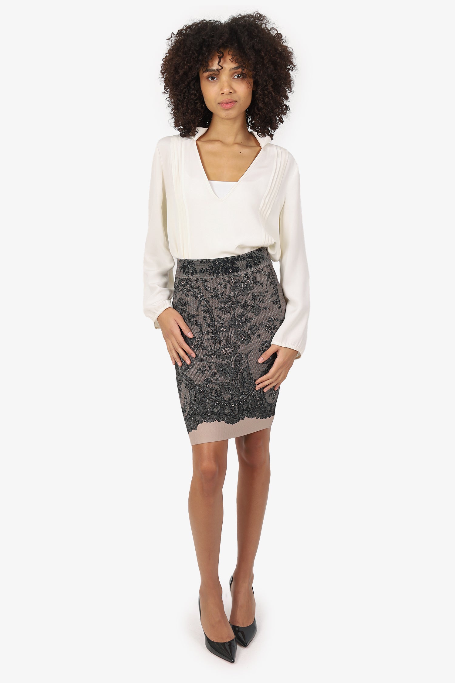 Refresh availabilityBCBG Max Azria Black Lace Printed Skirt. Slip-on. Tonal stitching.