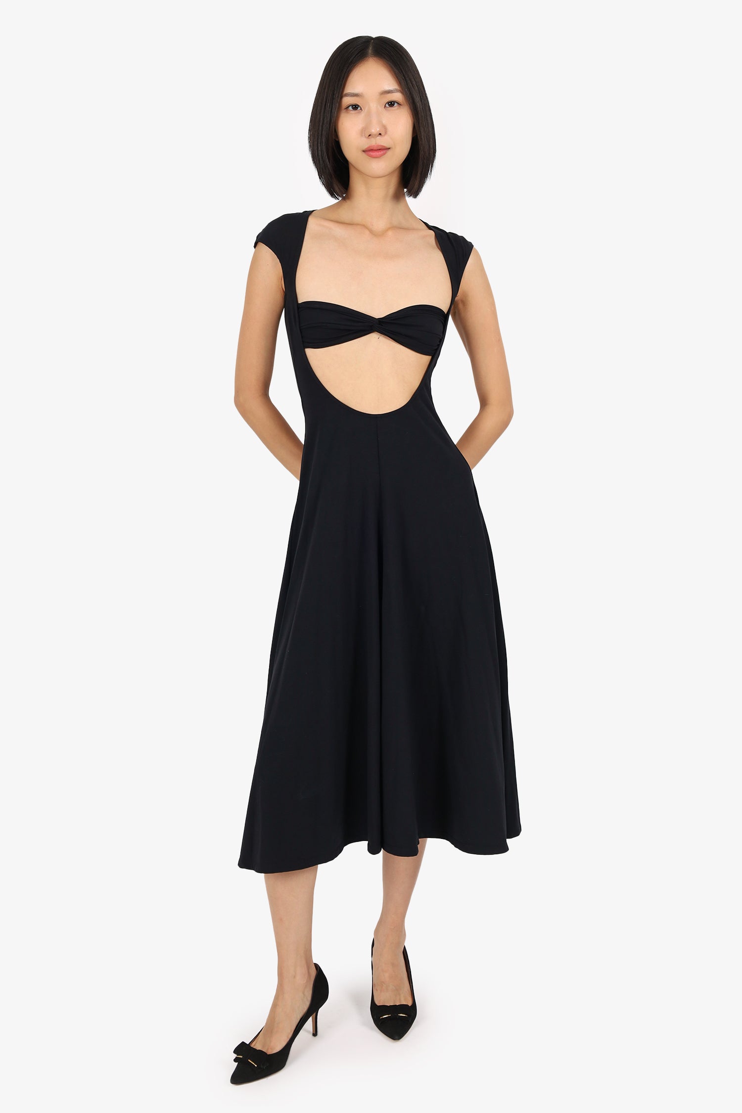 Refresh availabilityBeaufille Black Cut-Out Detail Midi Dress. Slip-on. Squared-neckline. Cut-out at front waistline. Elasticated neckline. Tonal stitching.