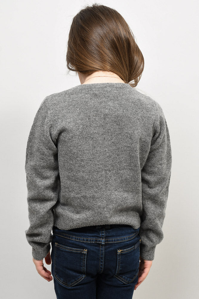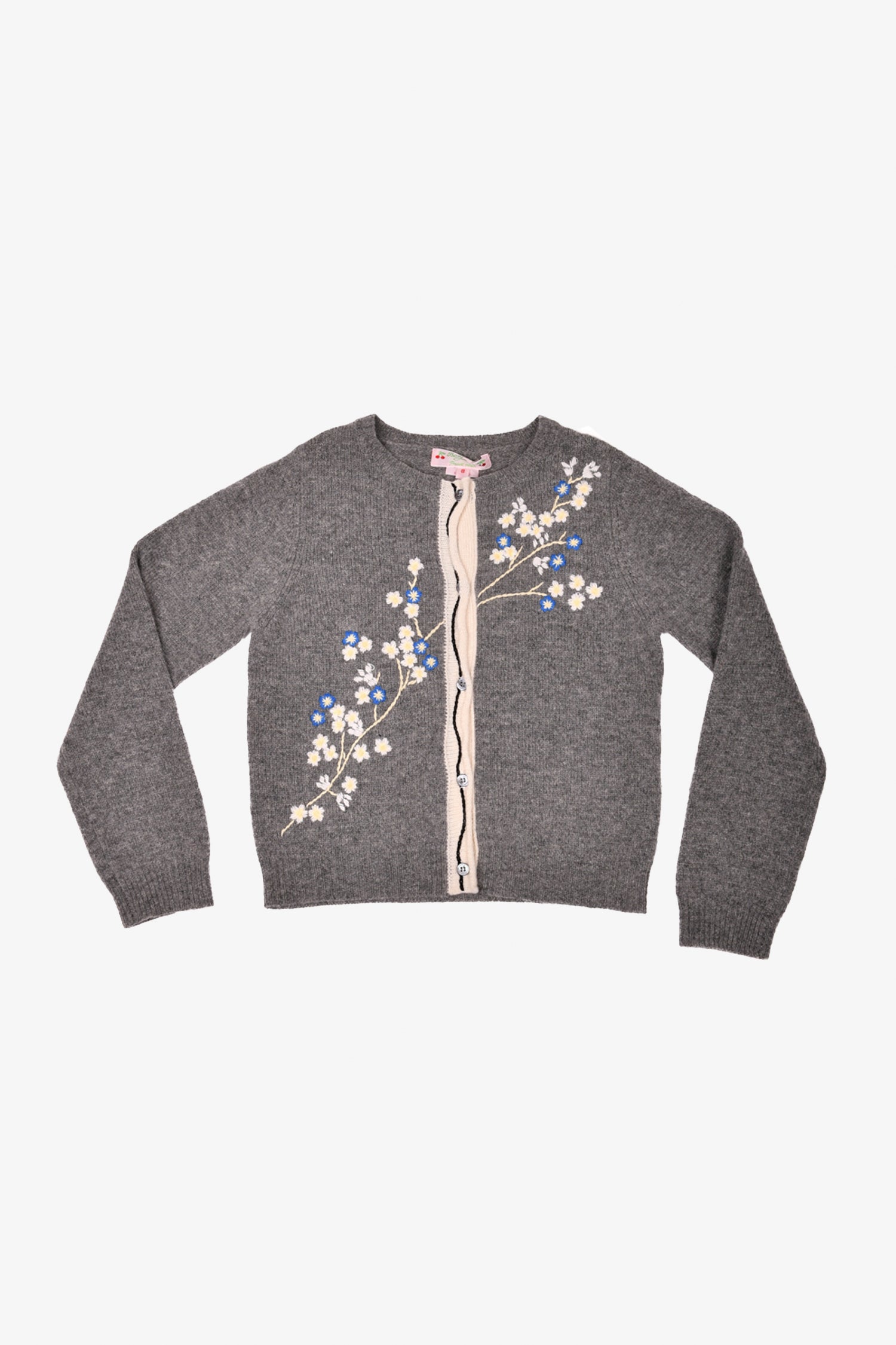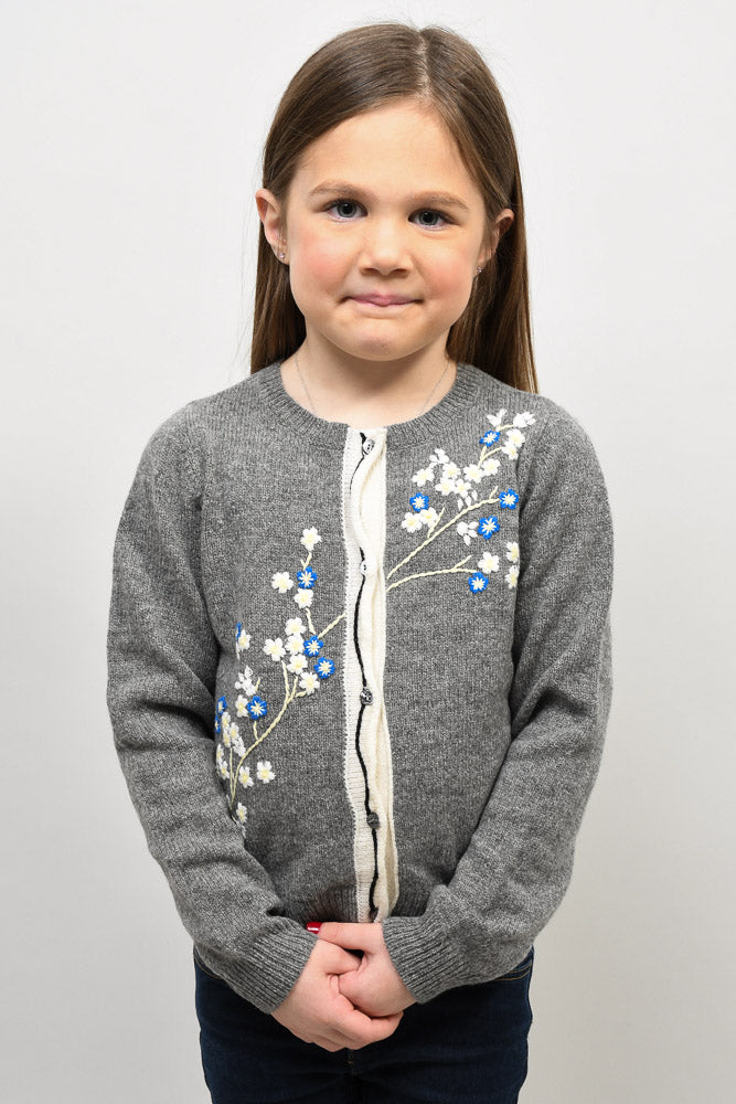 Bonpoint Grey Wool Floral Embroidered Cardigan Size 8 Kids