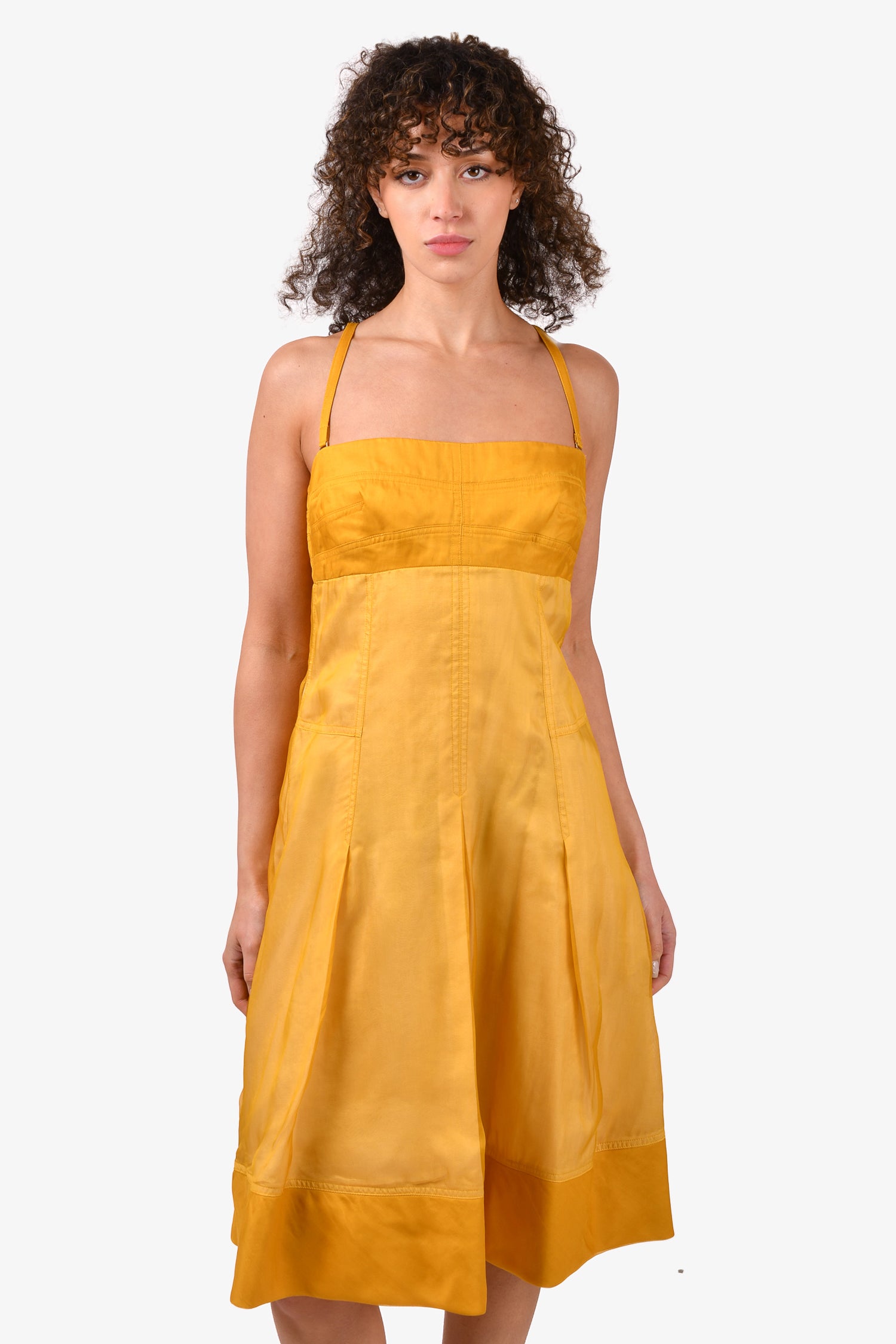 Boss Hugo Boss Yellow Sleeveless Dart Front Pleated Dress Estimated Size M