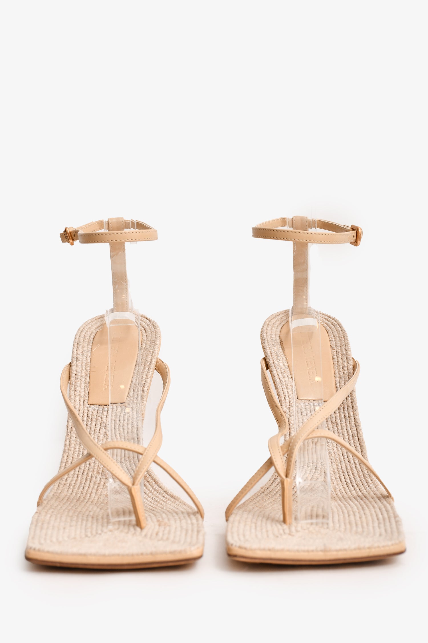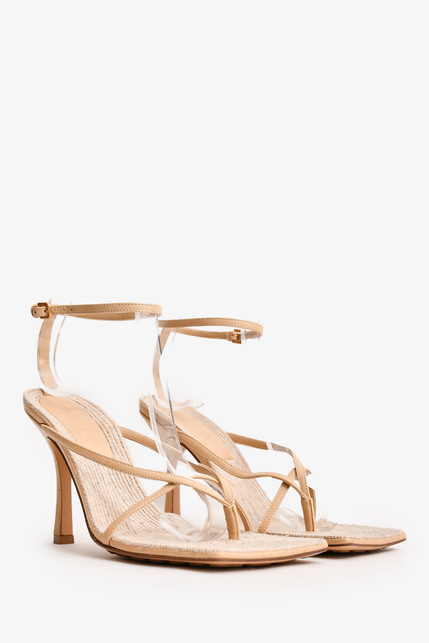 Bottega Veneta Beige Leather Stretch Strap Sandals Size 39.5