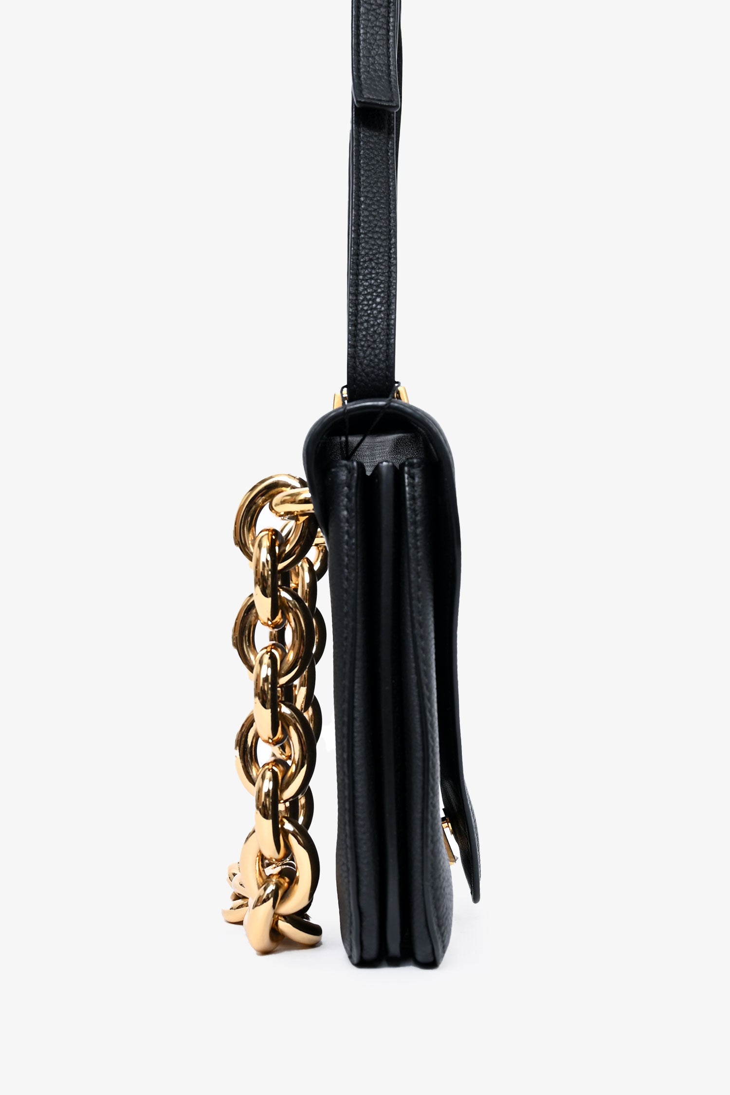 Refresh availabilityBottega Veneta Black Grained Leather Mount Envelope Chain Small Crossbody Bag. Gold-tone hardware. Chain-link handle strap. Adjustable leather crossbody strap.