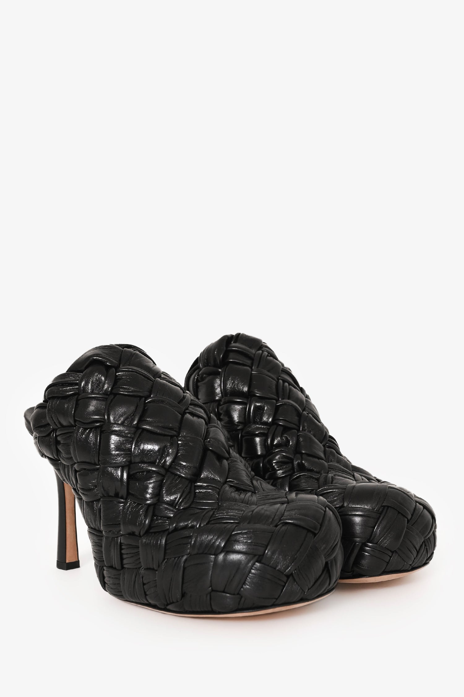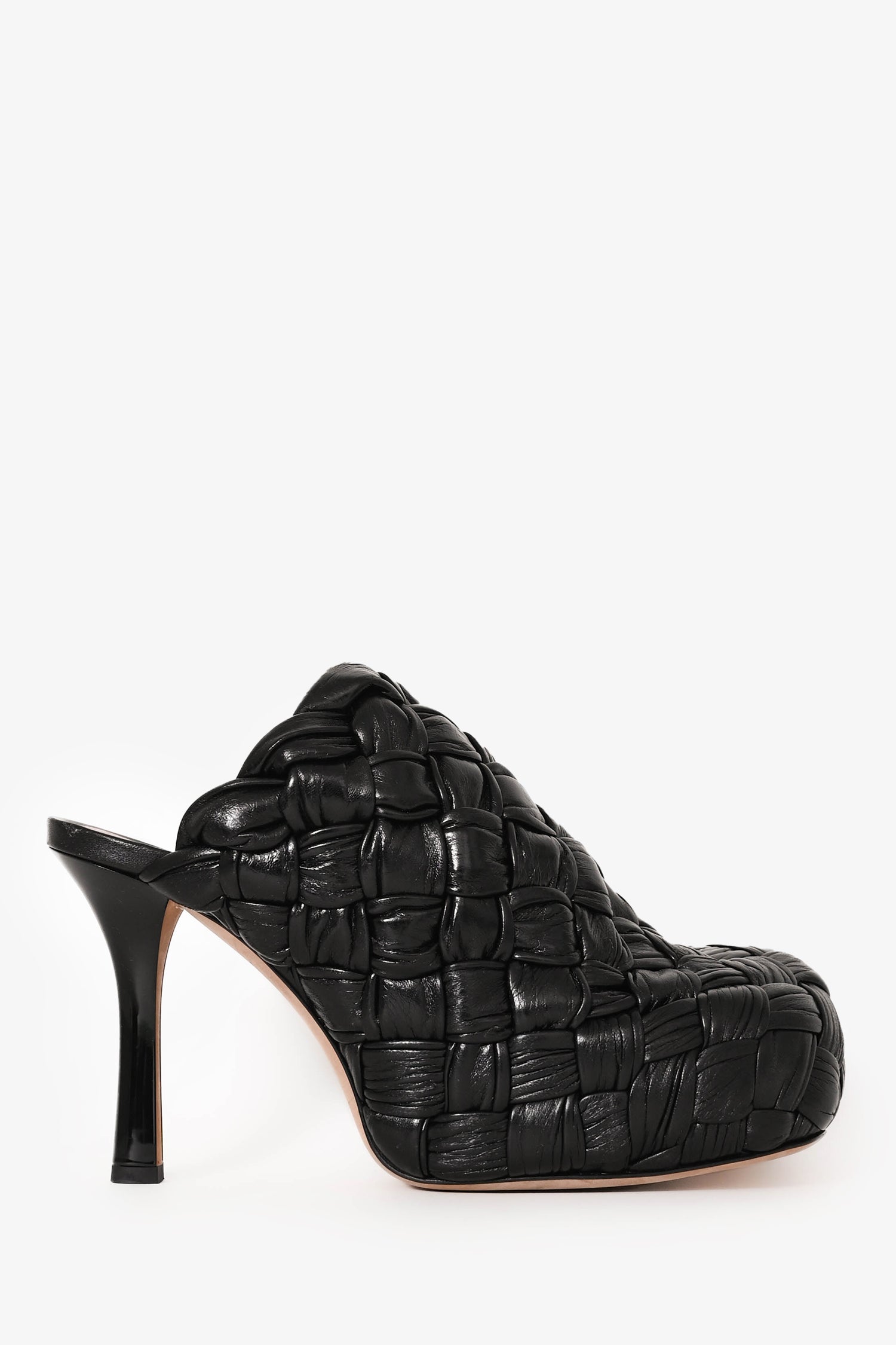 Refresh availabilityBottega Veneta Black Leather Intrecciato Square Toe Mules. Slip-on. Squared-toe. Tonal stitching.