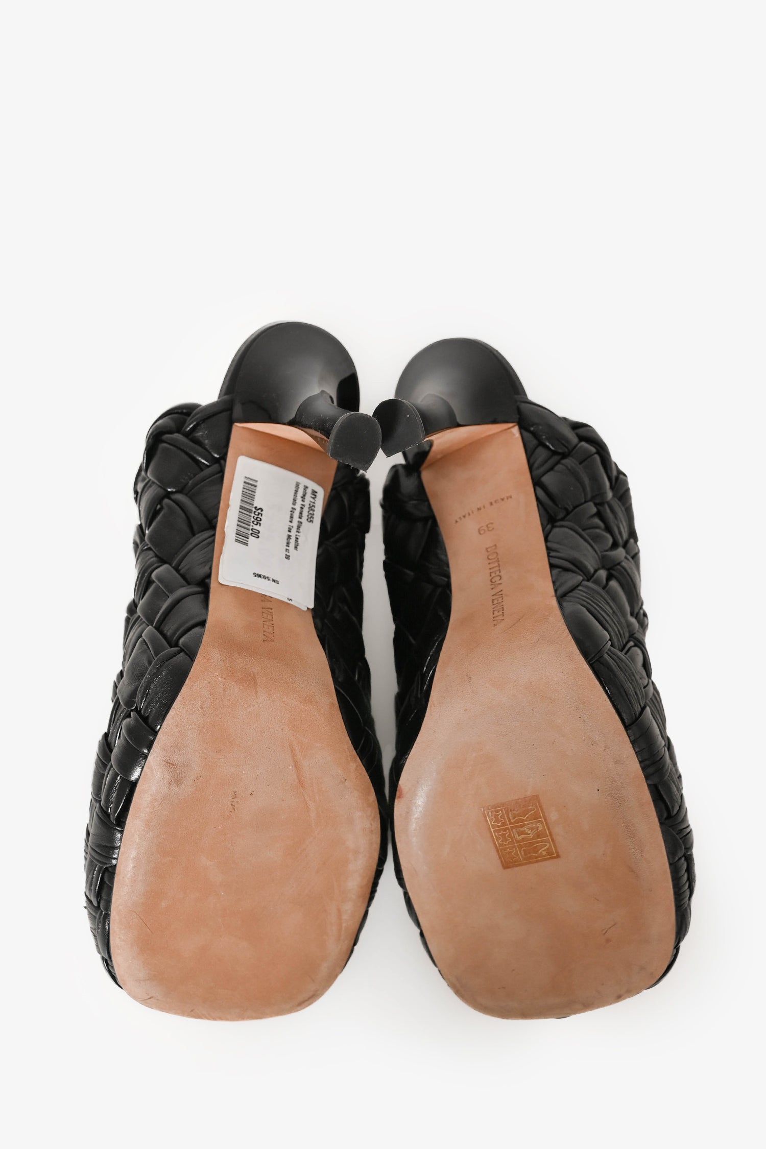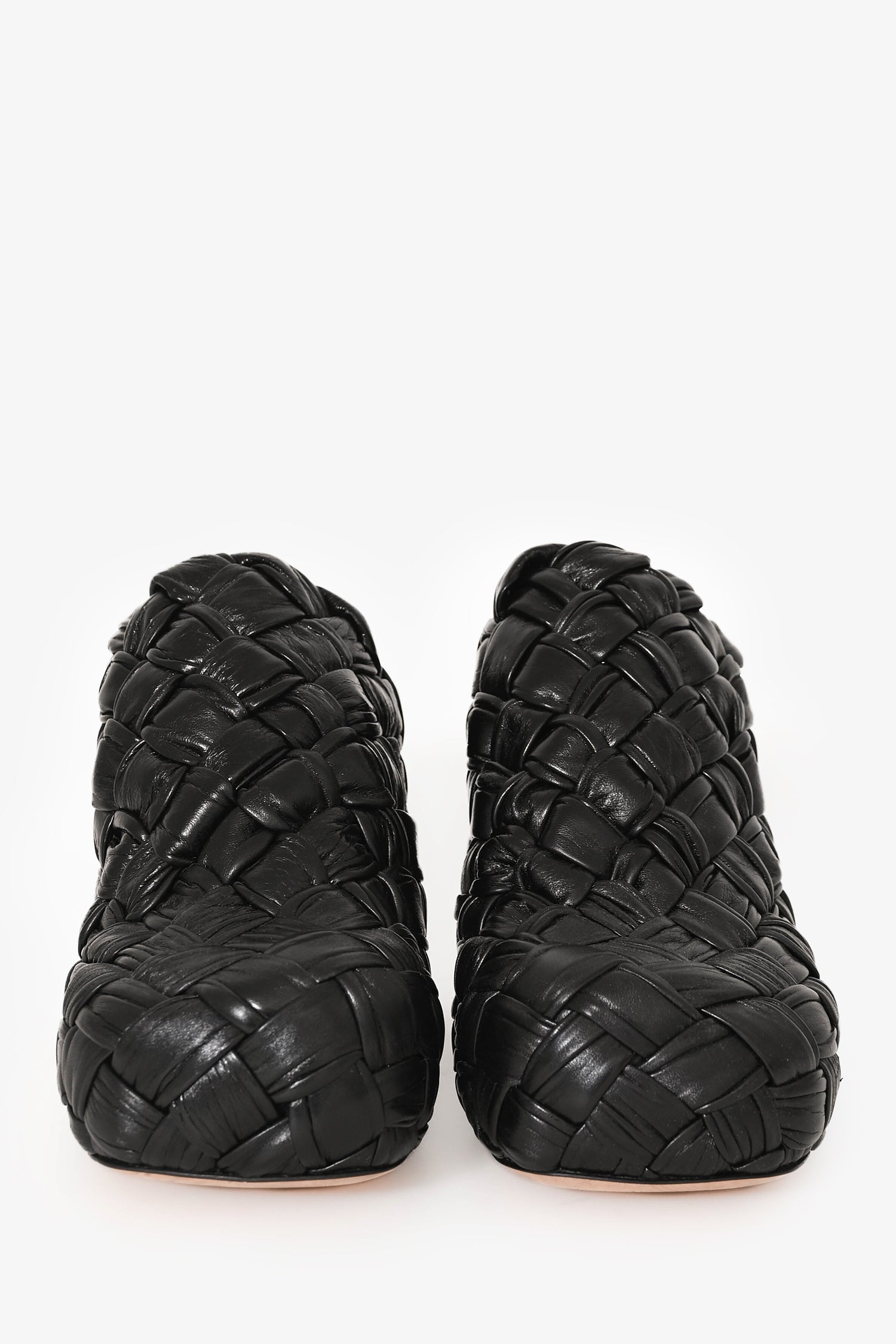 Bottega Veneta Black Leather Intrecciato Square Toe Mules Size 39