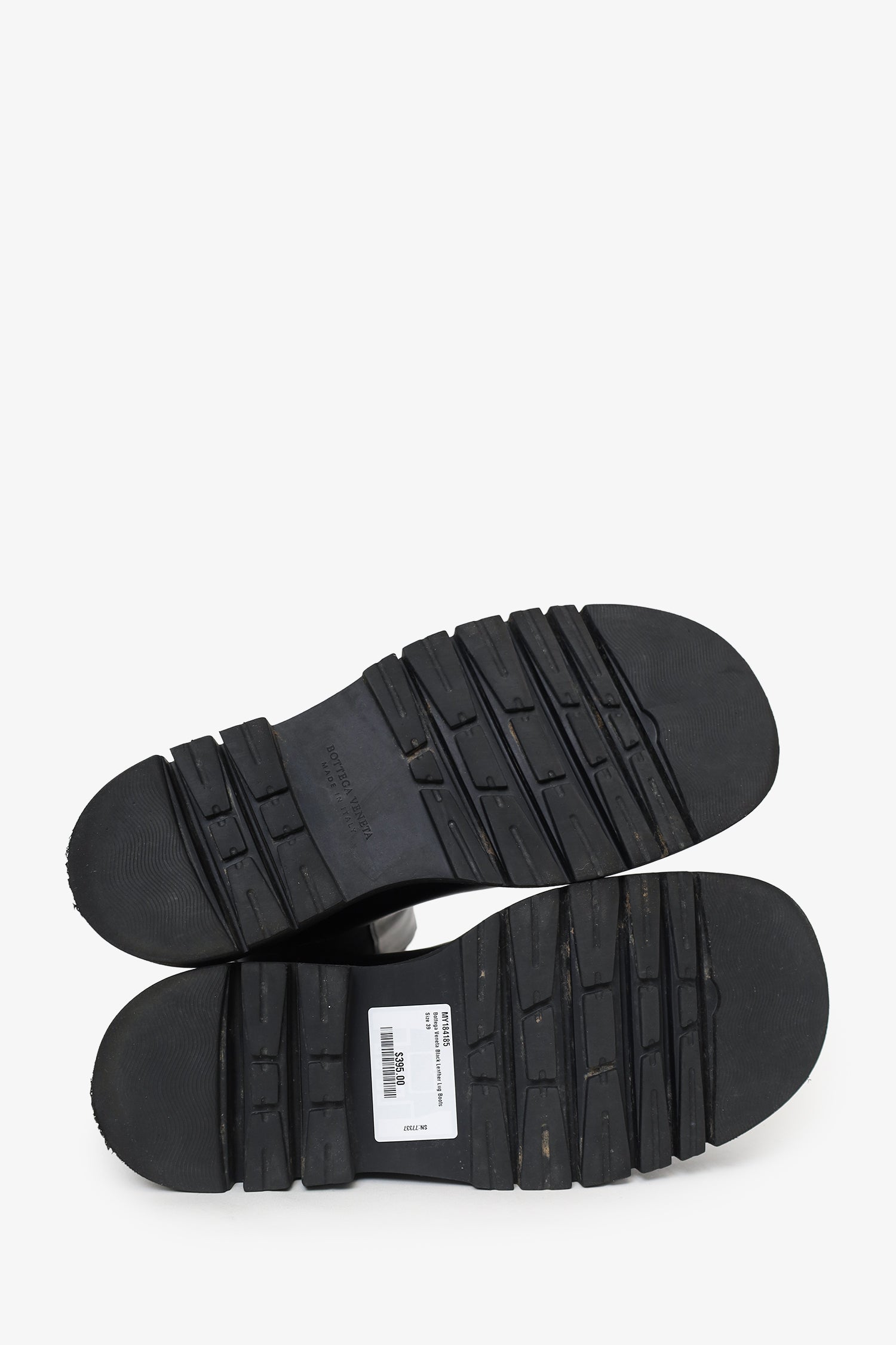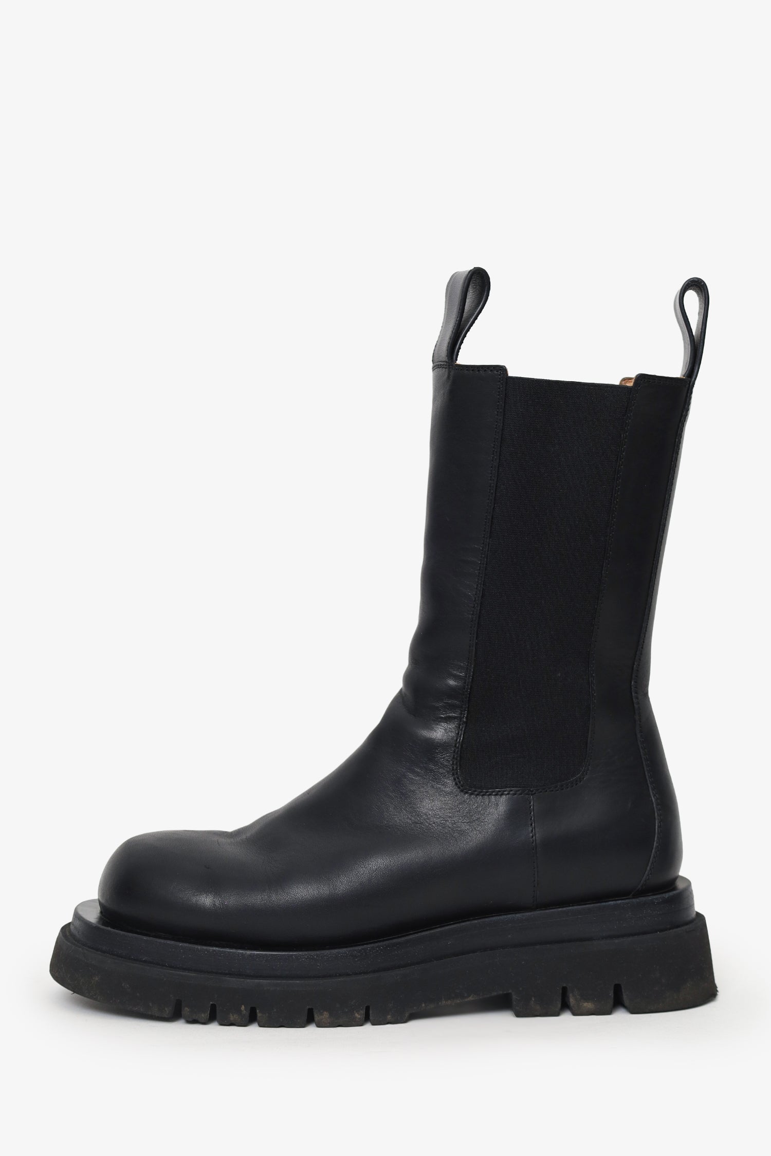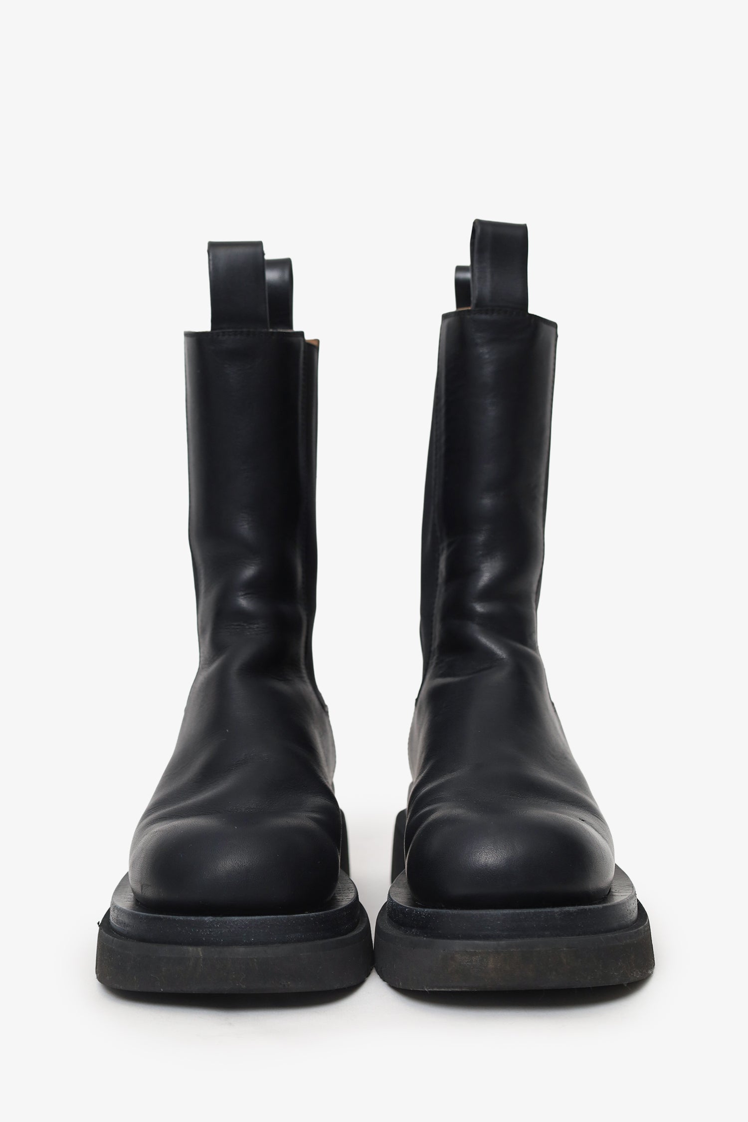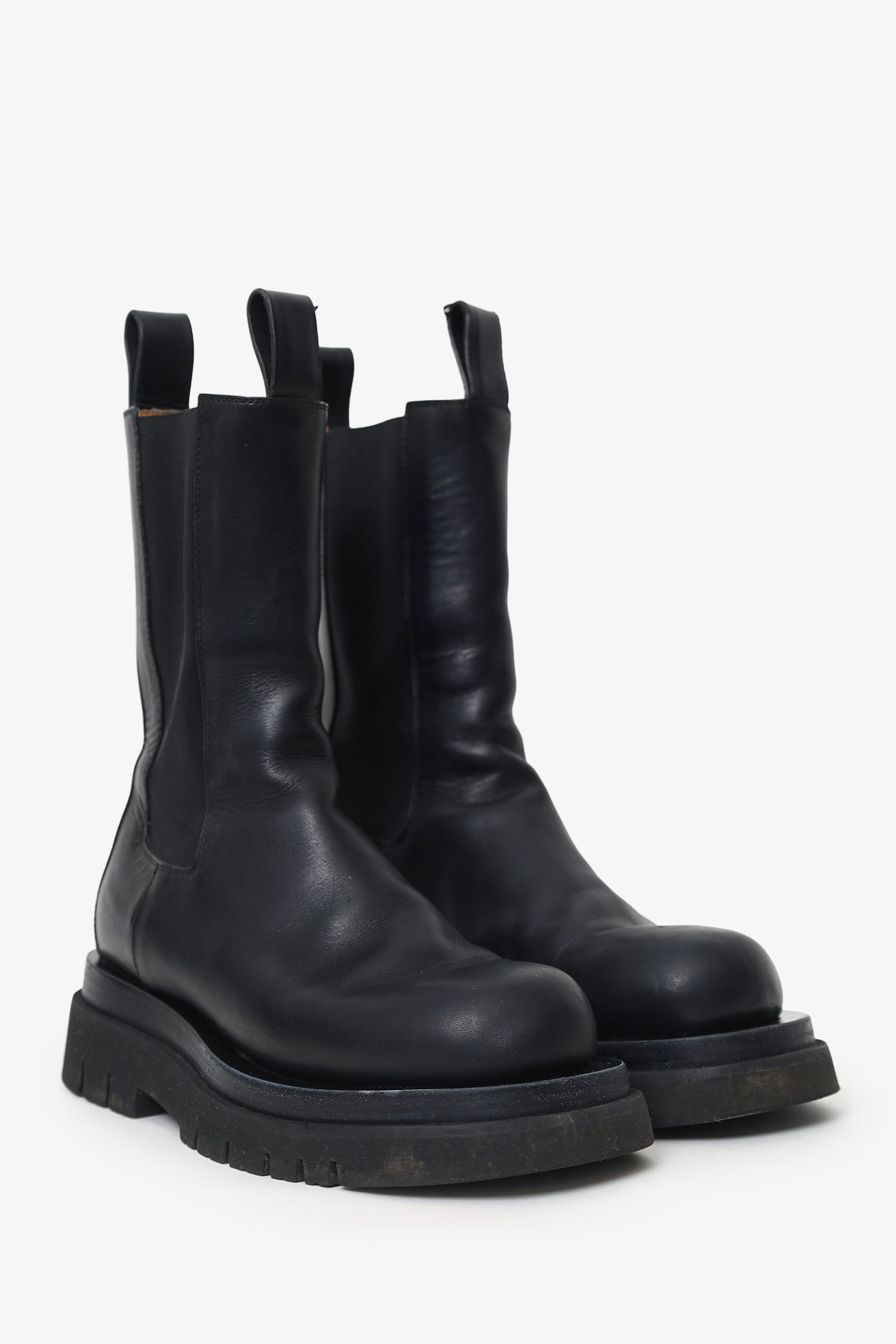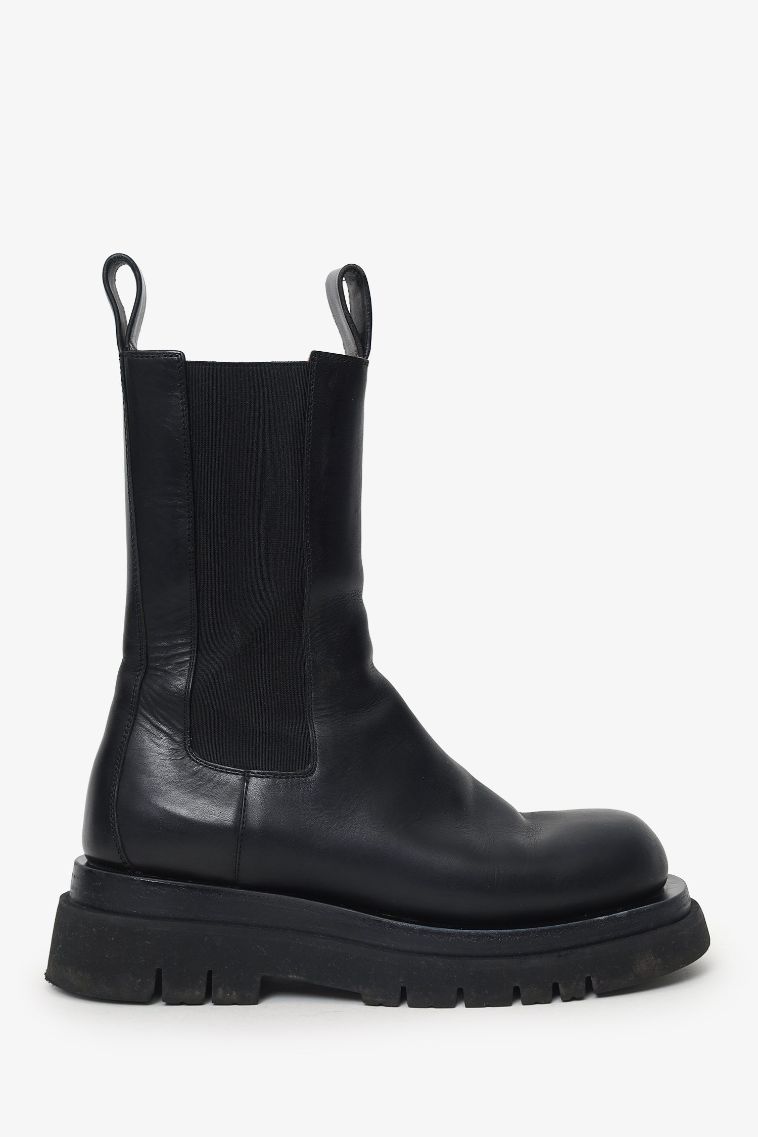 Refresh availabilityBottega Veneta Black Leather Lug Boots. Pull-on. Round toe. Front and rear pull tabs. Tonal stitching.