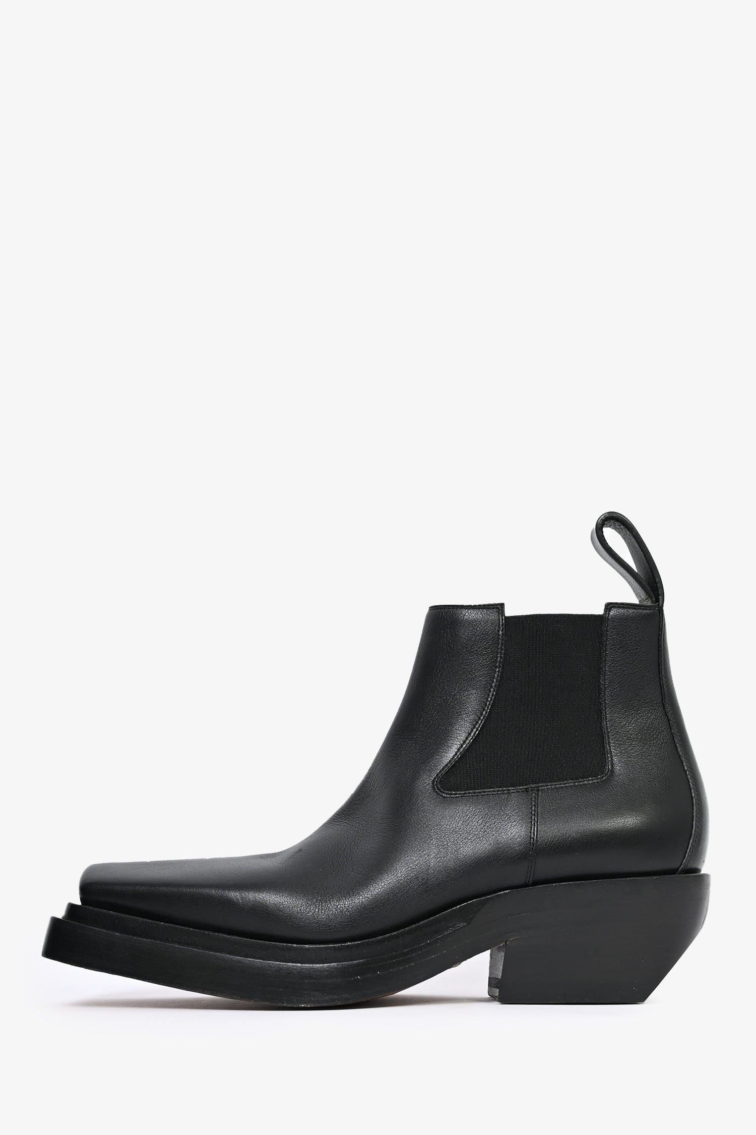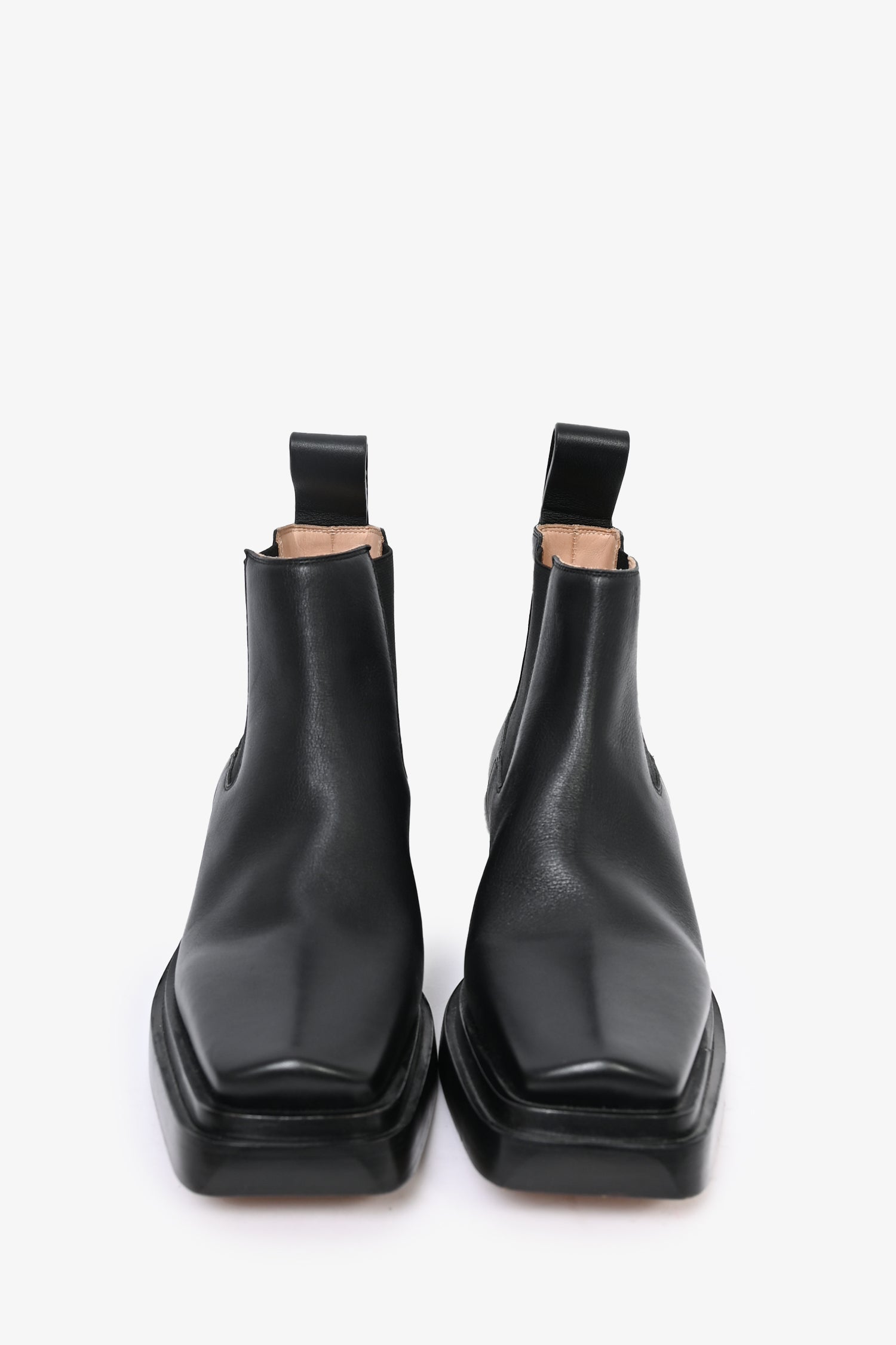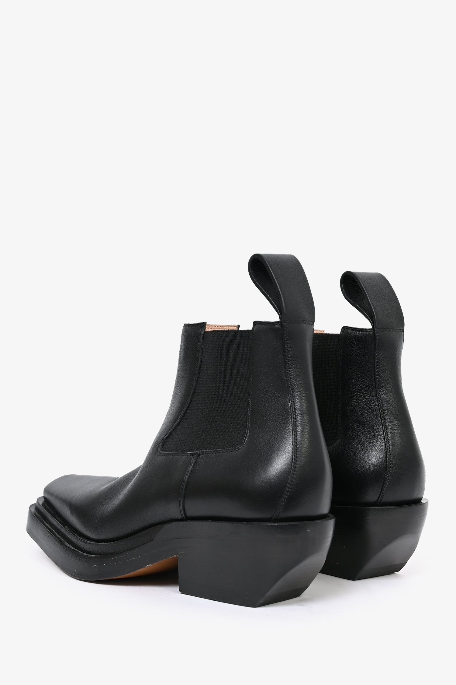 Refresh availabilityBottega Veneta Black Leather Square Toe Western Boots. Slip on. Square toe. Tonal stitching.