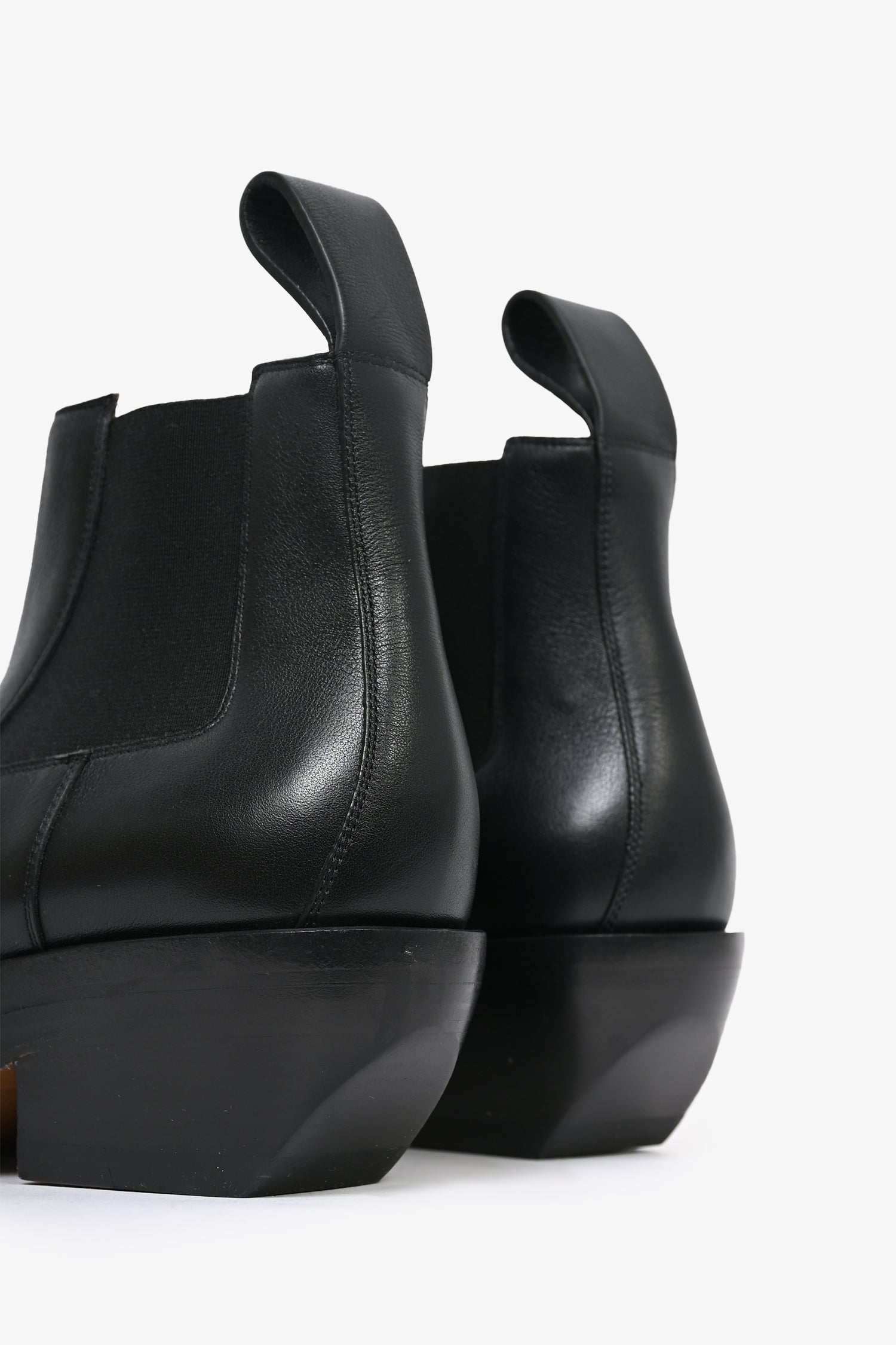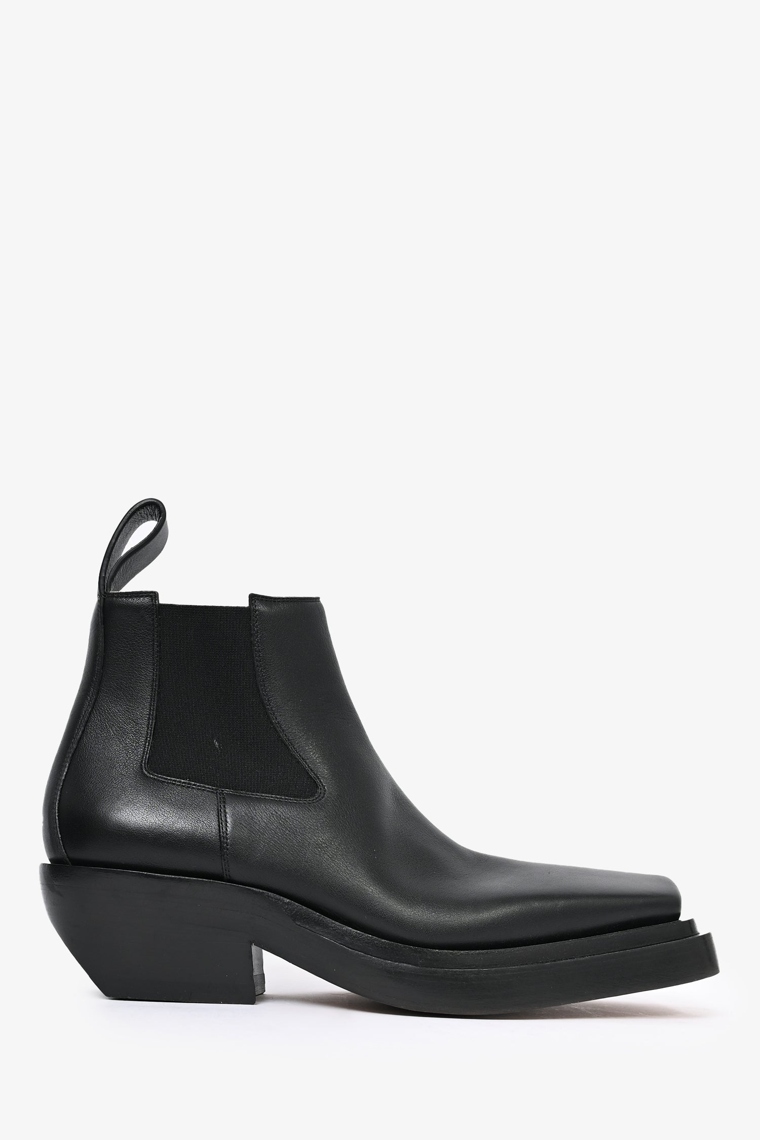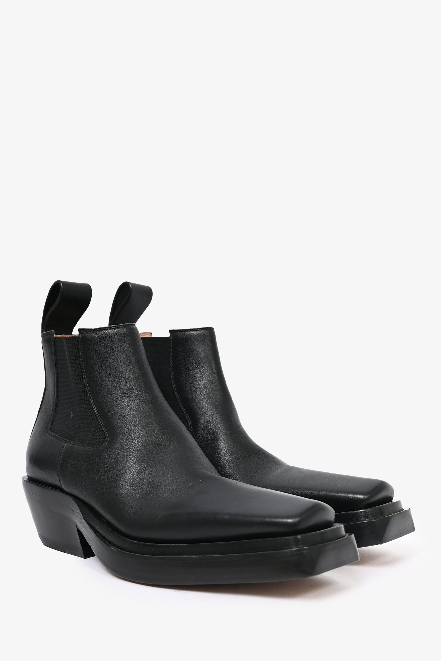 Refresh availabilityBottega Veneta Black Leather Square Toe Western Boots. Slip on. Square toe. Tonal stitching.