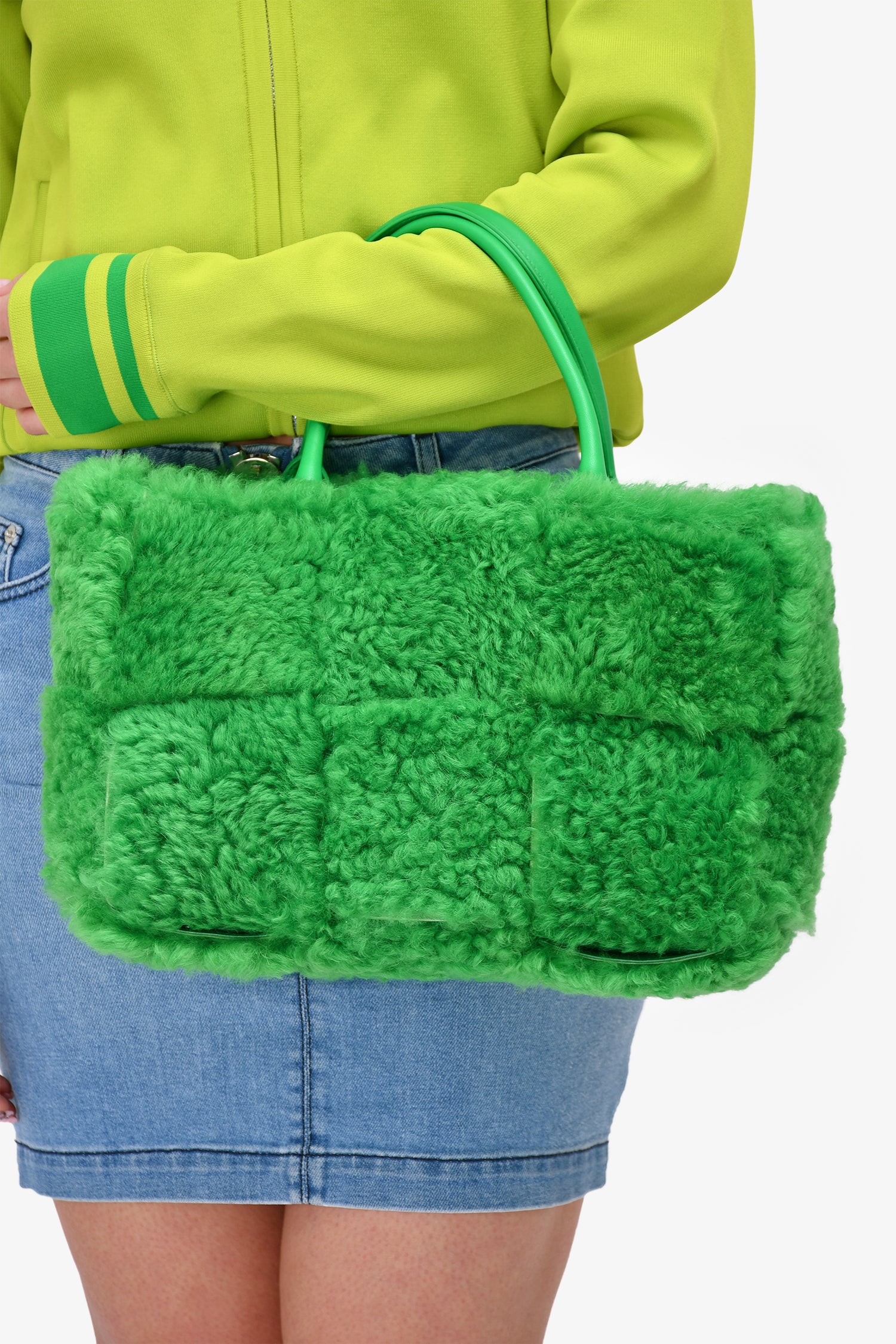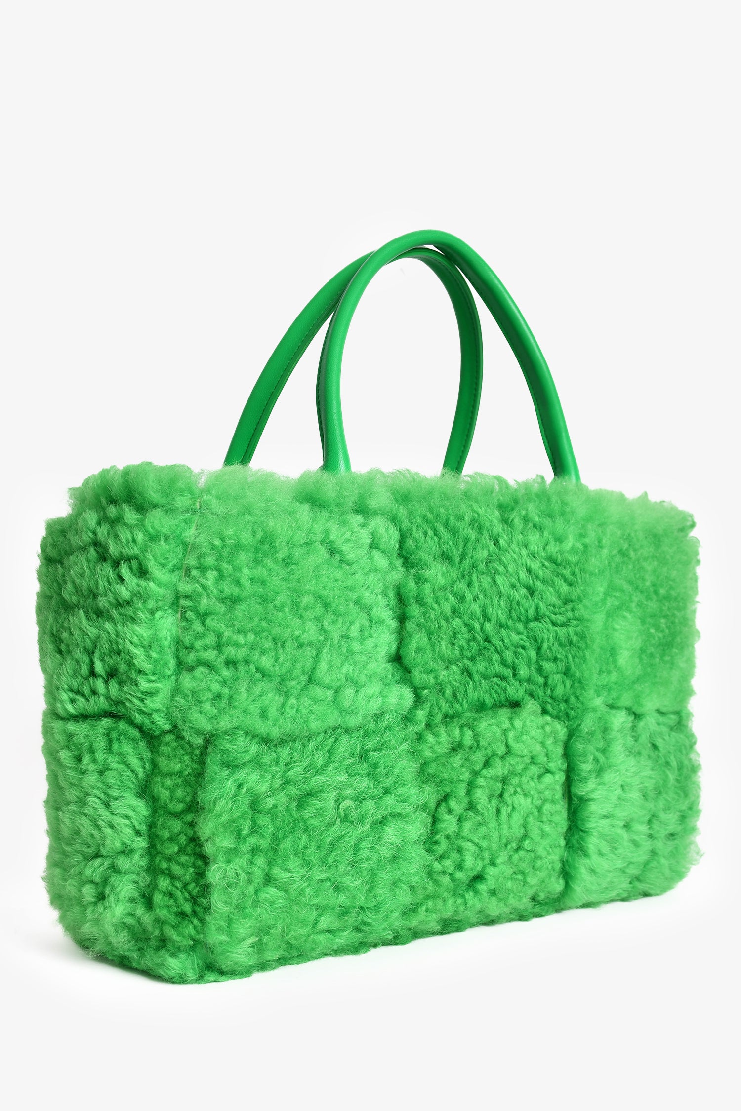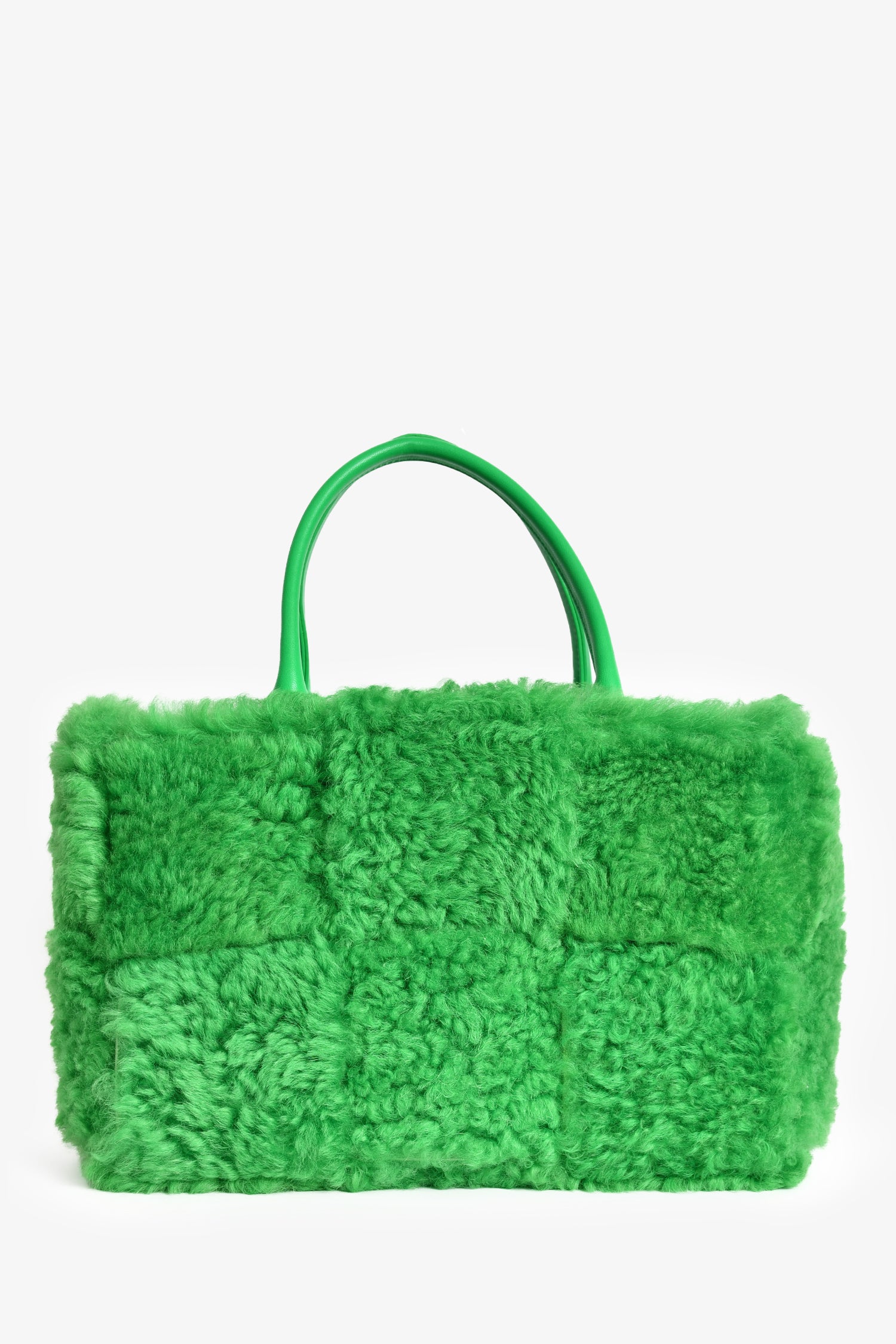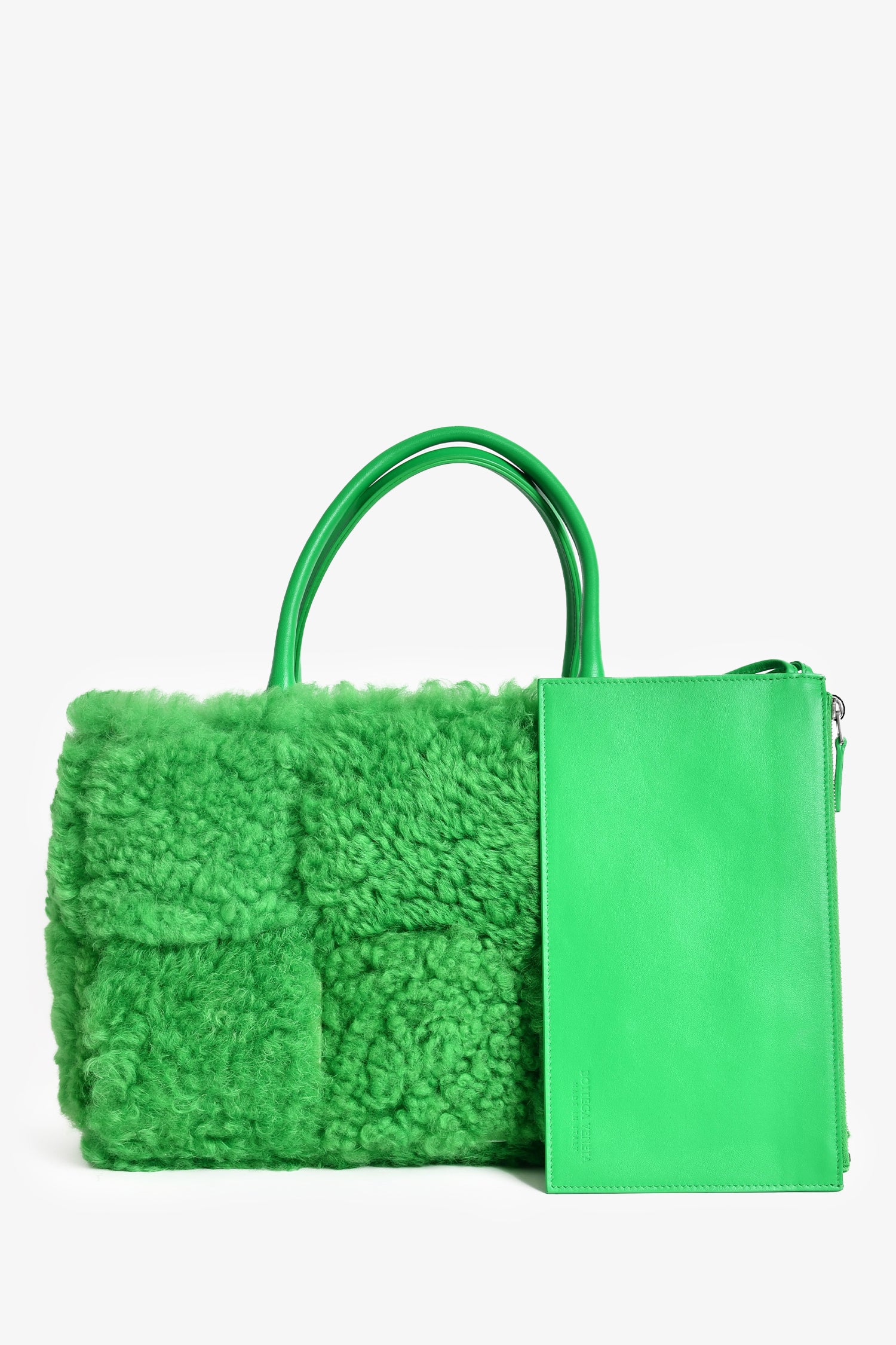 Refresh availabilityBottega Veneta Green Shearling Small Acro Tote. Open top. Dual handles. Tonal leather interior. 4 interior wall slip pockets. Detachable interior zip pouch. Silver-tone hardware.