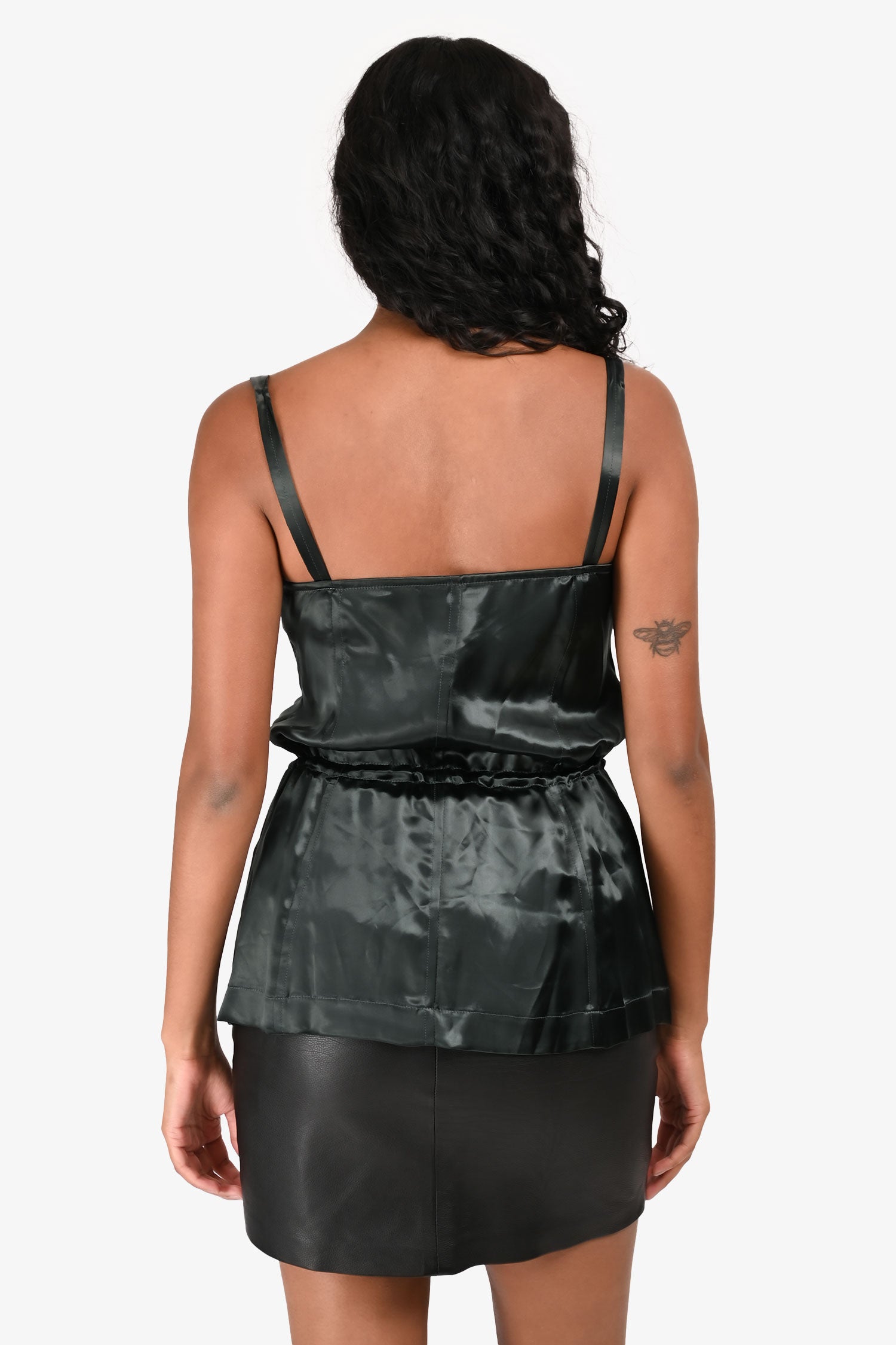 Bottega Veneta Green Zip-Up Drawstring Waist Corset Top Size 36