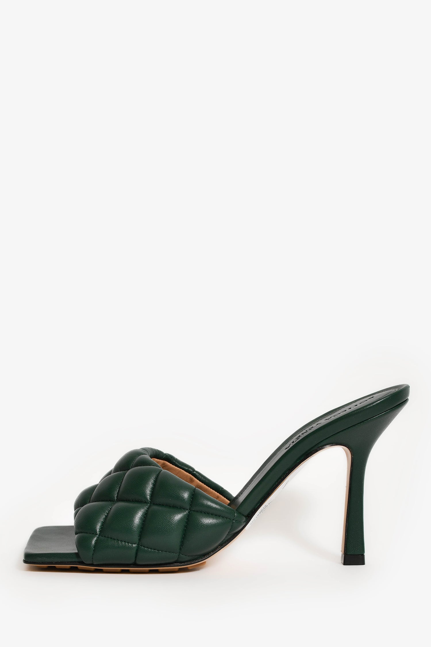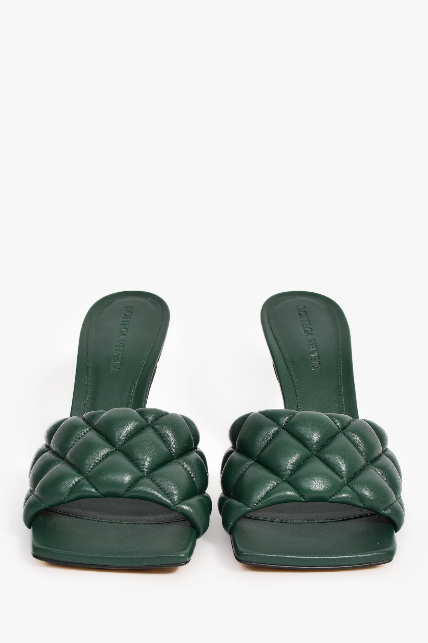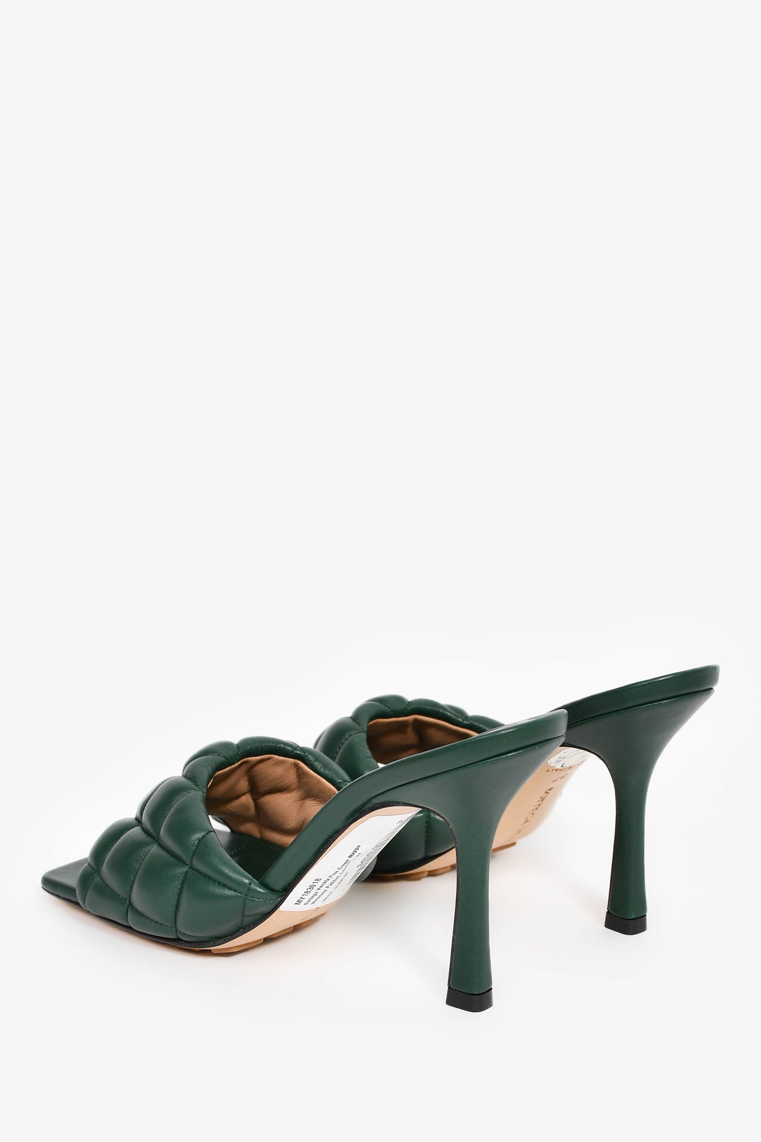 Refresh availabilityBottega Veneta Pine Green Nappa Matelasse Padded Sandals. Slip-on. Open-square toe. Tonal stitching.