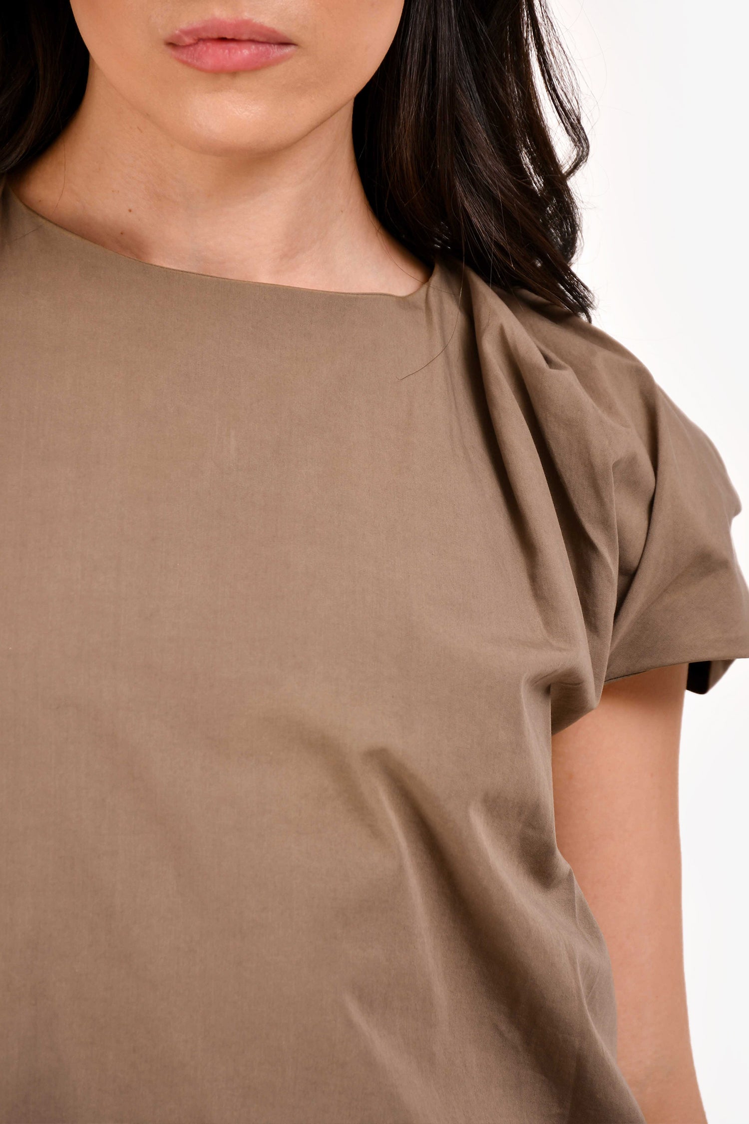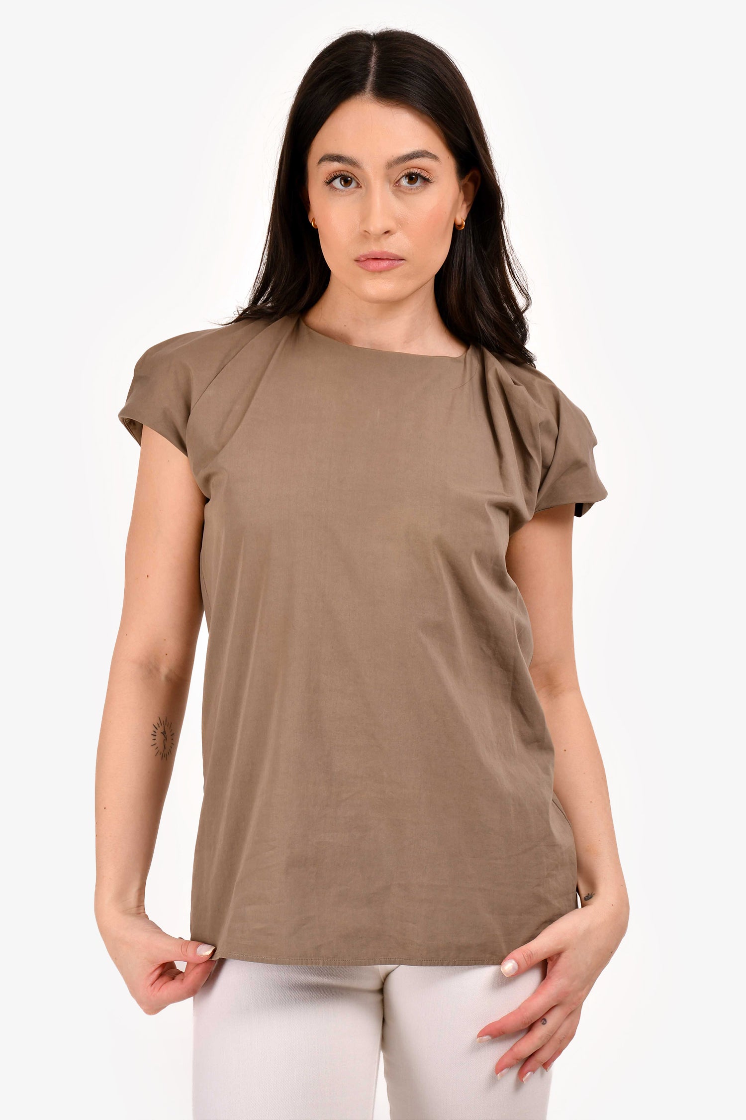 Refresh availabilityBottega Veneta Taupe Cotton Cap Sleeve Top. Crew neckline. Cap sleeves. Back zip-up closure. Tonal stitching.