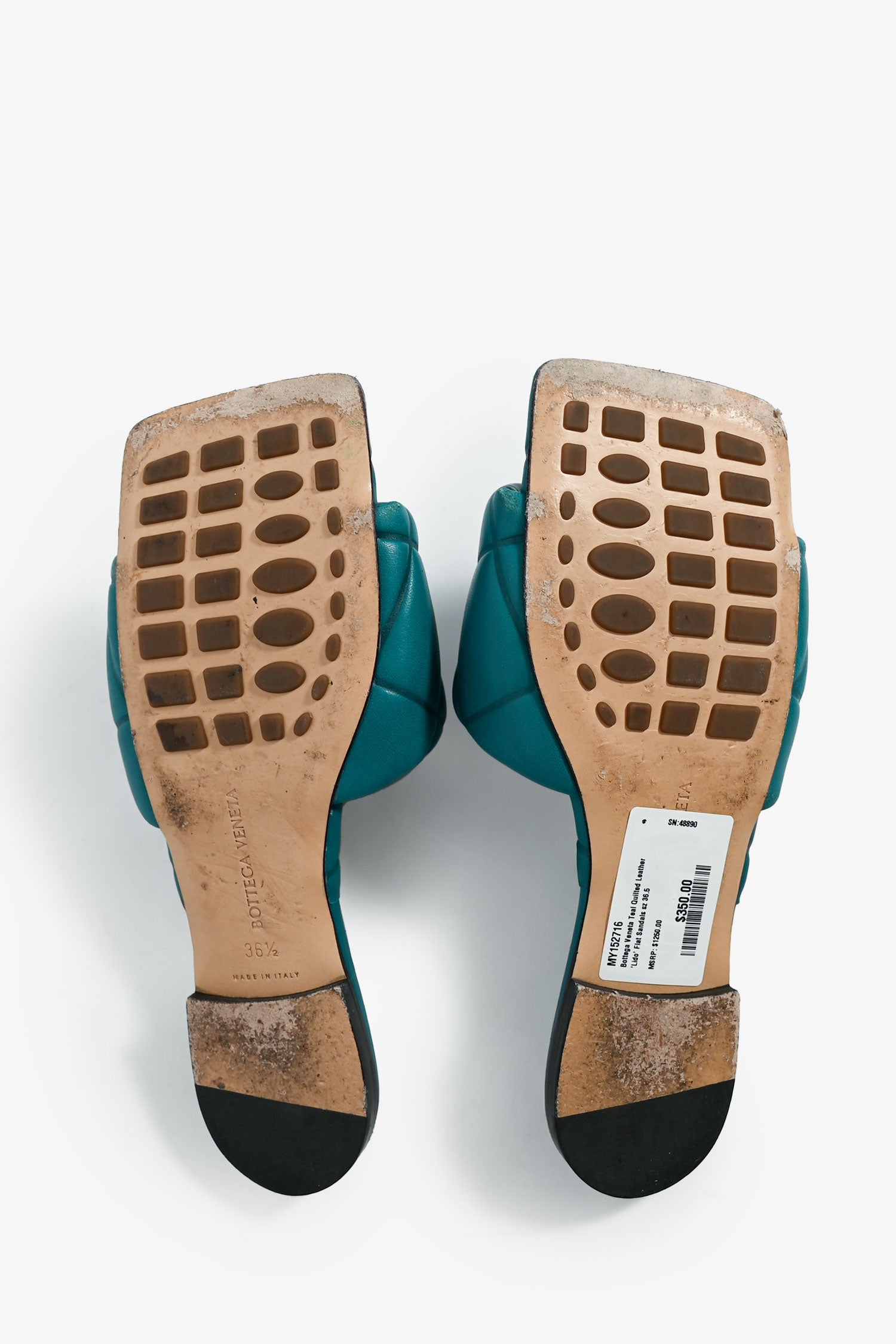 Bottega Veneta Teal Quilted Leather 'Lido' Flat Sandals Size 36.5