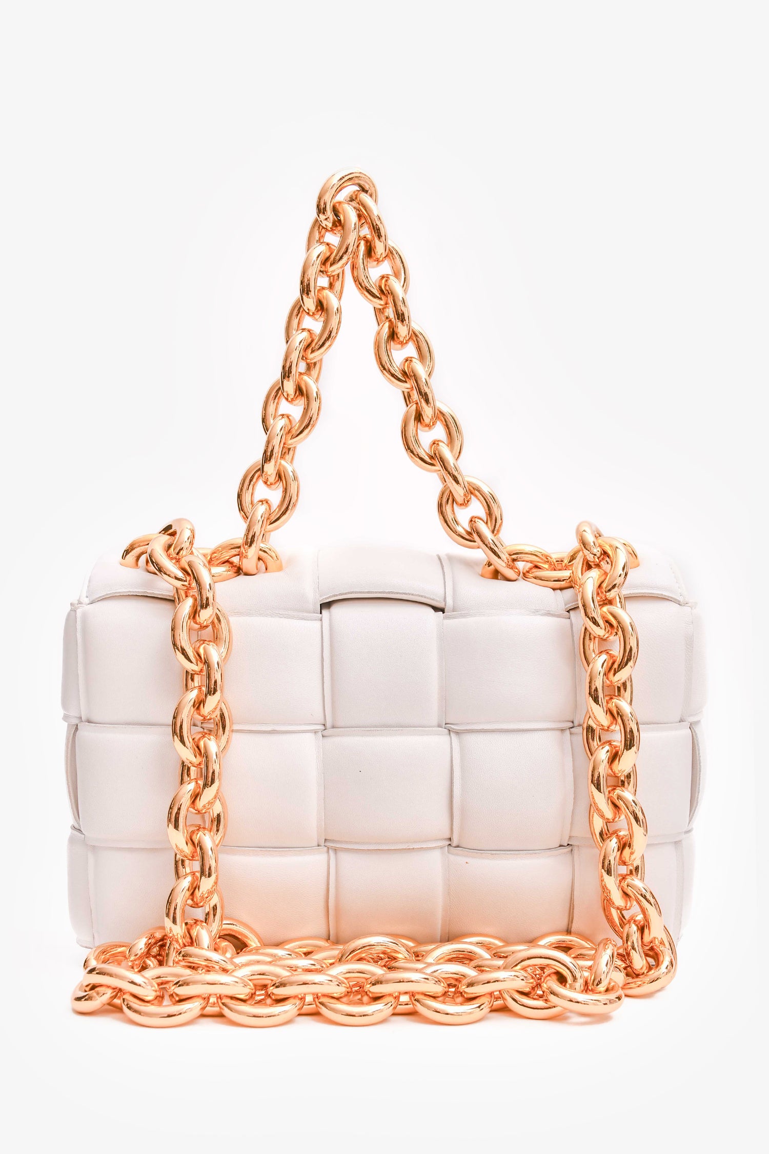 Bottega Veneta White Leather Chain Padded Cassette Bag