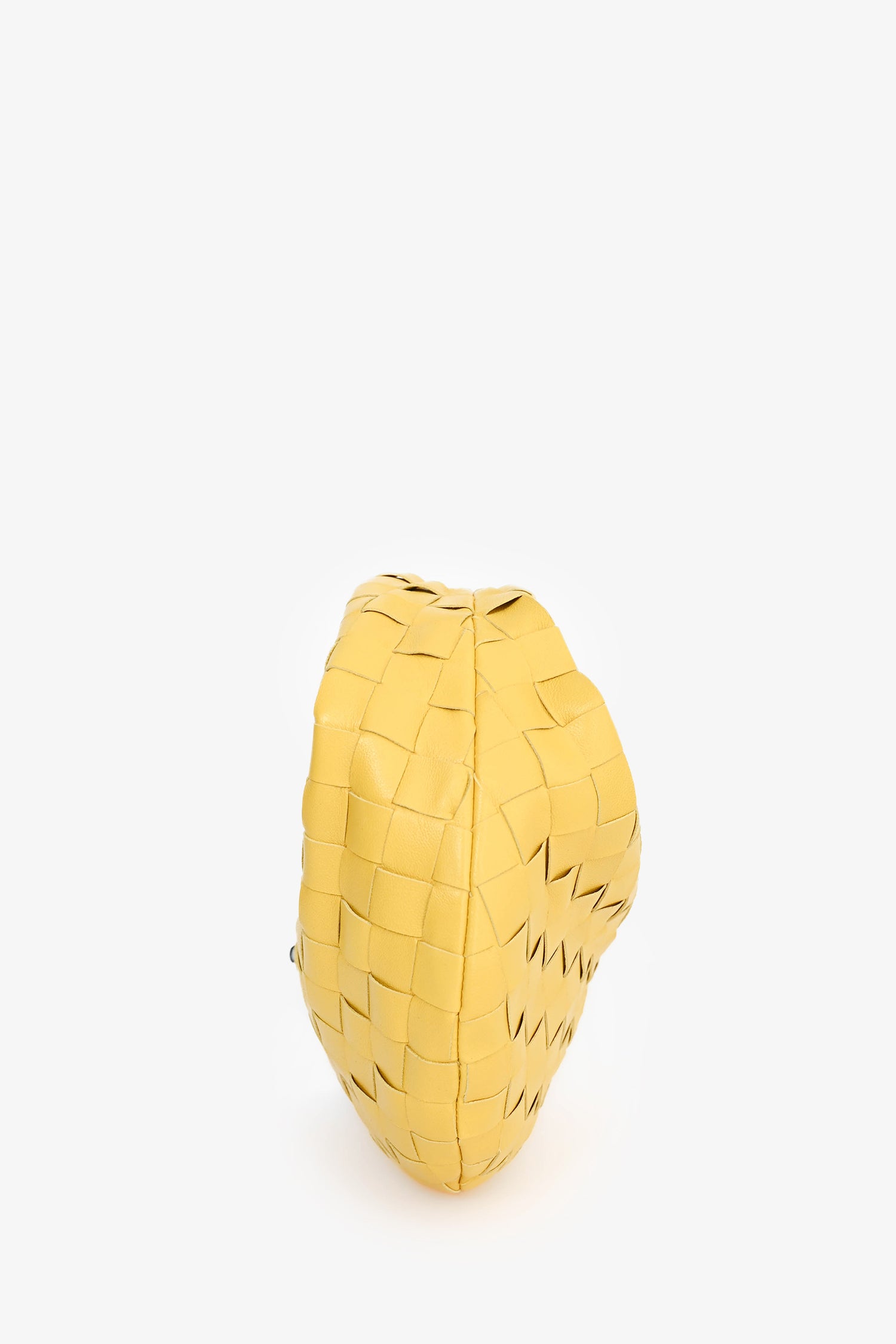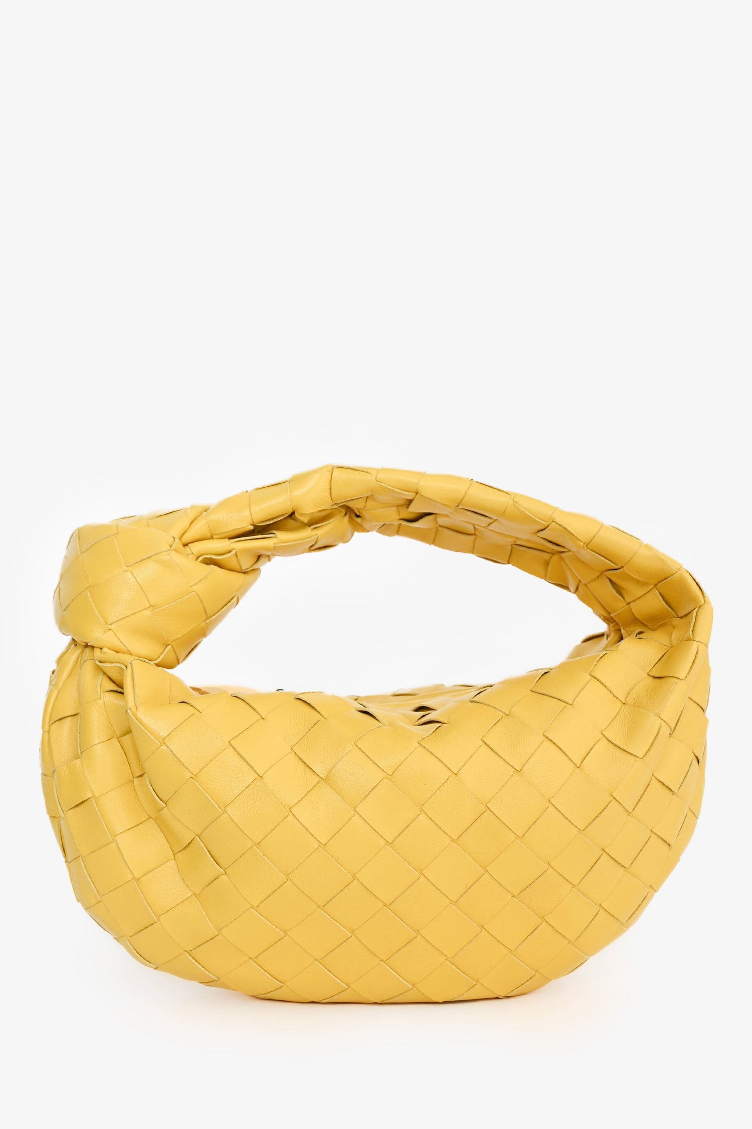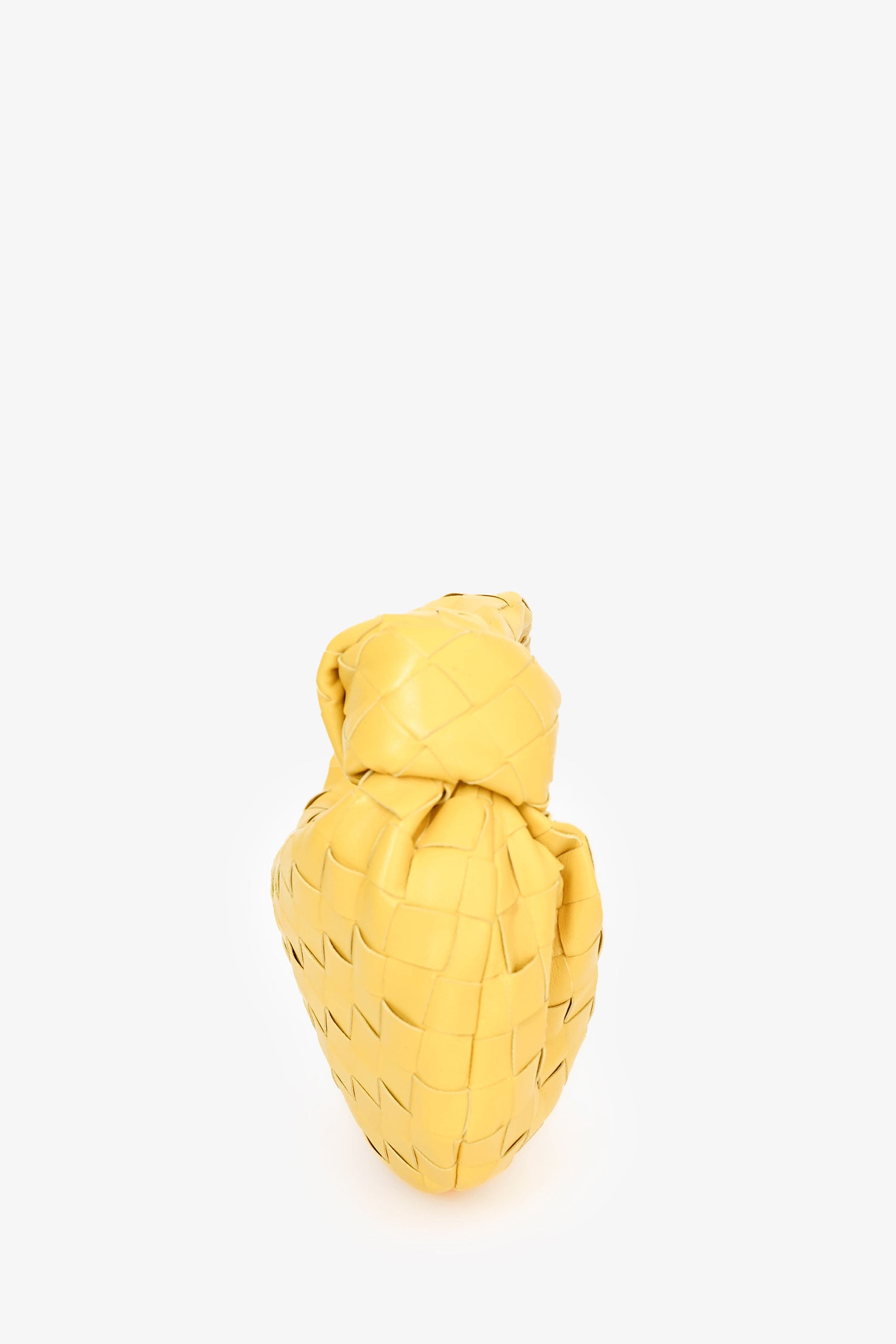 Refresh availabilityBottega Veneta Yellow Leather Intrecciato Mini Jodie. Single top handle with knotted detail. Top zip closure. Tonal stitching.