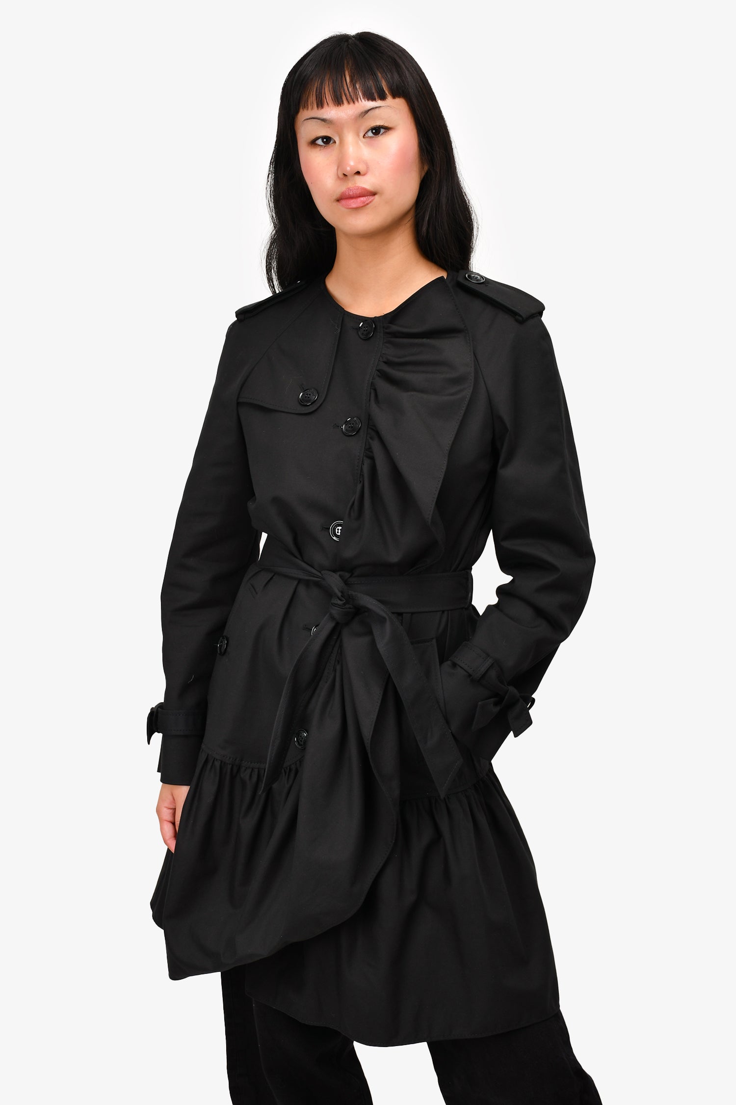 Refresh availabilityBoutique Moschino Black Ruffle Detail Belted Trench Coat. Front button-up closure. Front pockets with button closure. Lined.