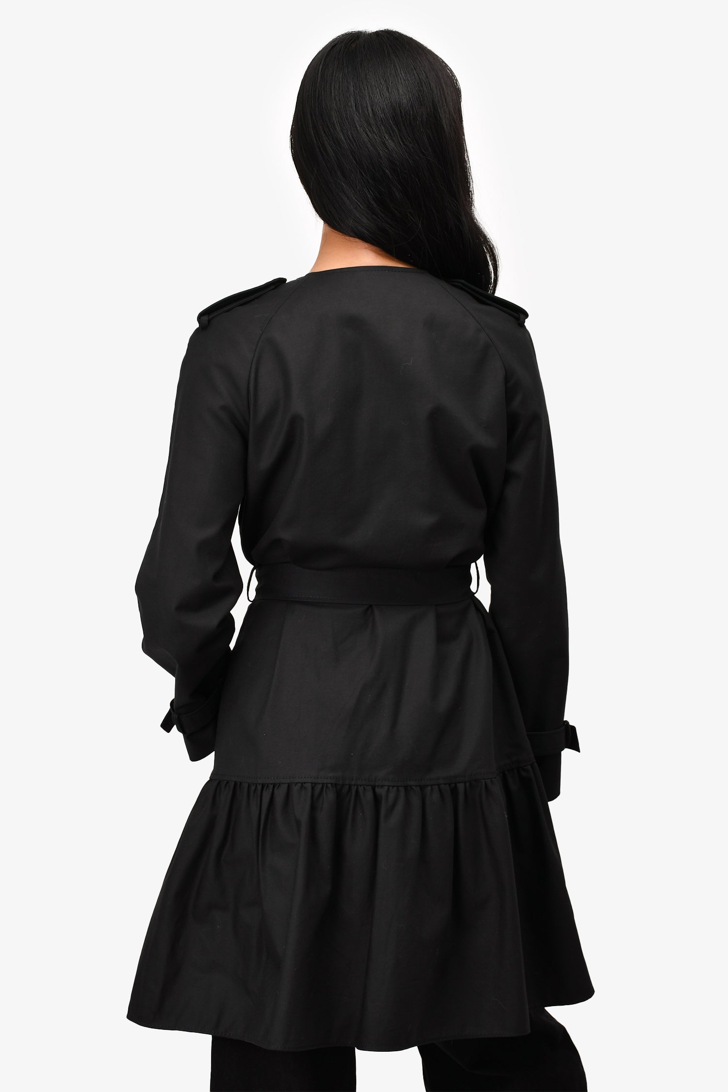 Boutique Moschino Black Ruffle Detail Belted Trench Coat Size 8