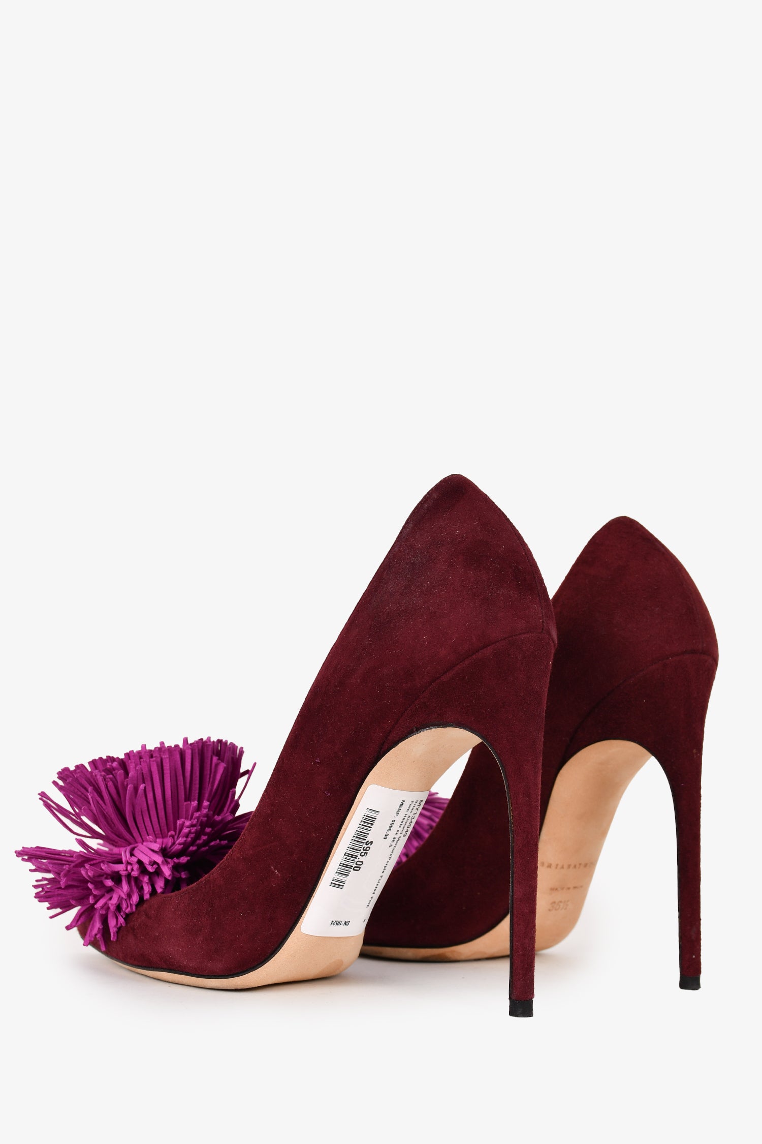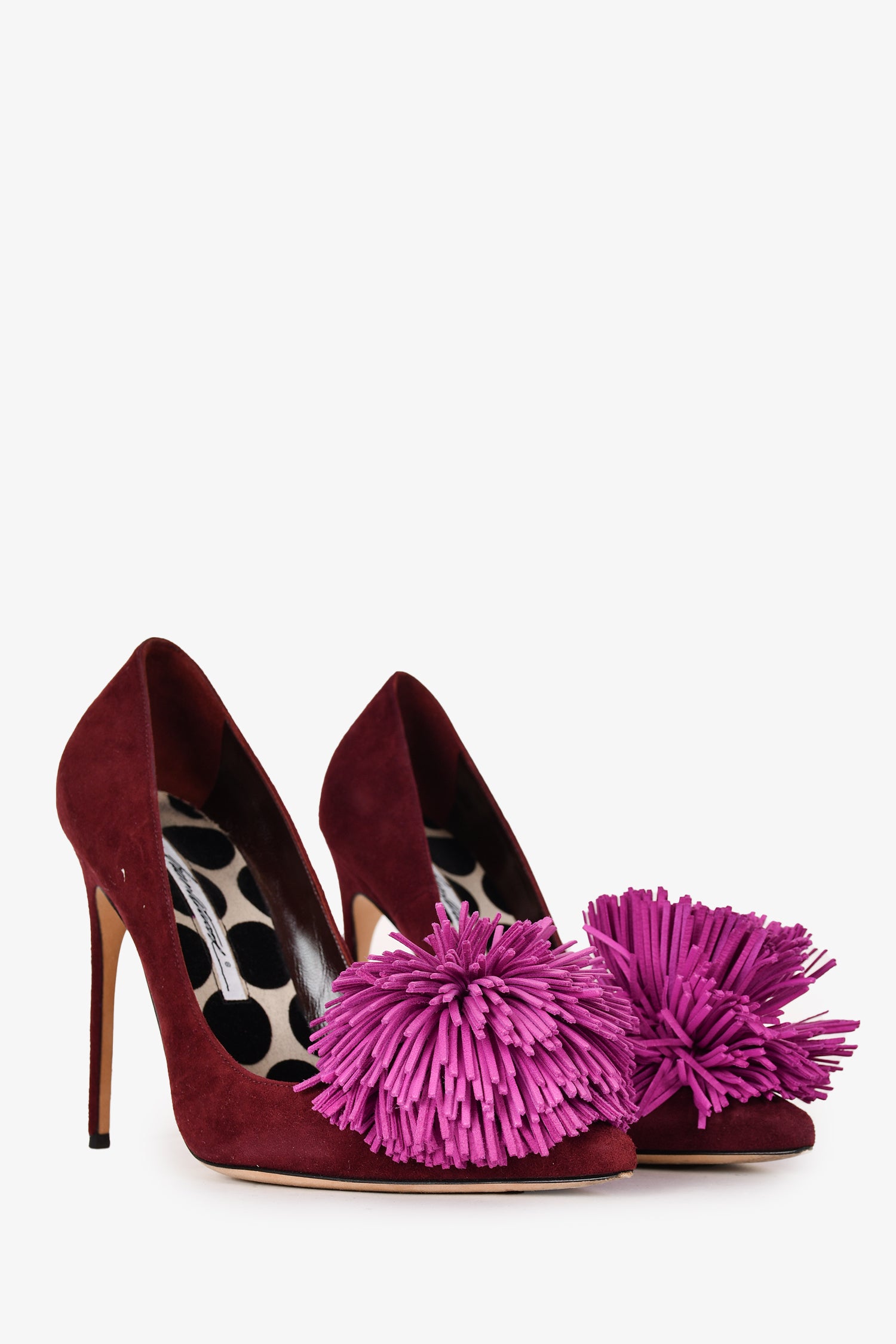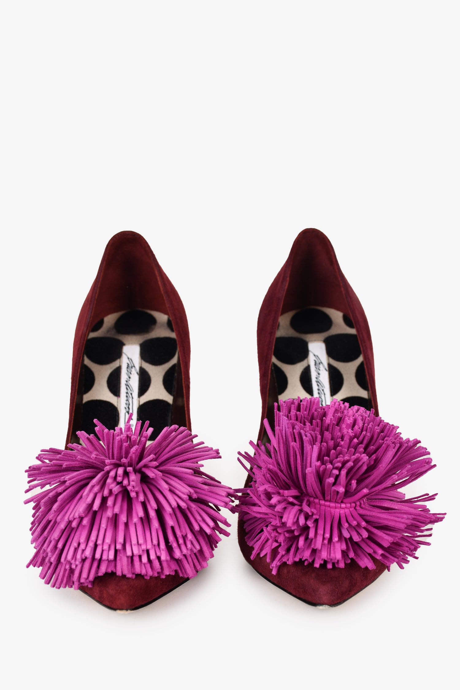 Brian Atwood Maroon/Purple Pointed Pom Pom Heels Size 36.5