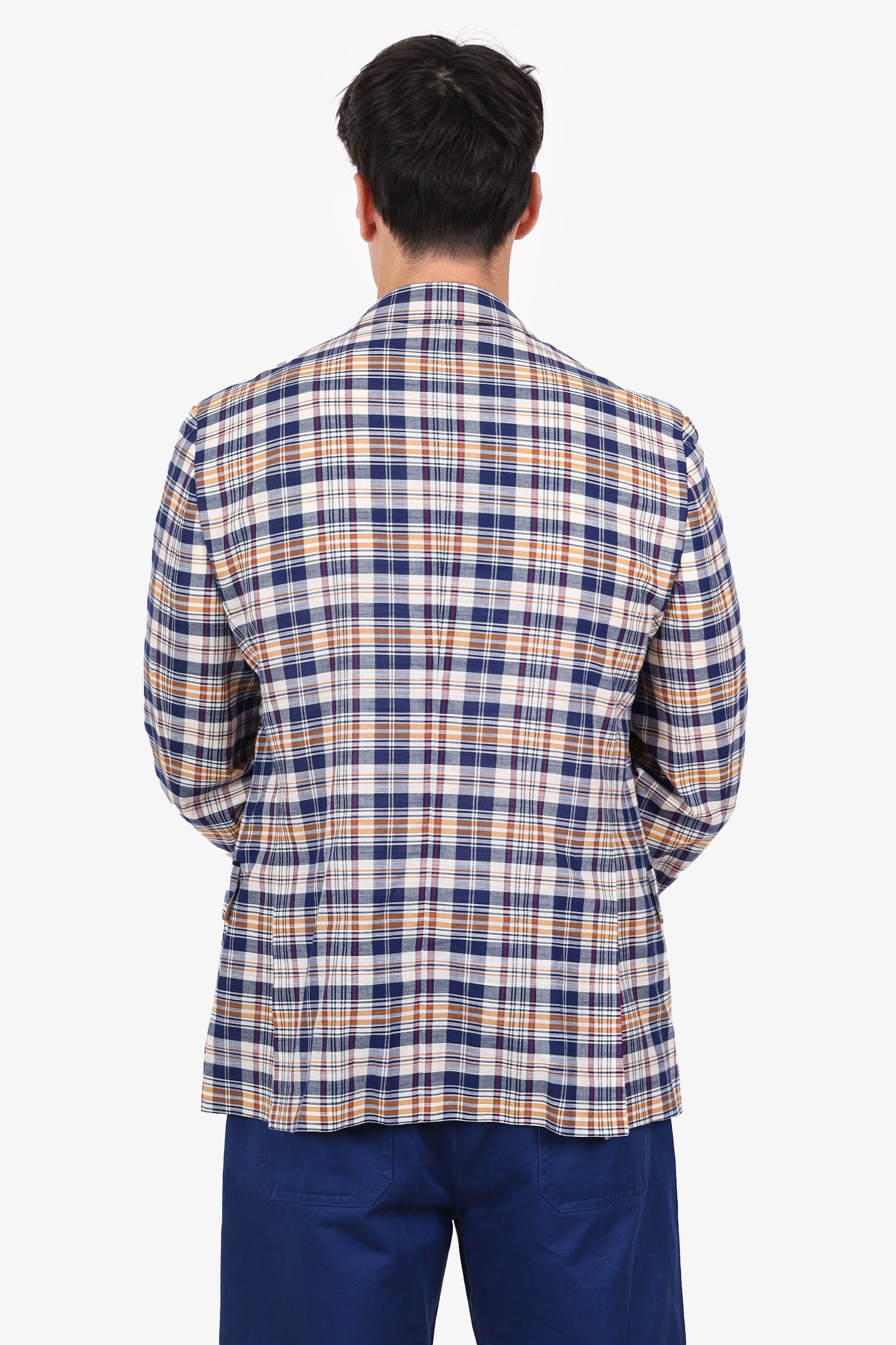 Brooks Brothers White/Blue/Yellow Plaid Tuxedo Blazer Jacket Size 42