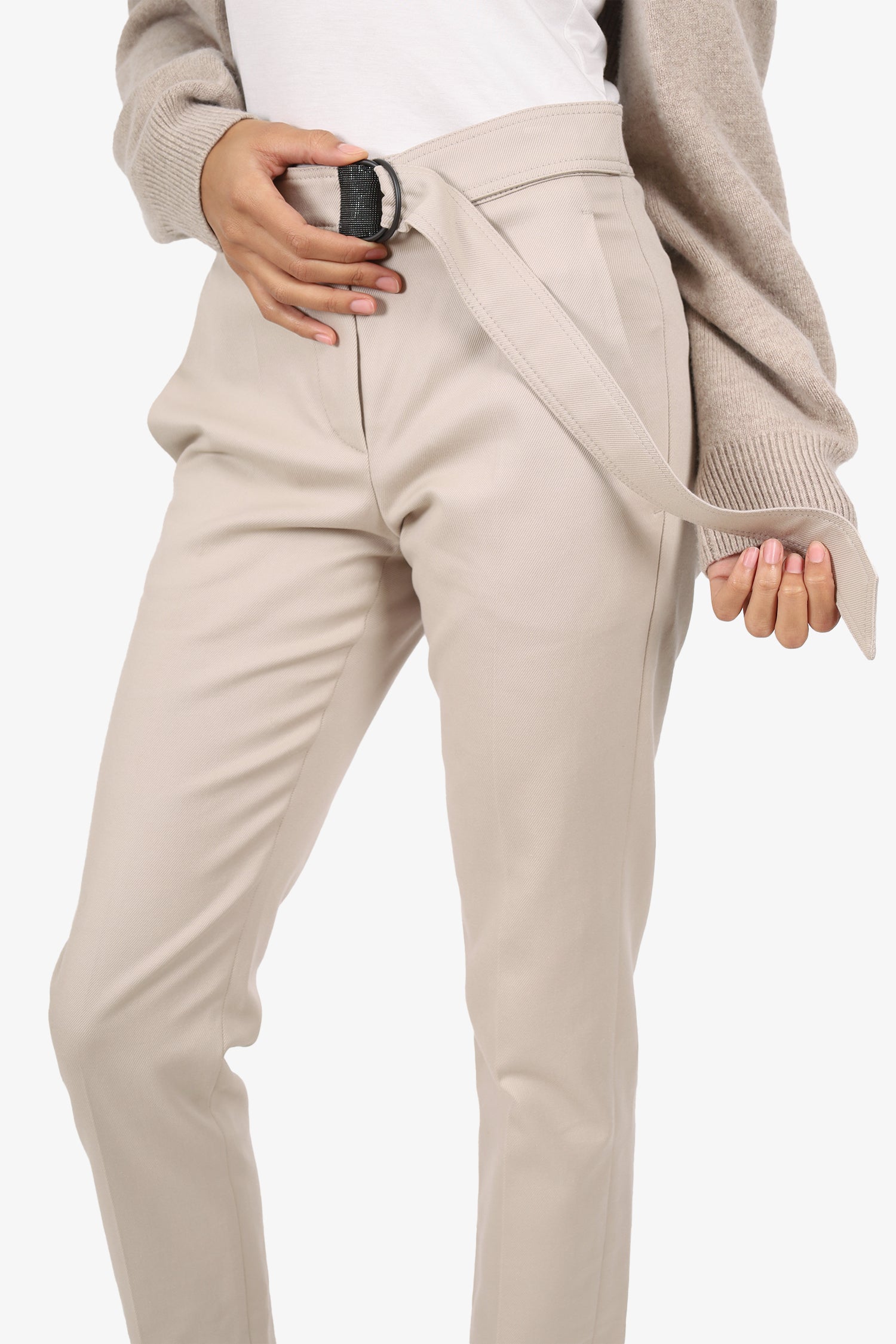 Brunello Cucinelli Beige Belted Straight Leg Pants Size 2