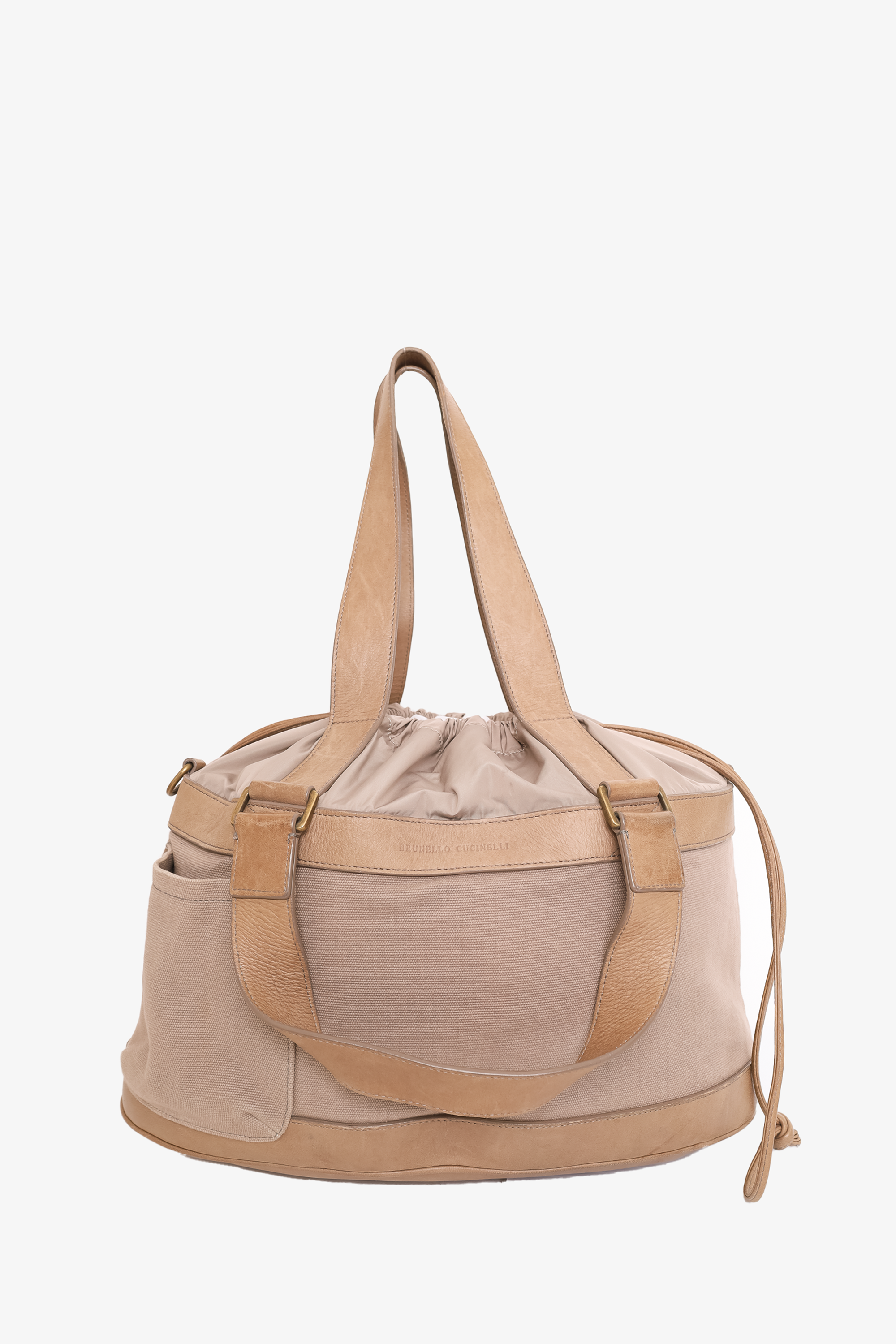 Brunello Cucinelli Beige/Brown Canvas Duffle Bag With Strap