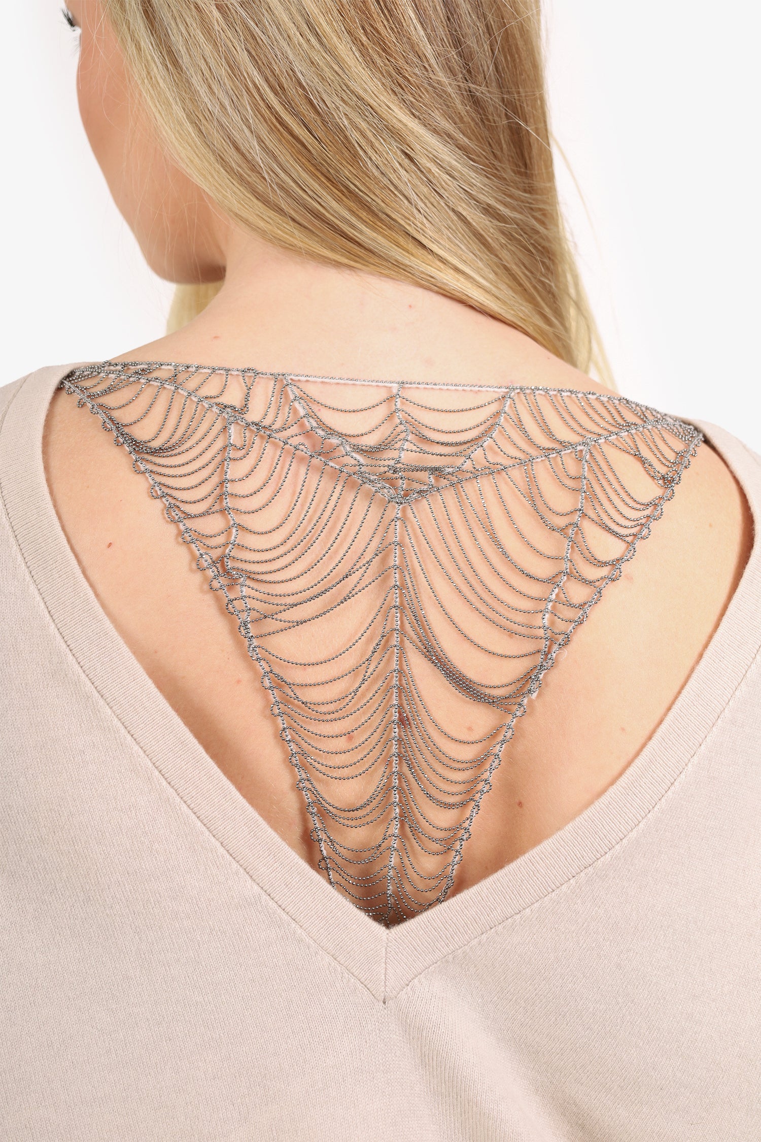 Refresh availabilityBrunello Cucinelli Beige Cashmere Beaded Net Sweater. Pull-on. High neckline. Removable rear beaded-net with interior button-up closure. Silver-tone hardware. Tonal stitching.