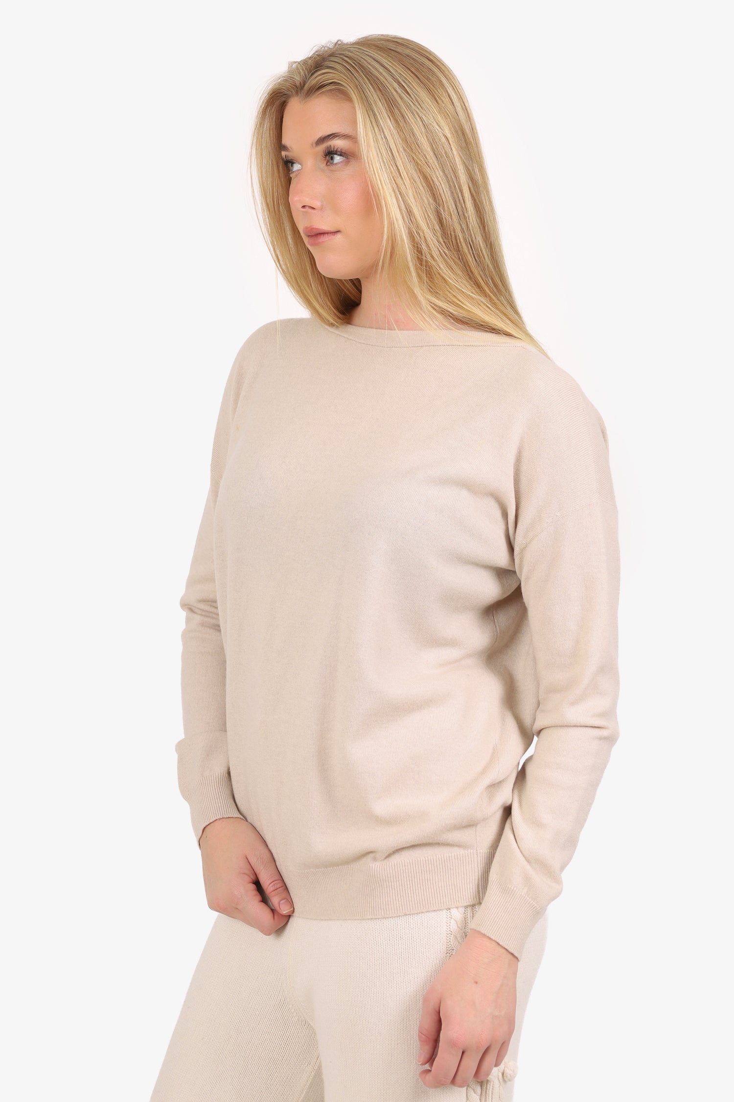 Brunello Cucinelli Beige Cashmere Beaded Net Sweater Size M