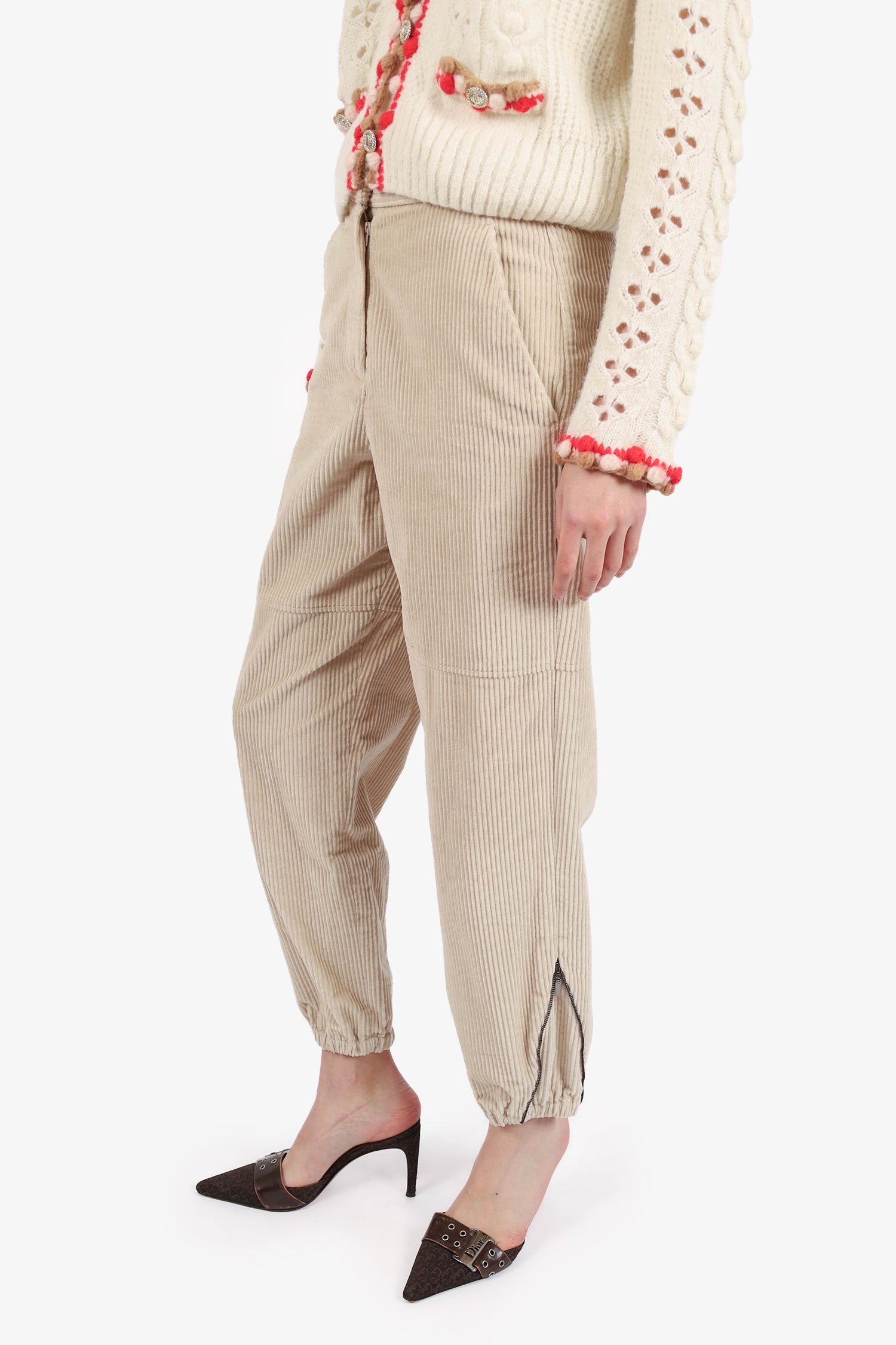Brunello Cucinelli Beige Corduroy Jogger with Zipper Detail Size 0