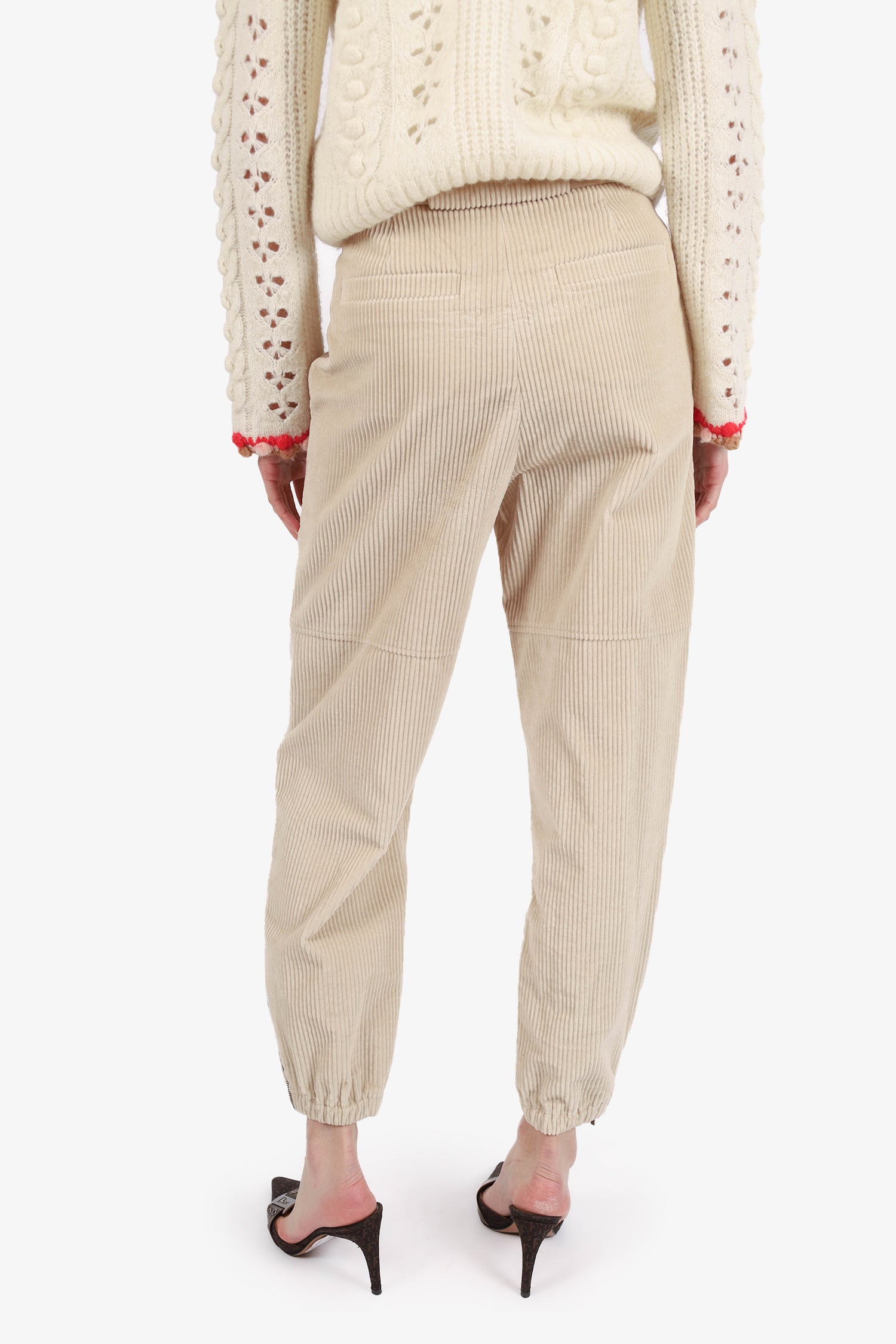Refresh availabilityBrunello Cucinelli Beige Corduroy Jogger with Zipper Detail. Pull-on. Front zip with hook closure. Waistband loops. 2 front slip pockets. 2 rear faux pockets. Elastized ankle cuffs with zipper detail. Partially lined. Tonal stitching.