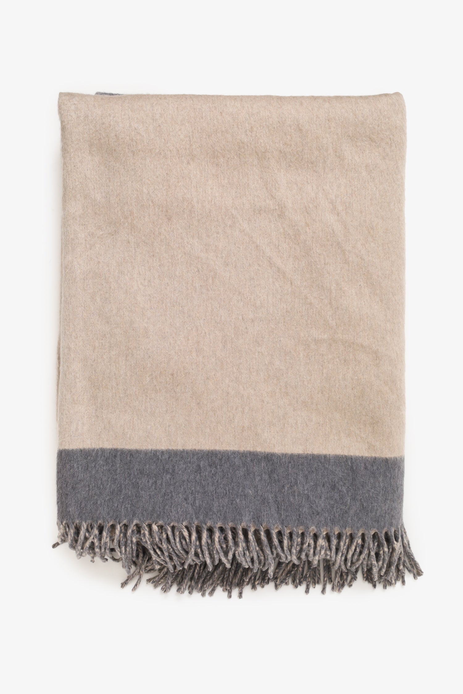 Refresh availabilityBrunello Cucinelli Beige/Grey Cashmere Throw. Fringe trim. Tonal stitching.
