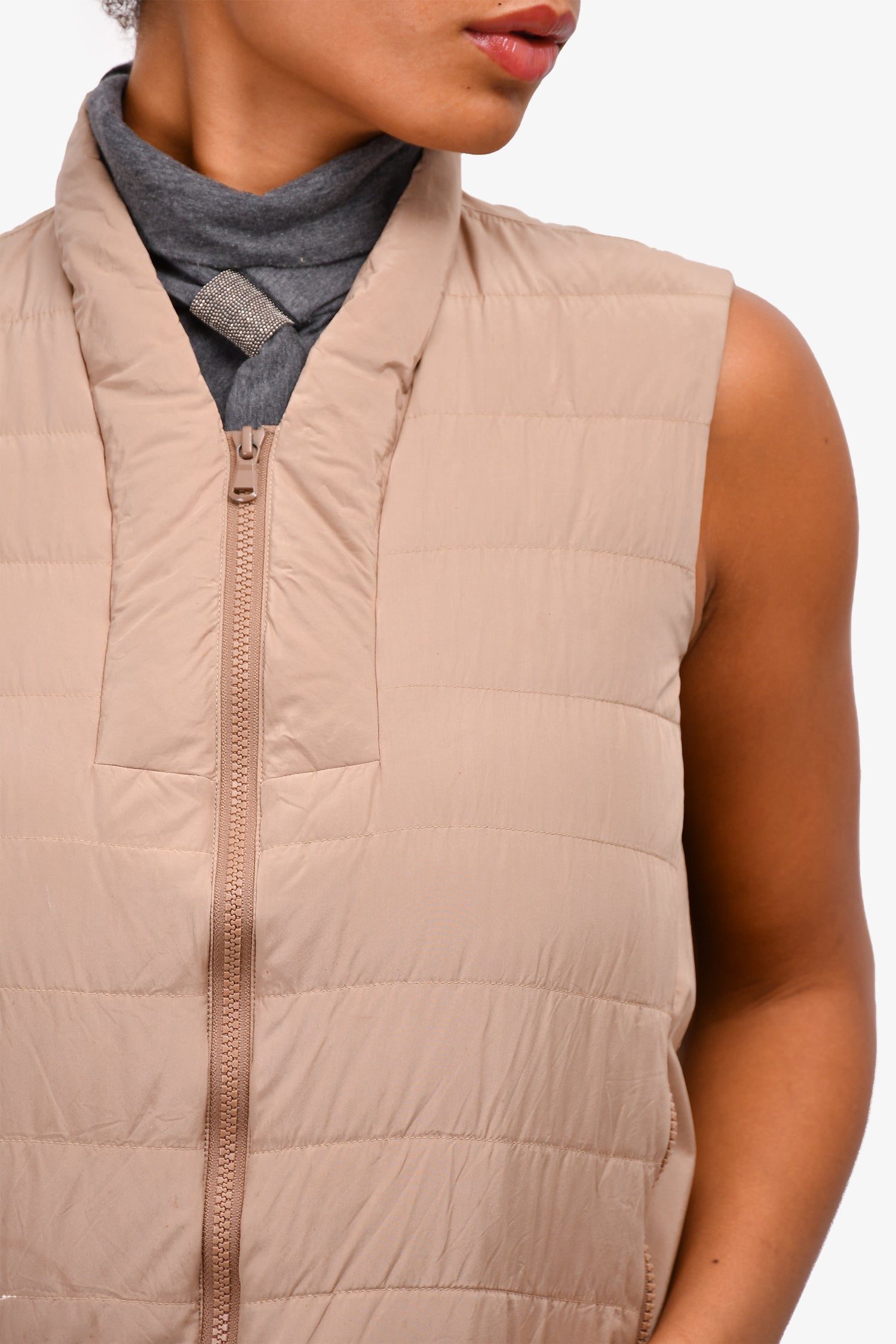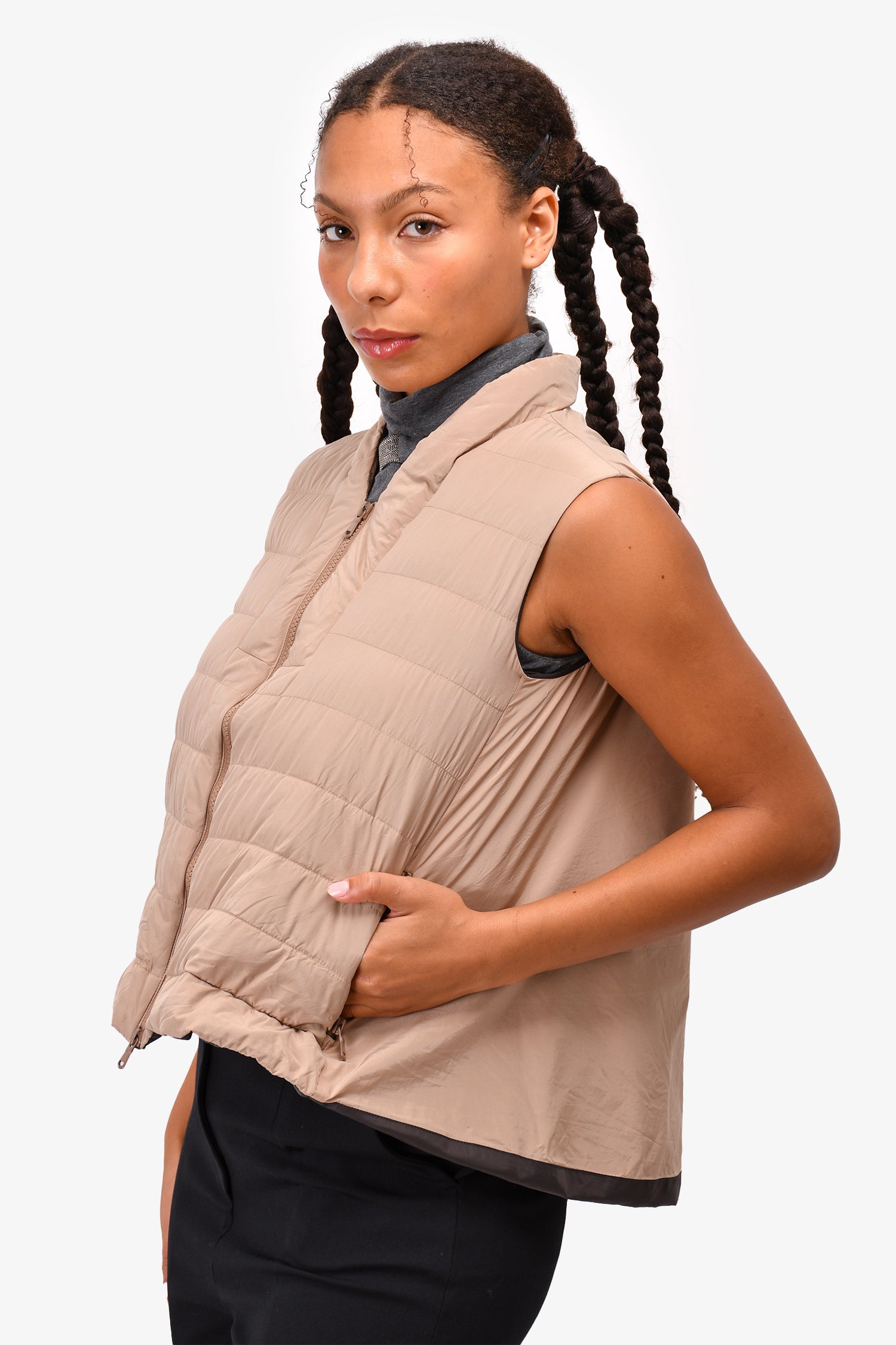 Brunello Cucinelli Beige Silk Padded Vest Size 44