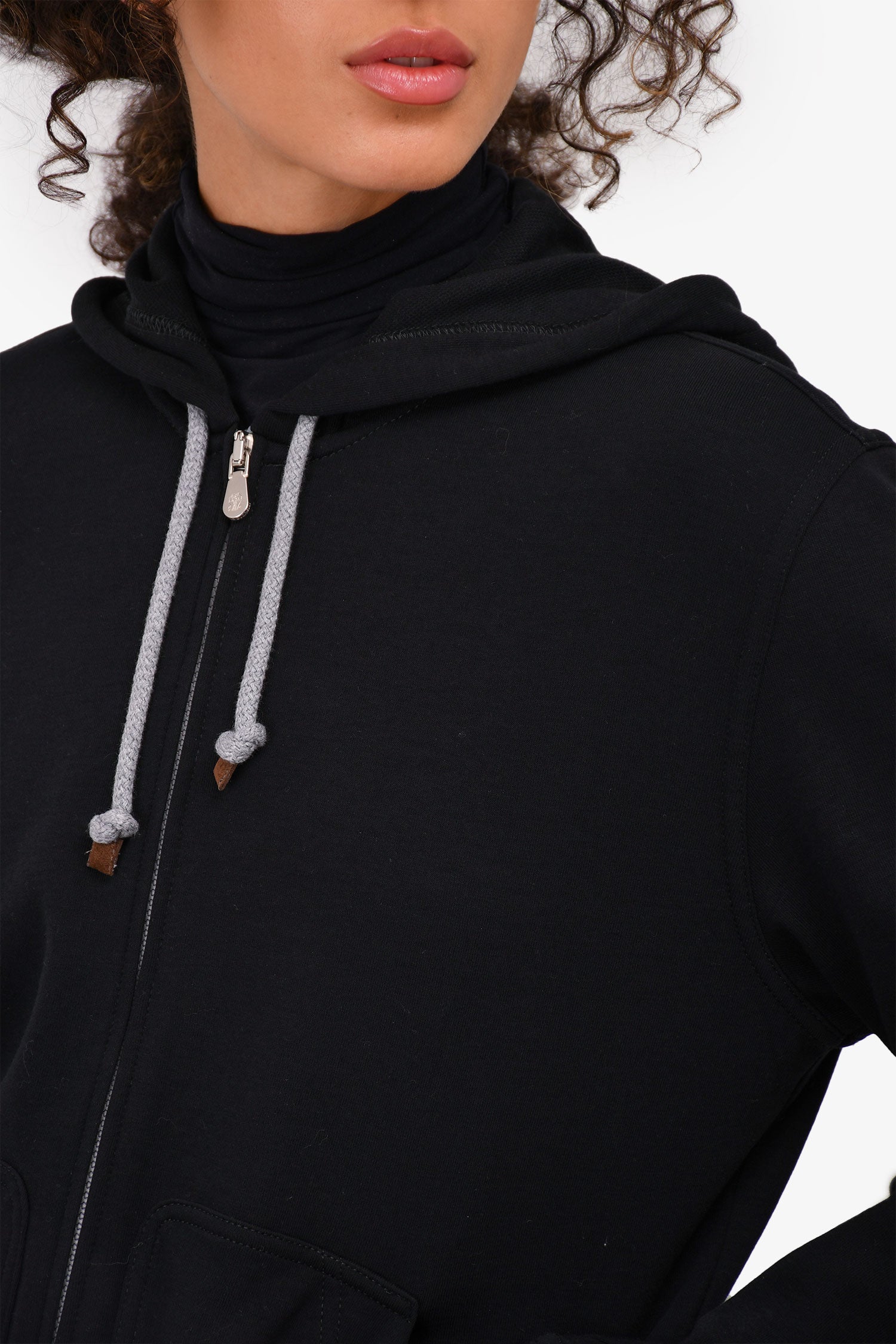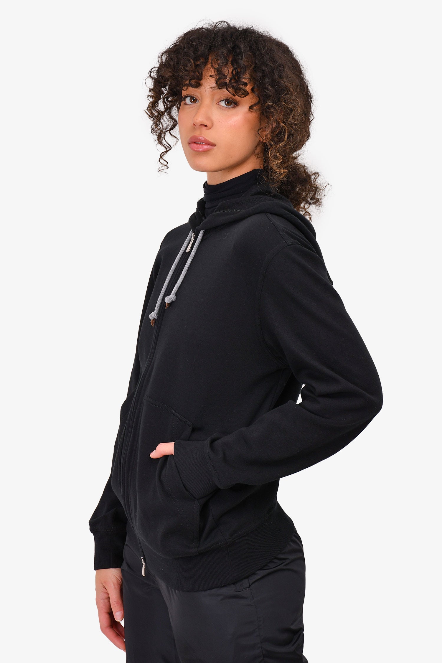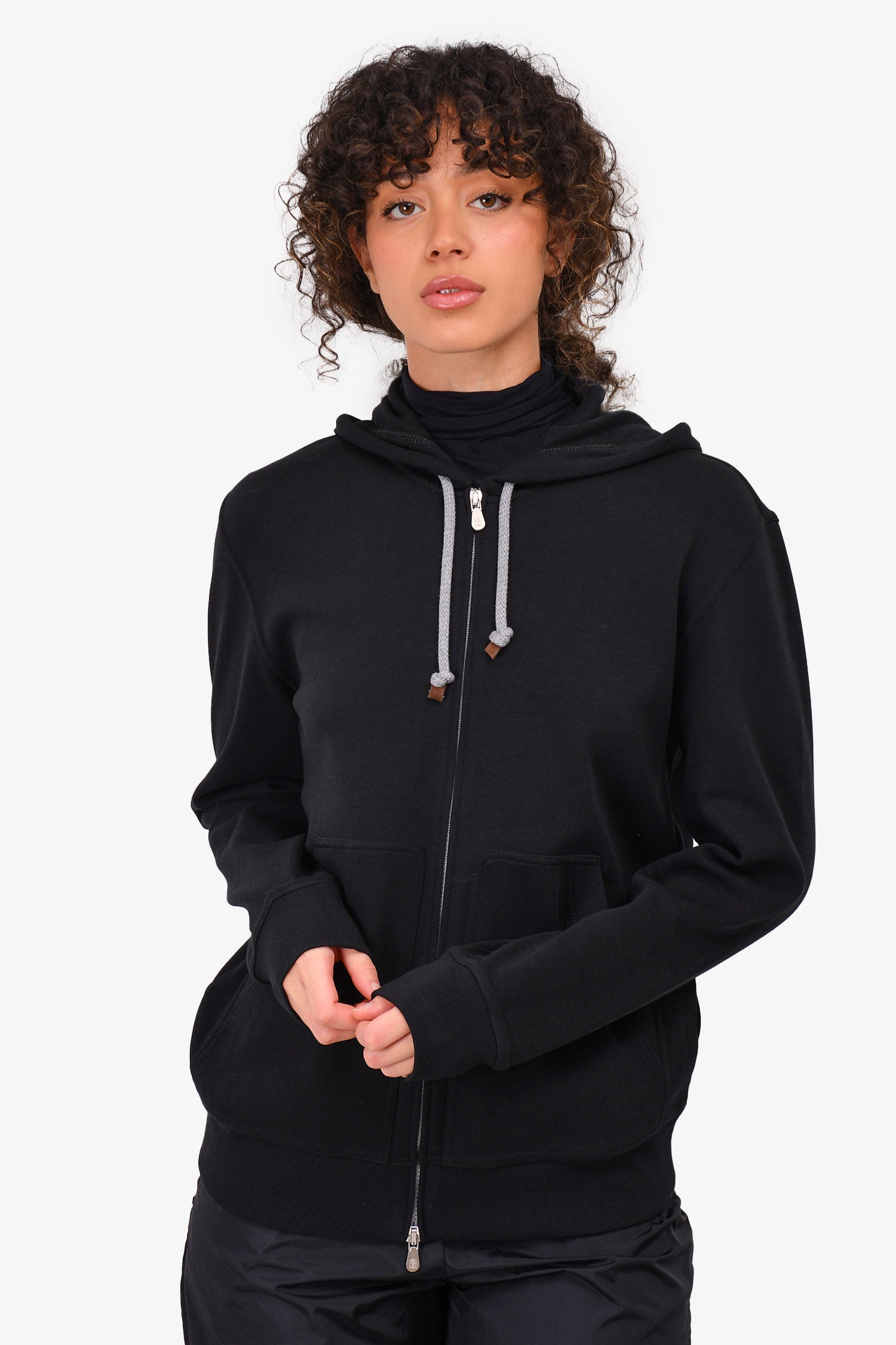 Refresh availabilityBrunello Cucinelli Black Cotton Zip-Up Hoodie. Front pockets. Front two-way zip closure.