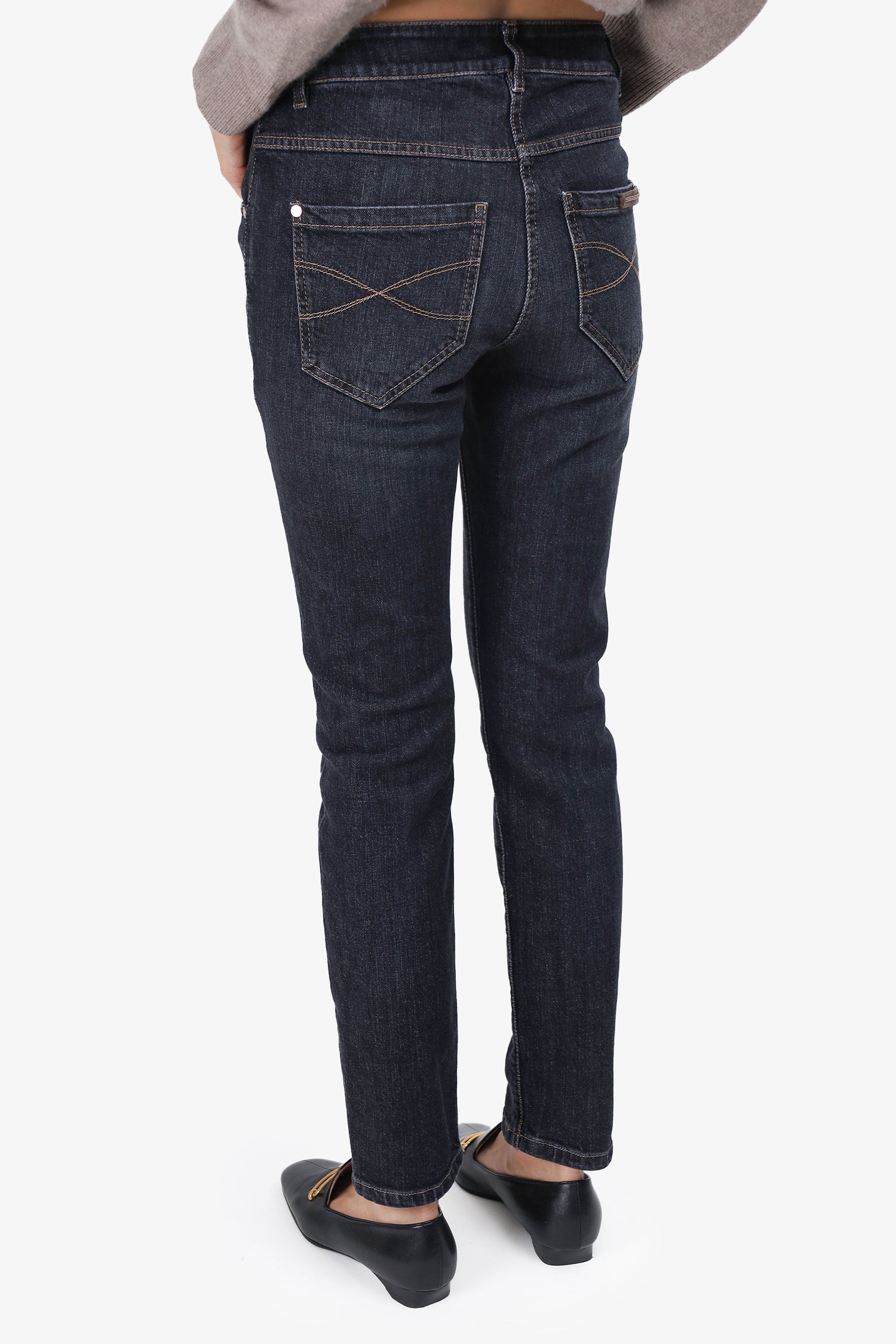 Refresh availabilityBrunello Cucinelli Black Denim Straight Leg Jeans. Front button and zip closure. Front and rear slip pockets. Contrast stitching.