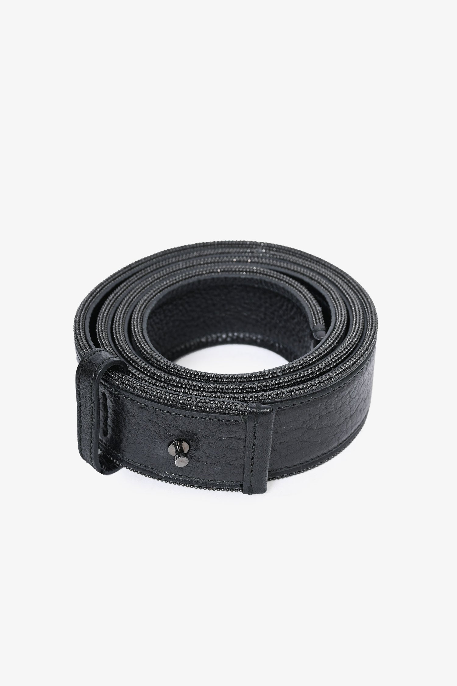 Refresh availabilityBrunello Cucinelli Black Grained Leather Bead Trim Belt. Tonal stitching. Monili and leather trimming.