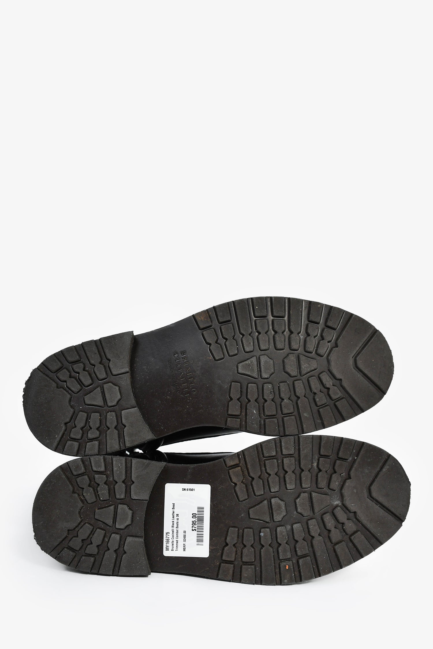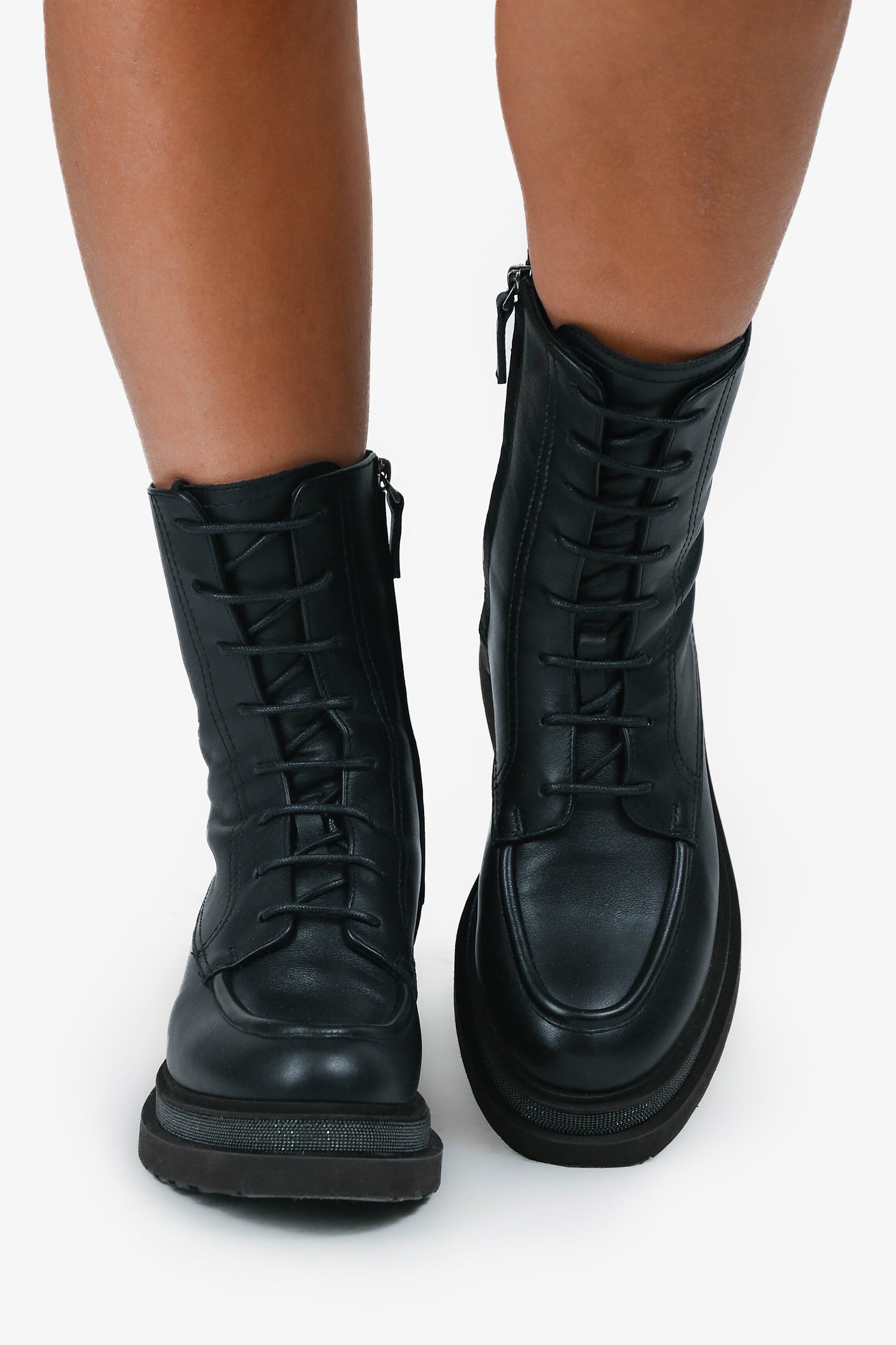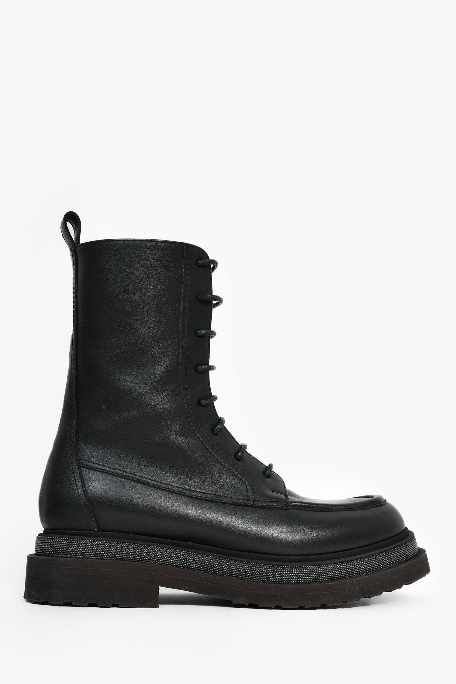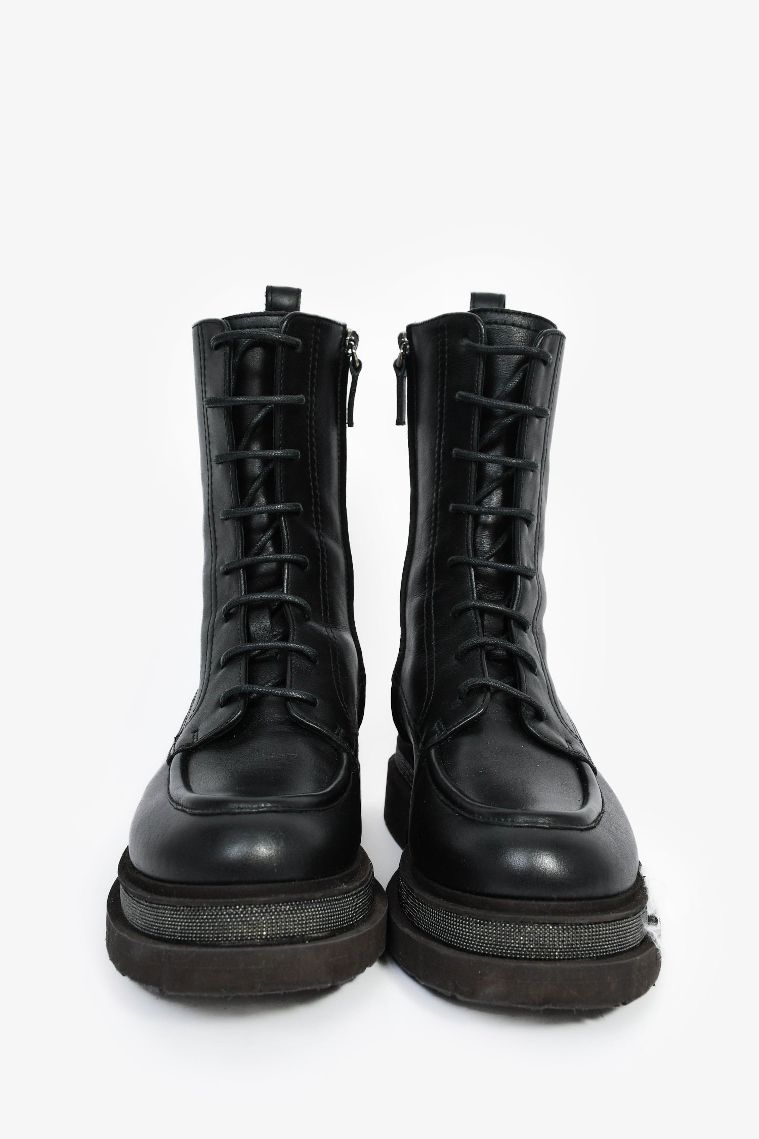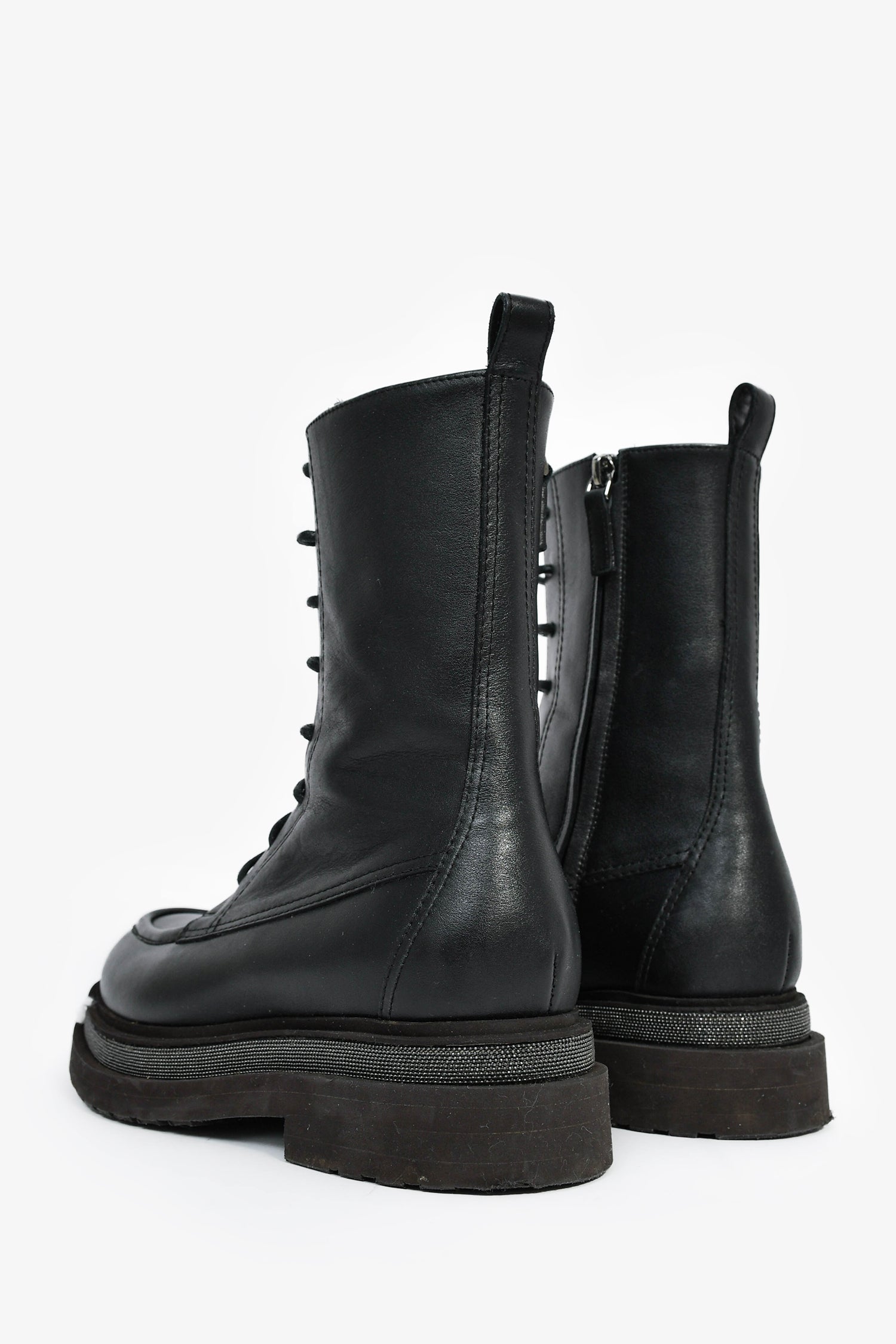 Brunello Cucinelli Black Leather Bead Trimmed Combat Boots Size 38